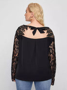 بلوزة بأكمام من الدانتيل بربطة عنق من الخلف زائد