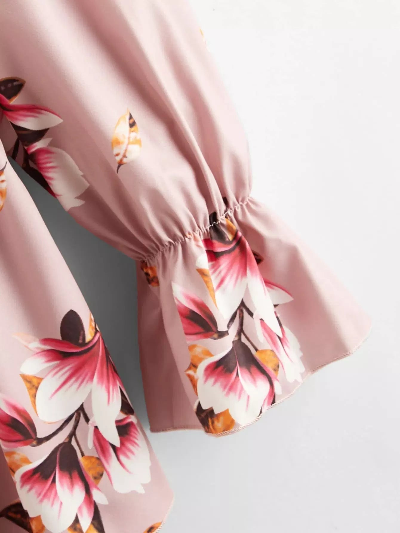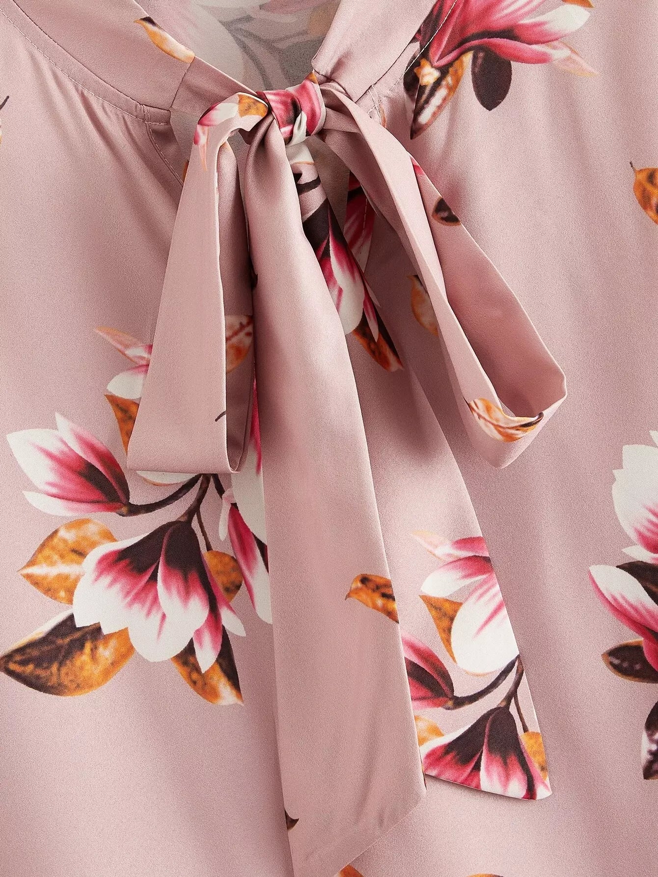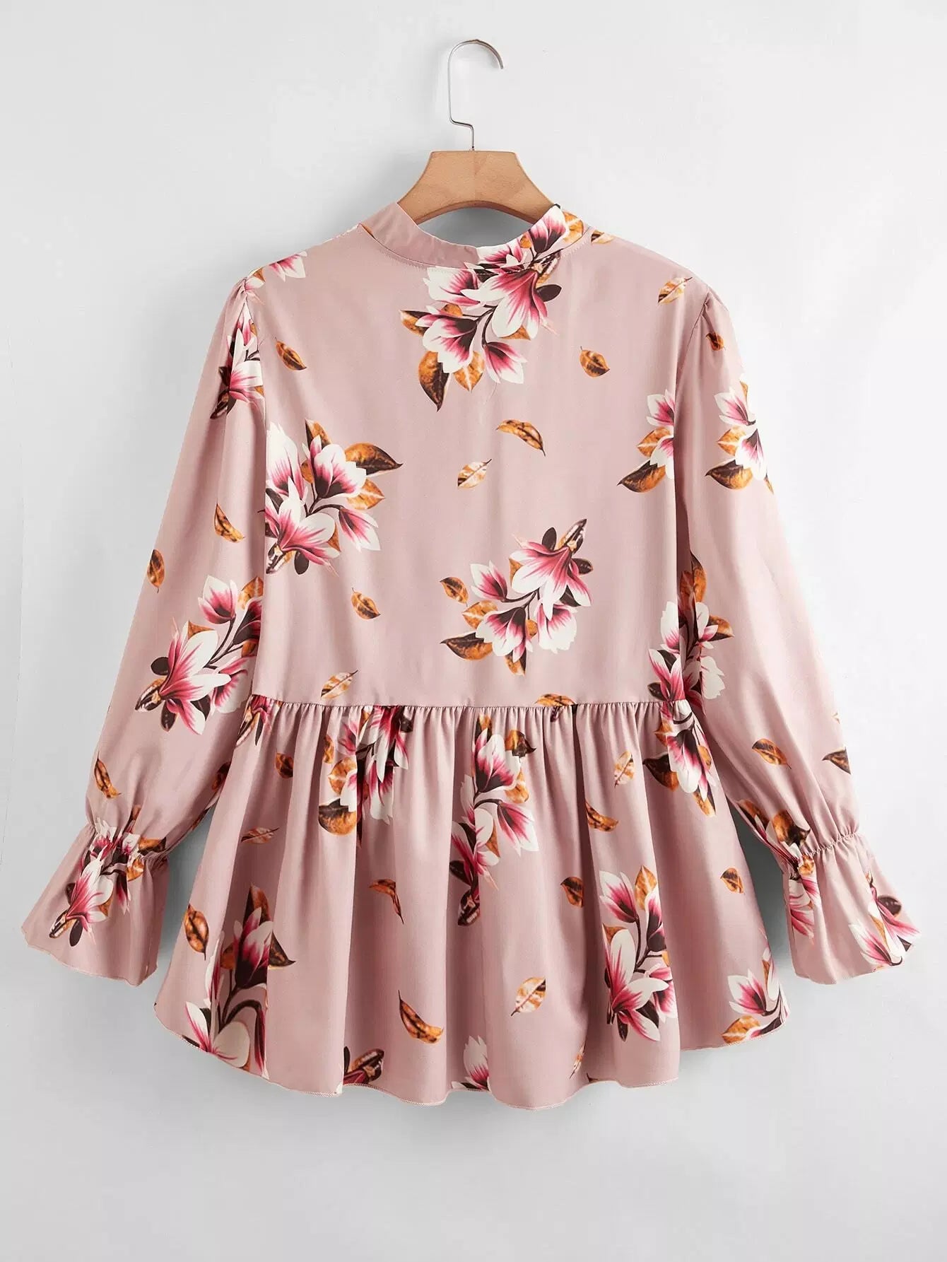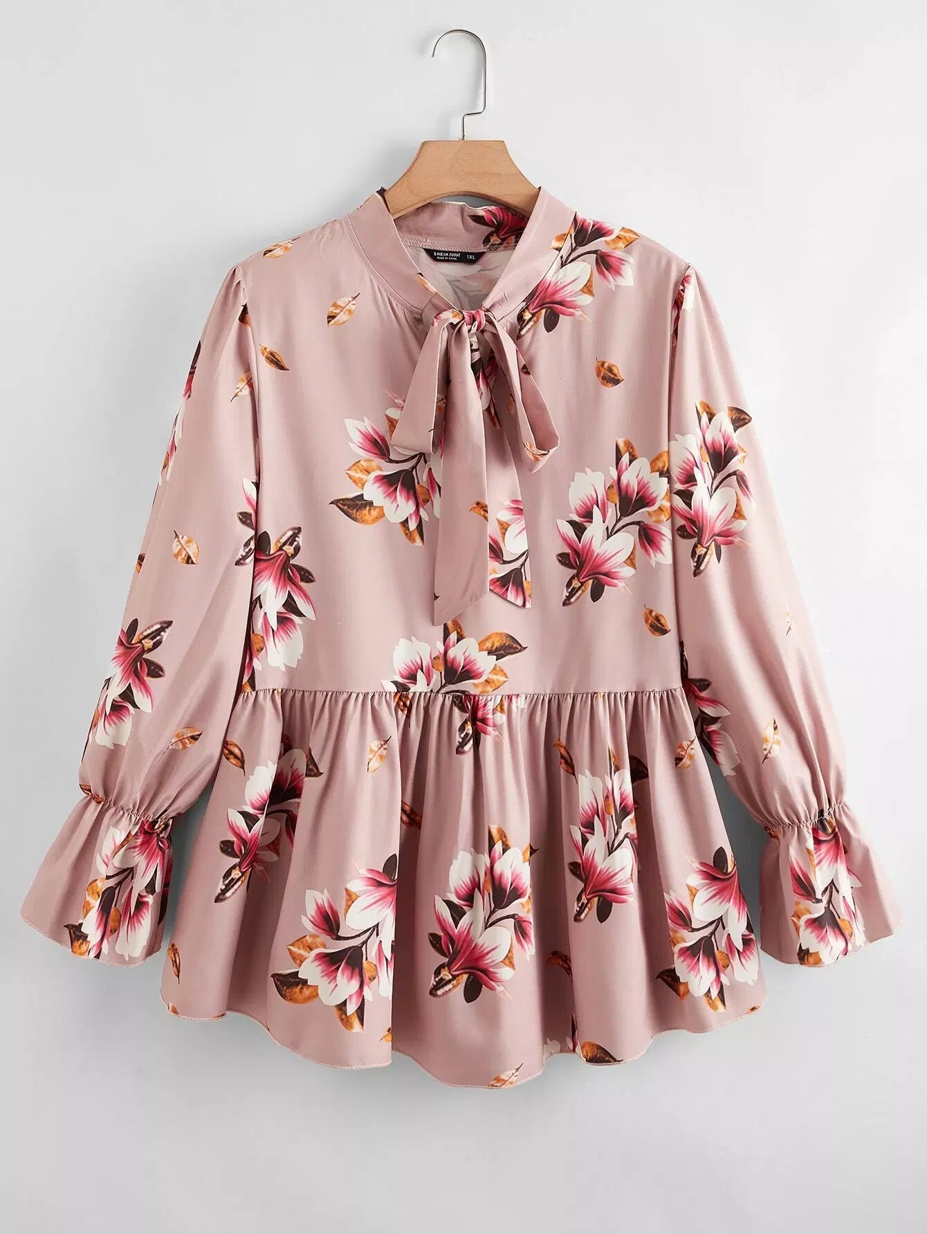 بلوزة بيبلوم بربطة عنق أمامية زائد