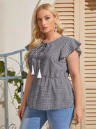بلوزة بيبلوم قطنية بربطة عنق بياقة زائد