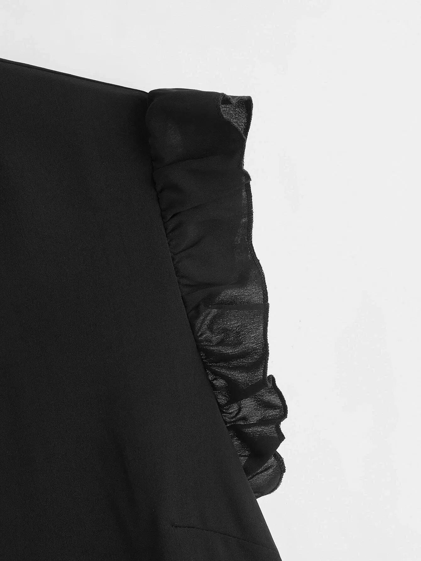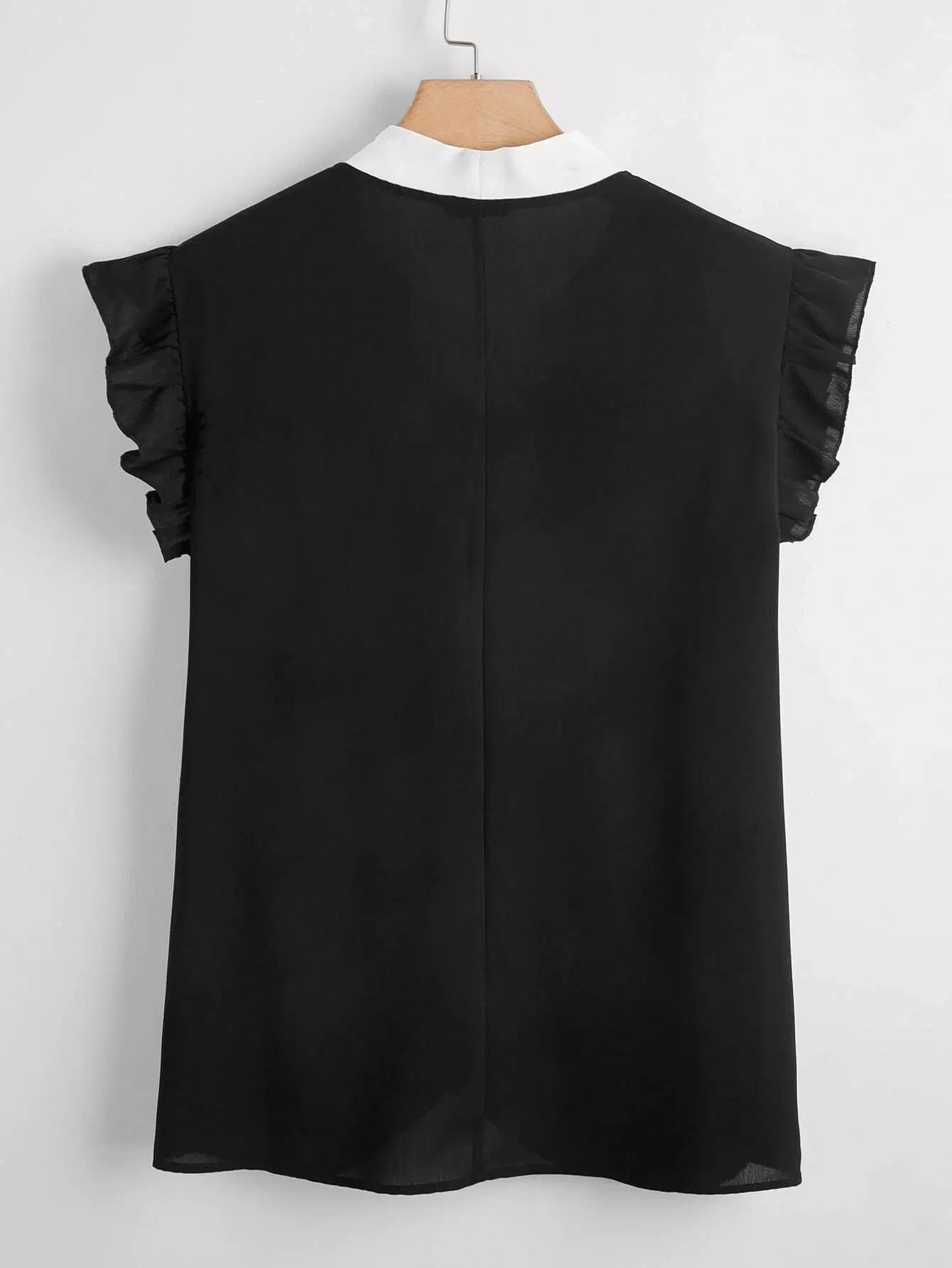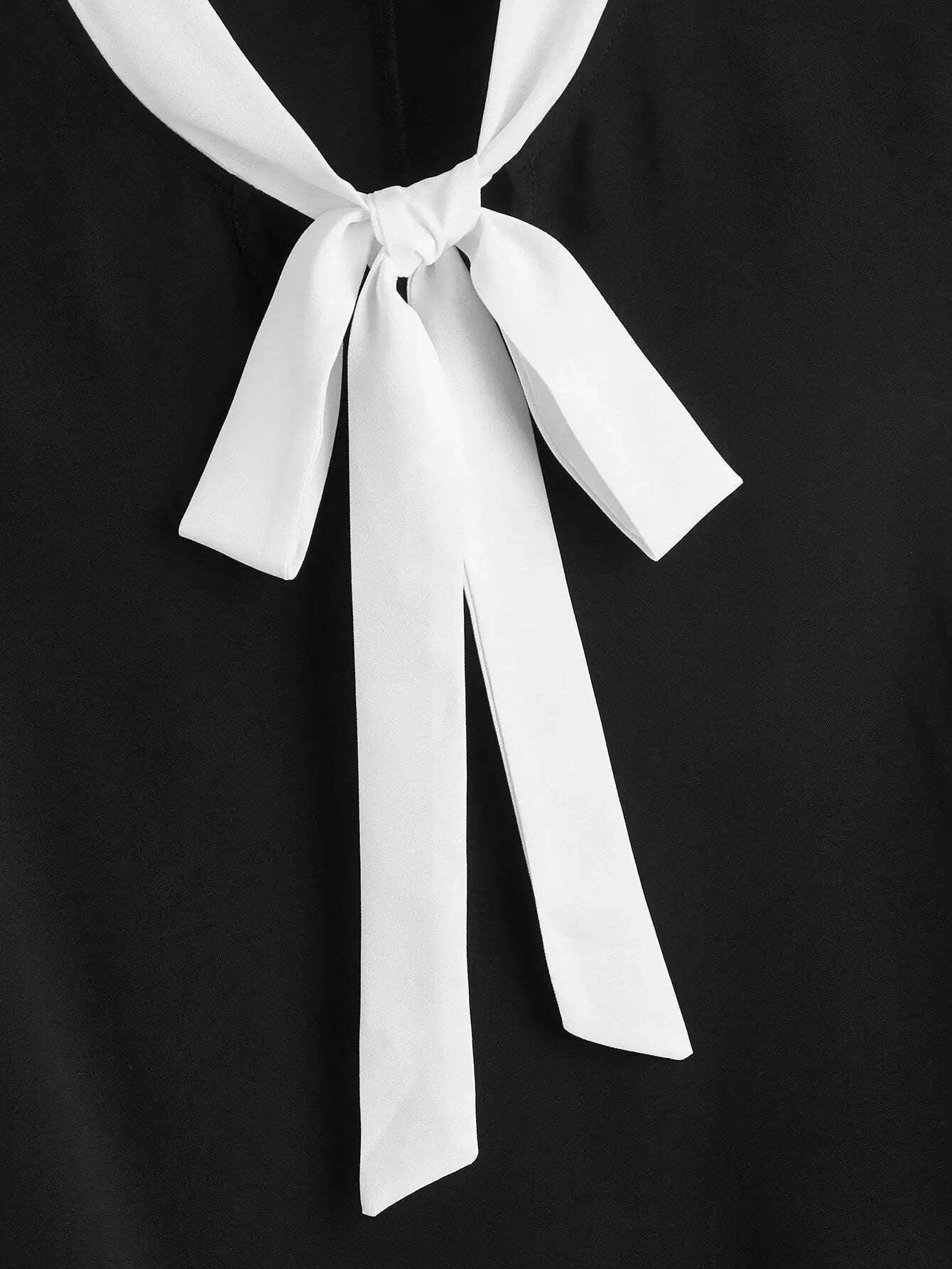 بلوزة مزينة بربطة عنق مكشكشة بياقة زائد