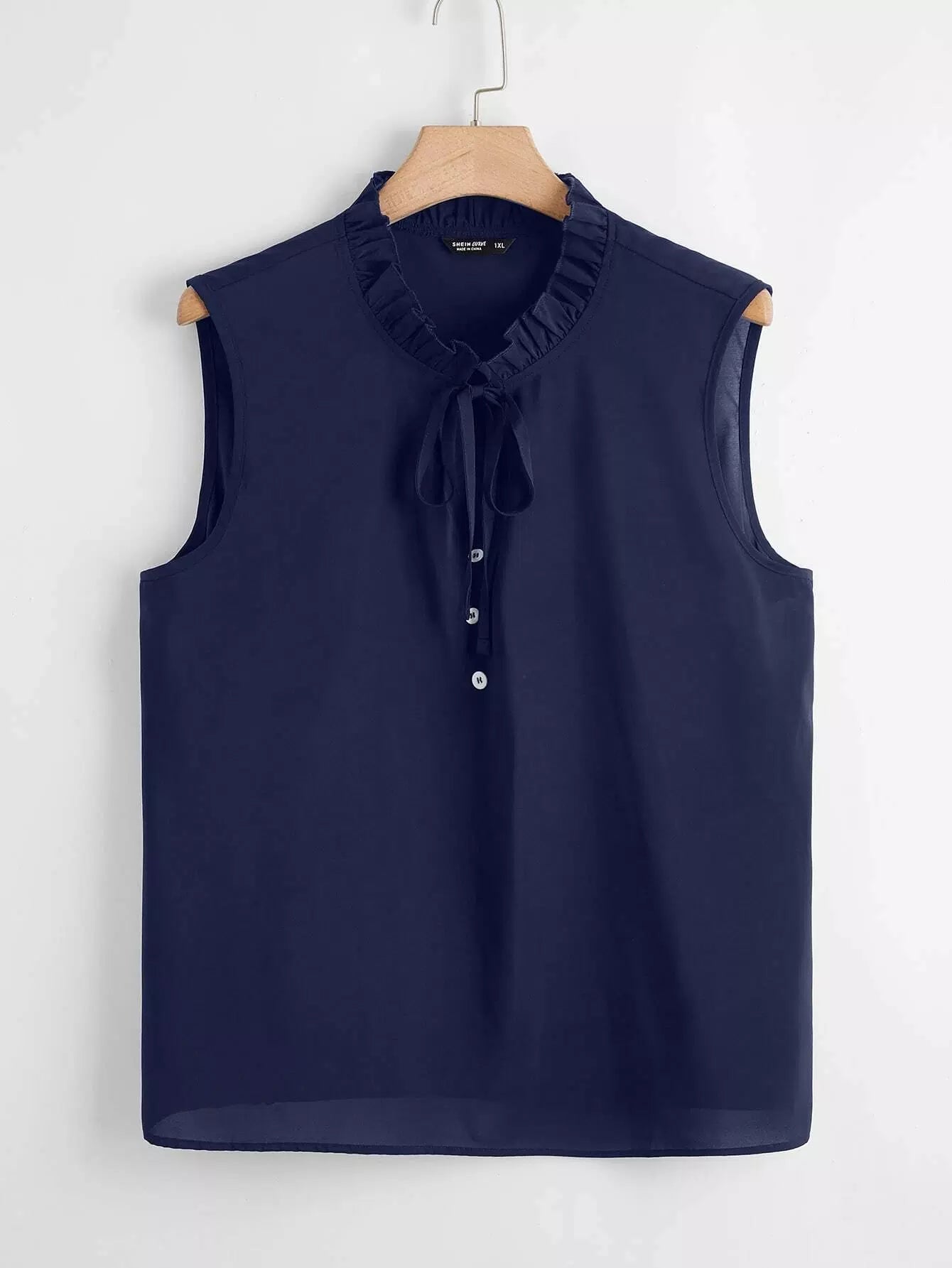 بلوزة بربطة عنق مكشكشة وربطة عنق زائد