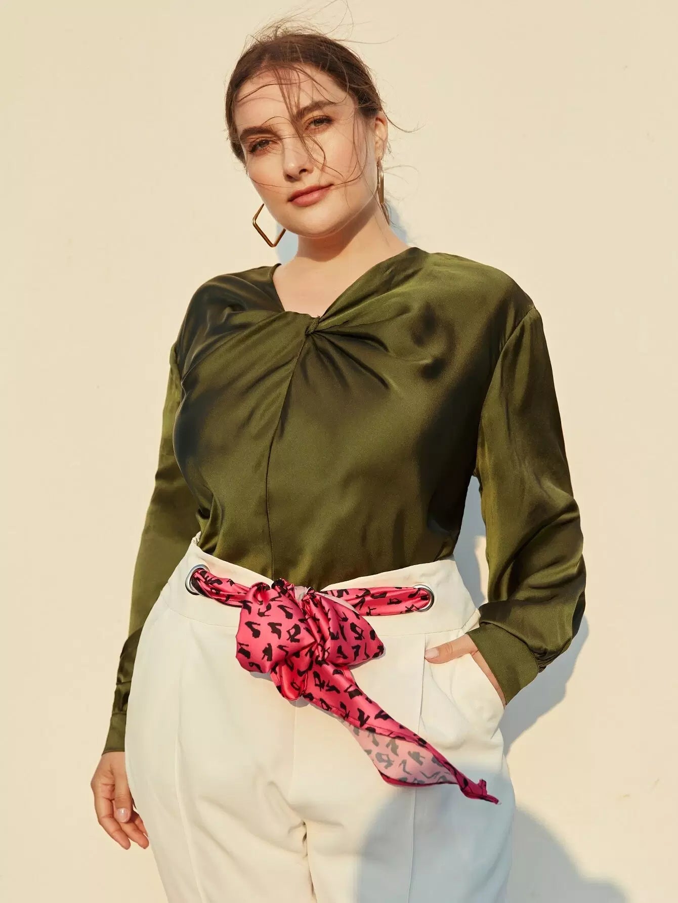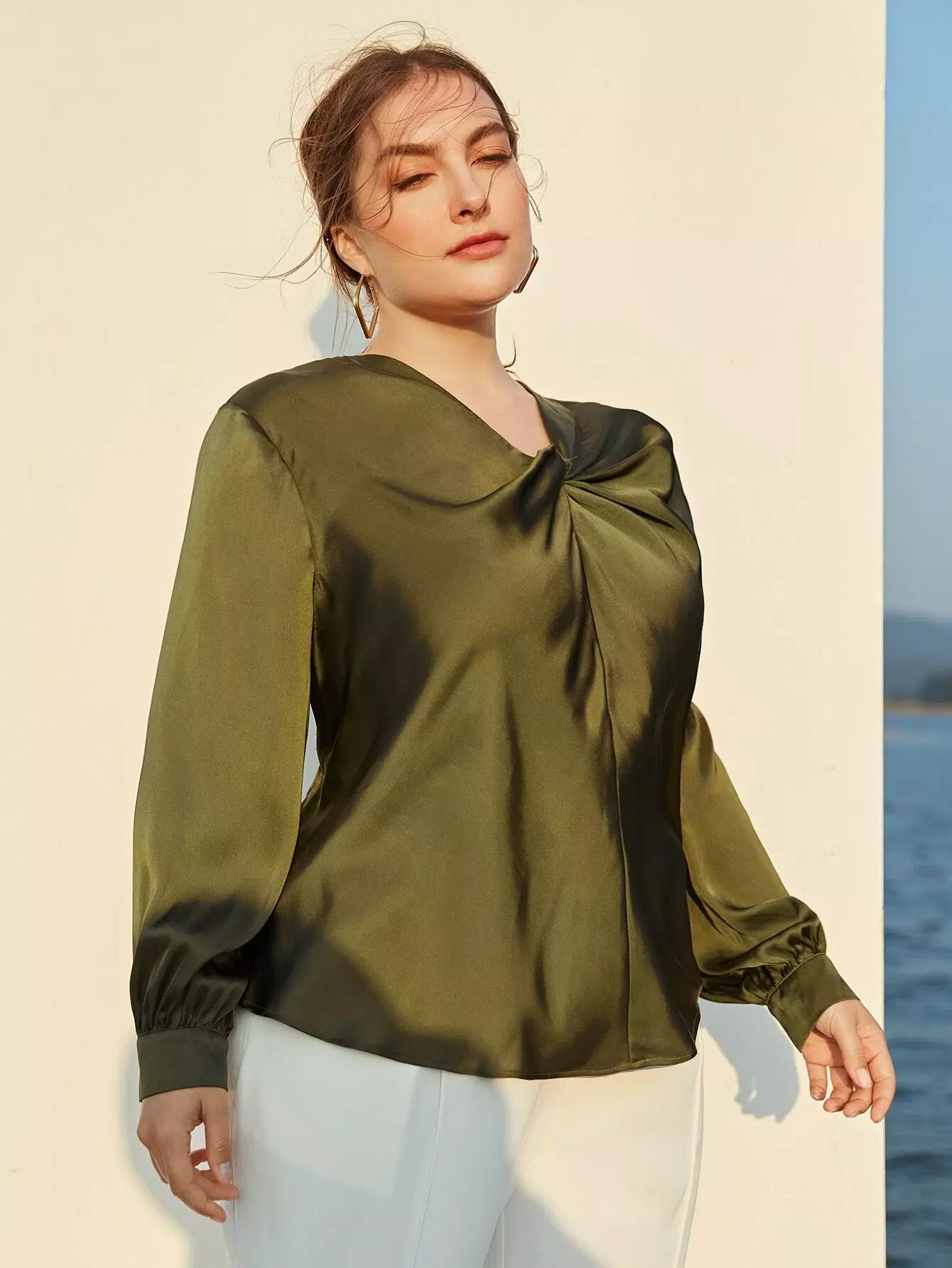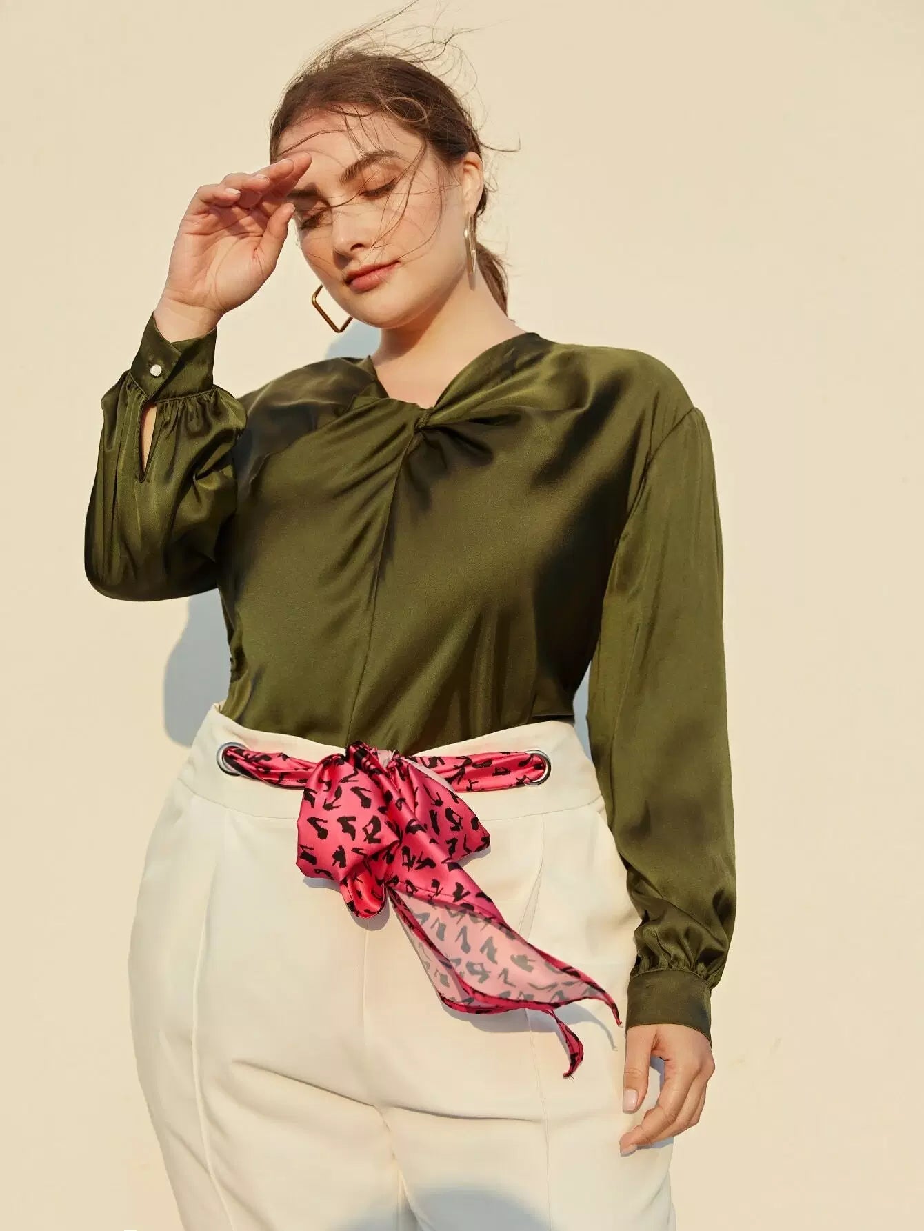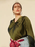 بلوزة ساتان أمامية من الساتان بلس تويست أمامية