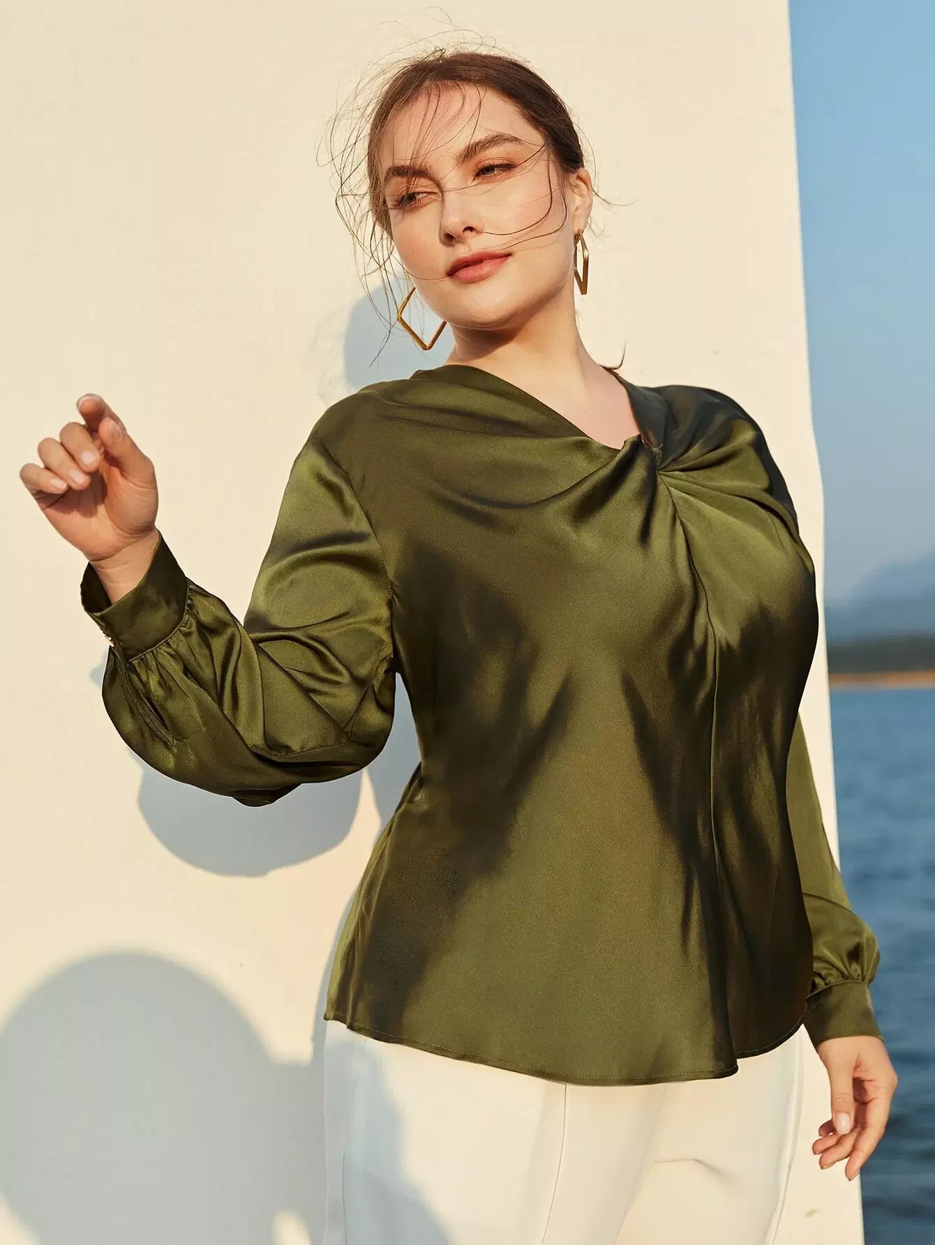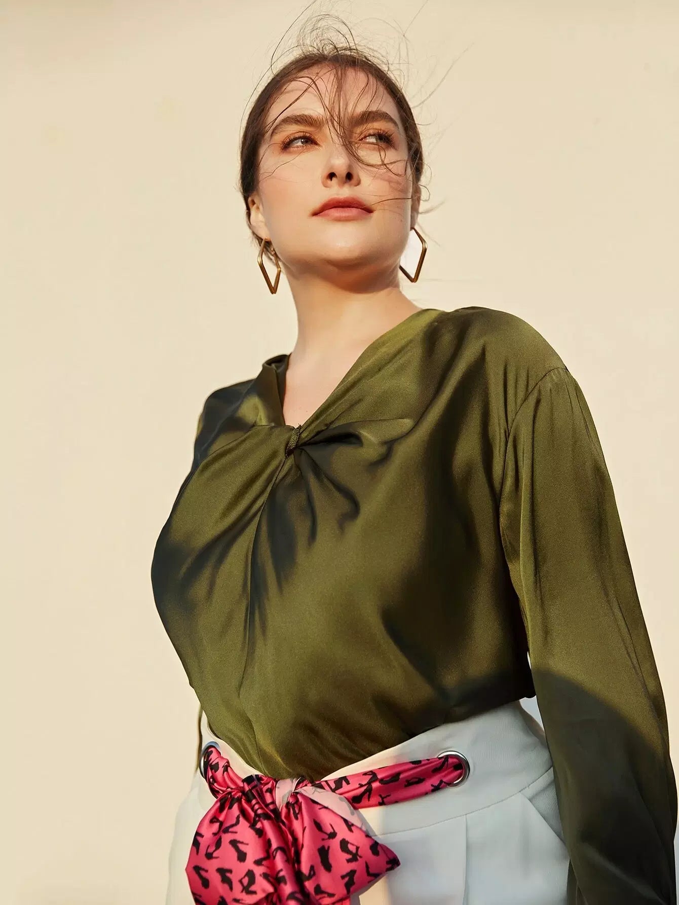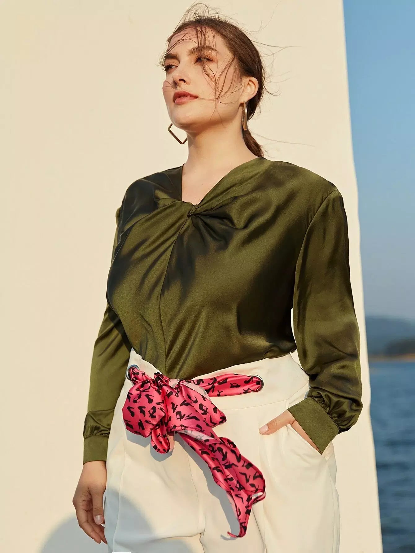 بلوزة ساتان أمامية من الساتان بلس تويست أمامية