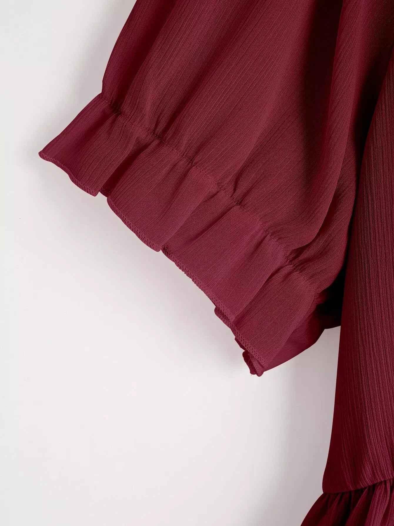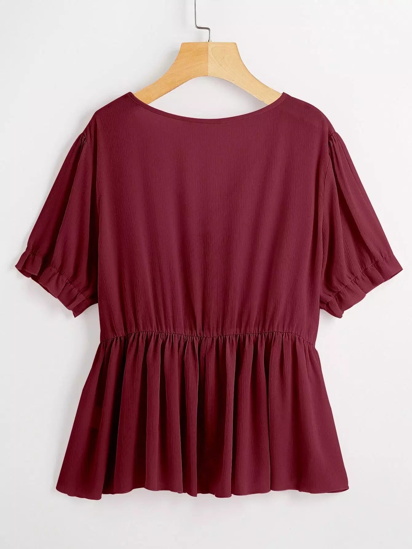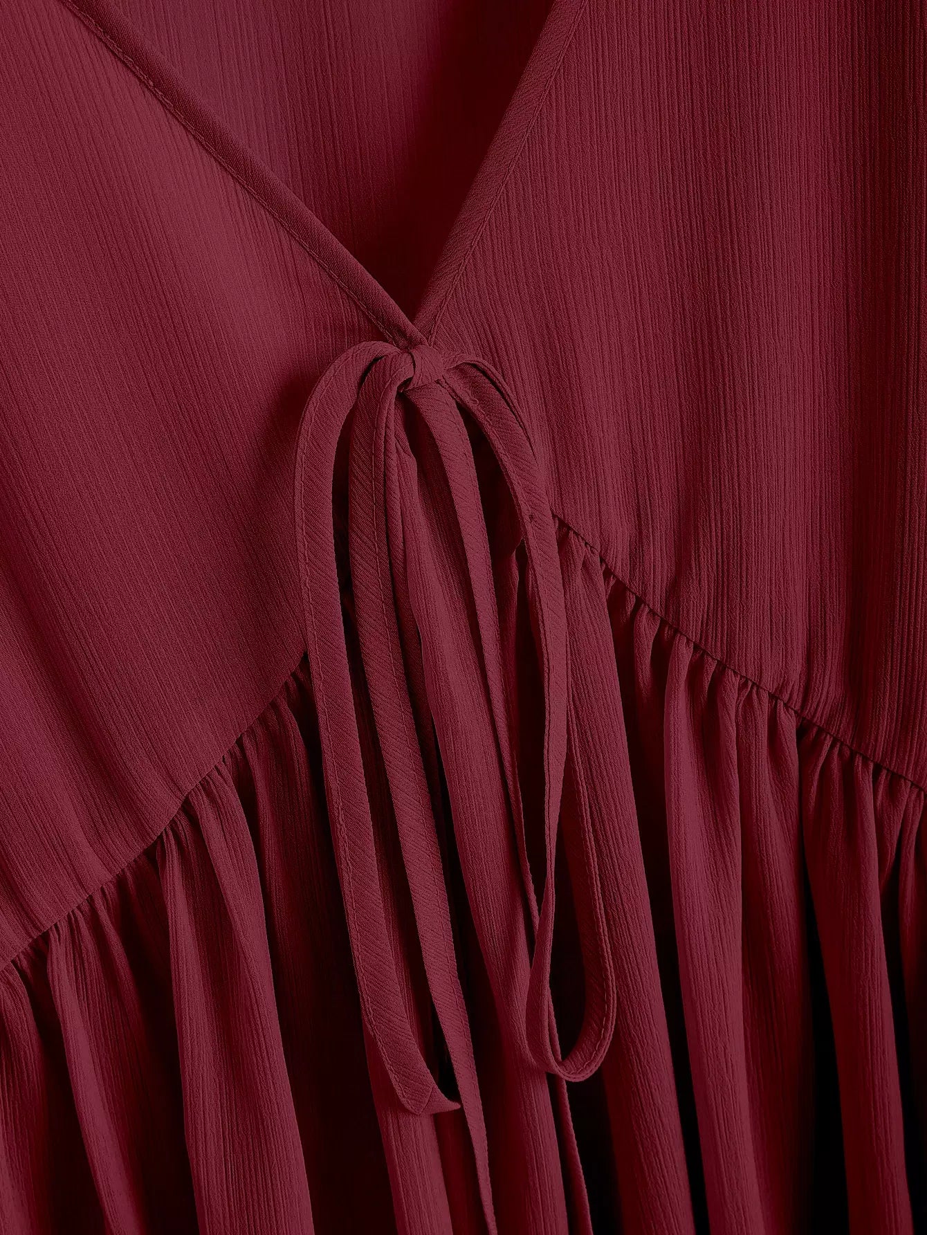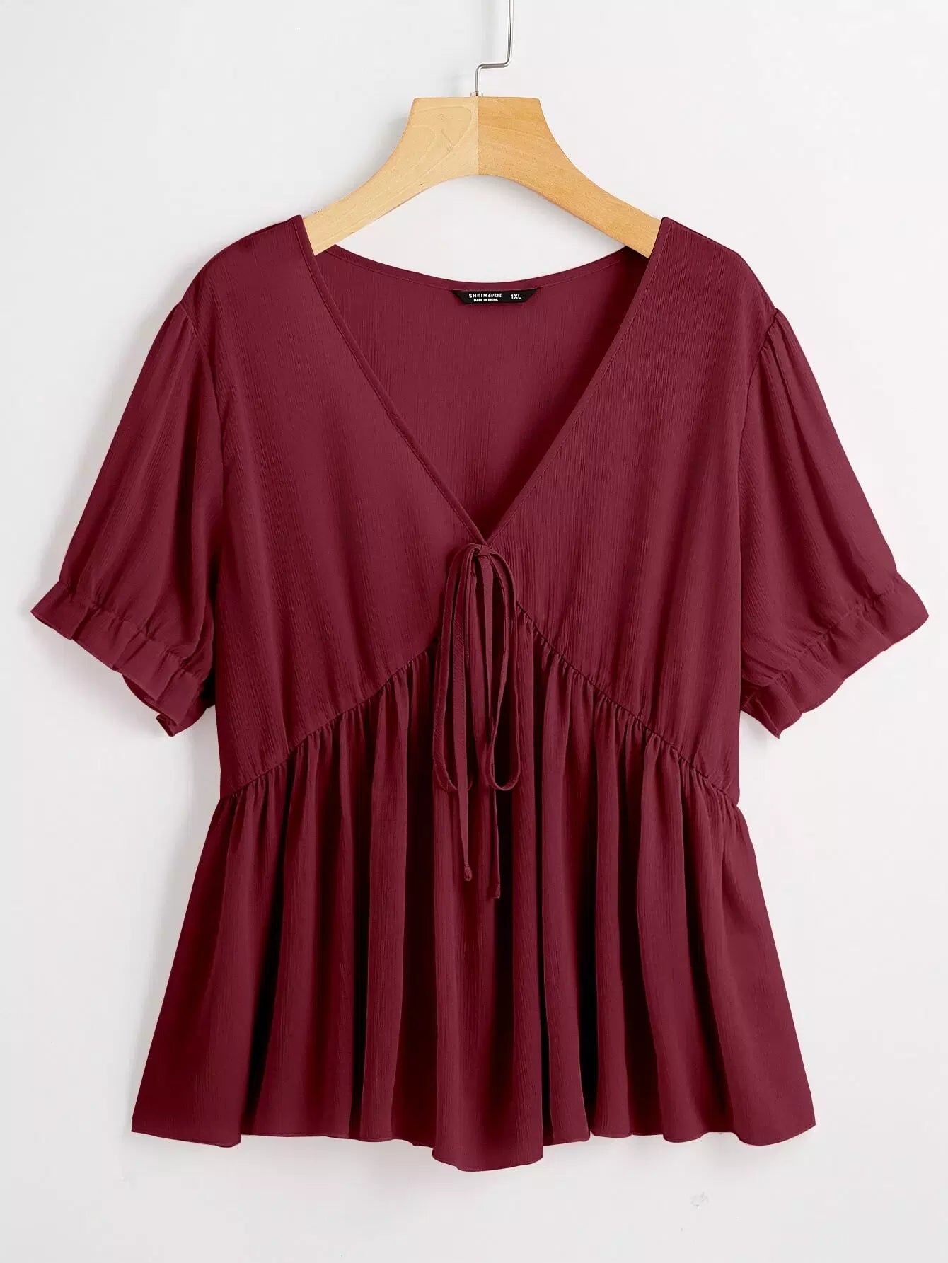 بلوزة برقبة على شكل V وربطة عنق أمامية على شكل V
