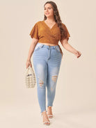 بلوزة دالماسية ملفوفة بربطة جانبية ملفوفة بلاس