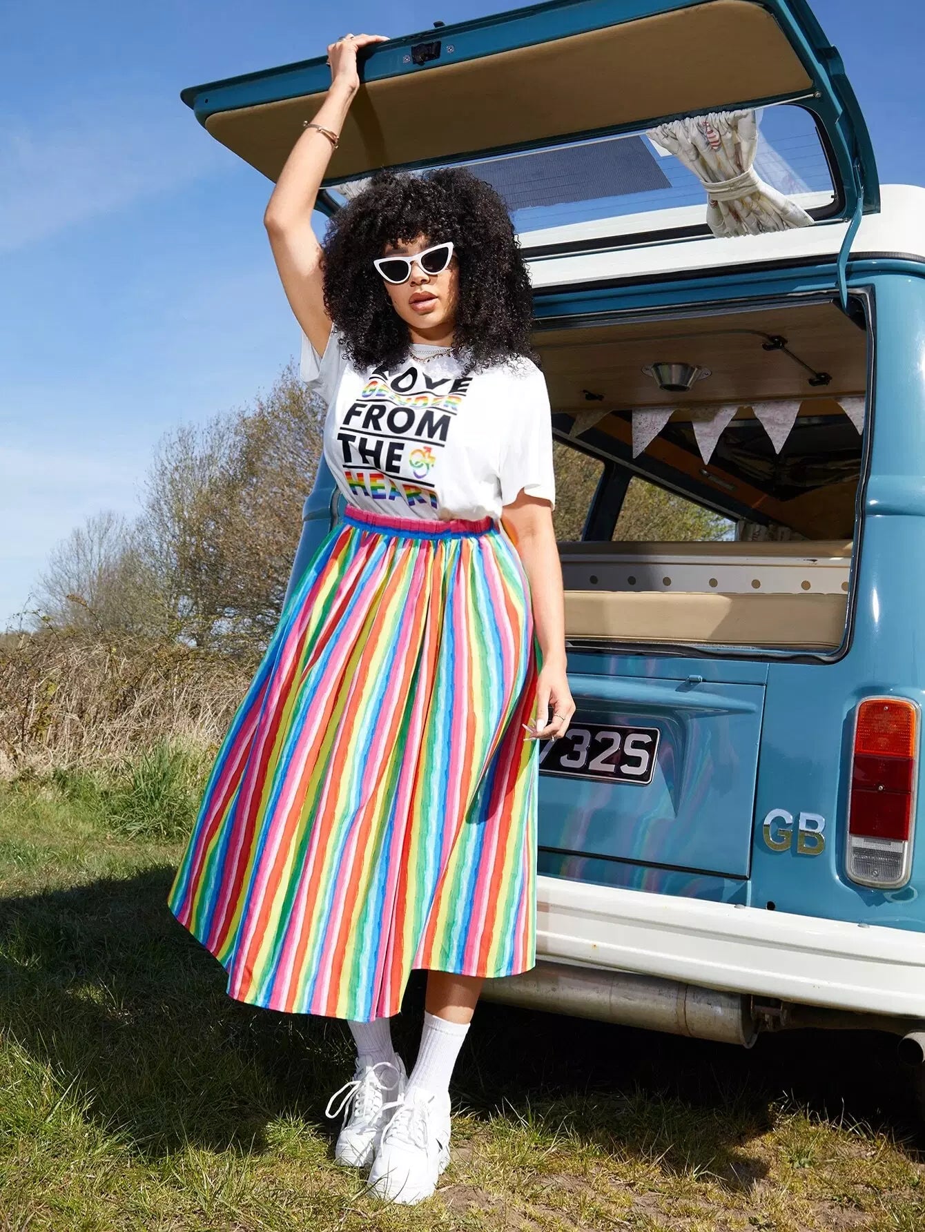 تي شيرت مخطط بألوان قوس قزح وشعار جرافيك LGBT Plus