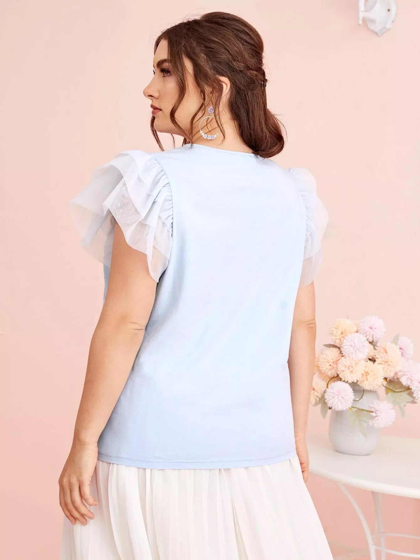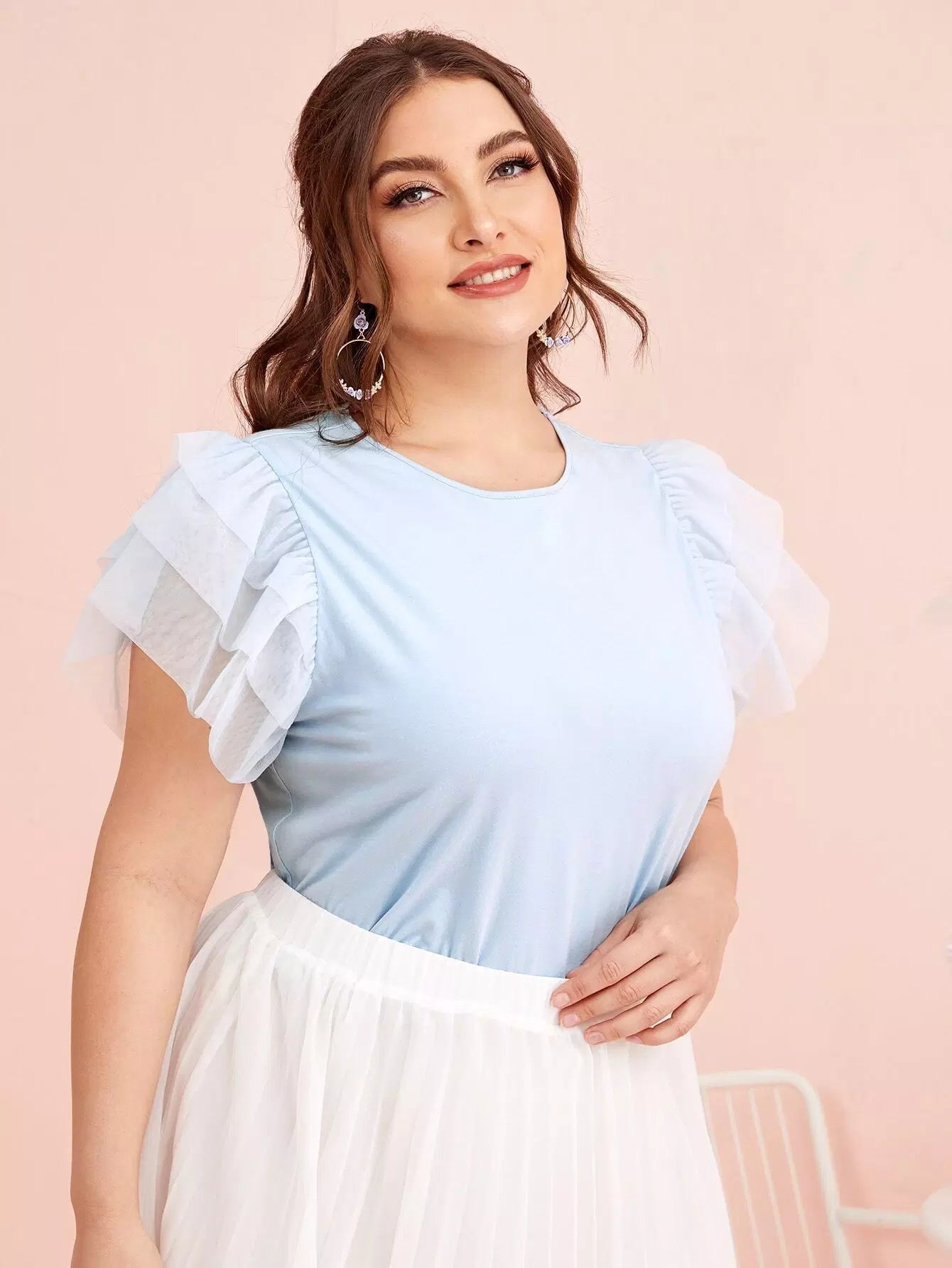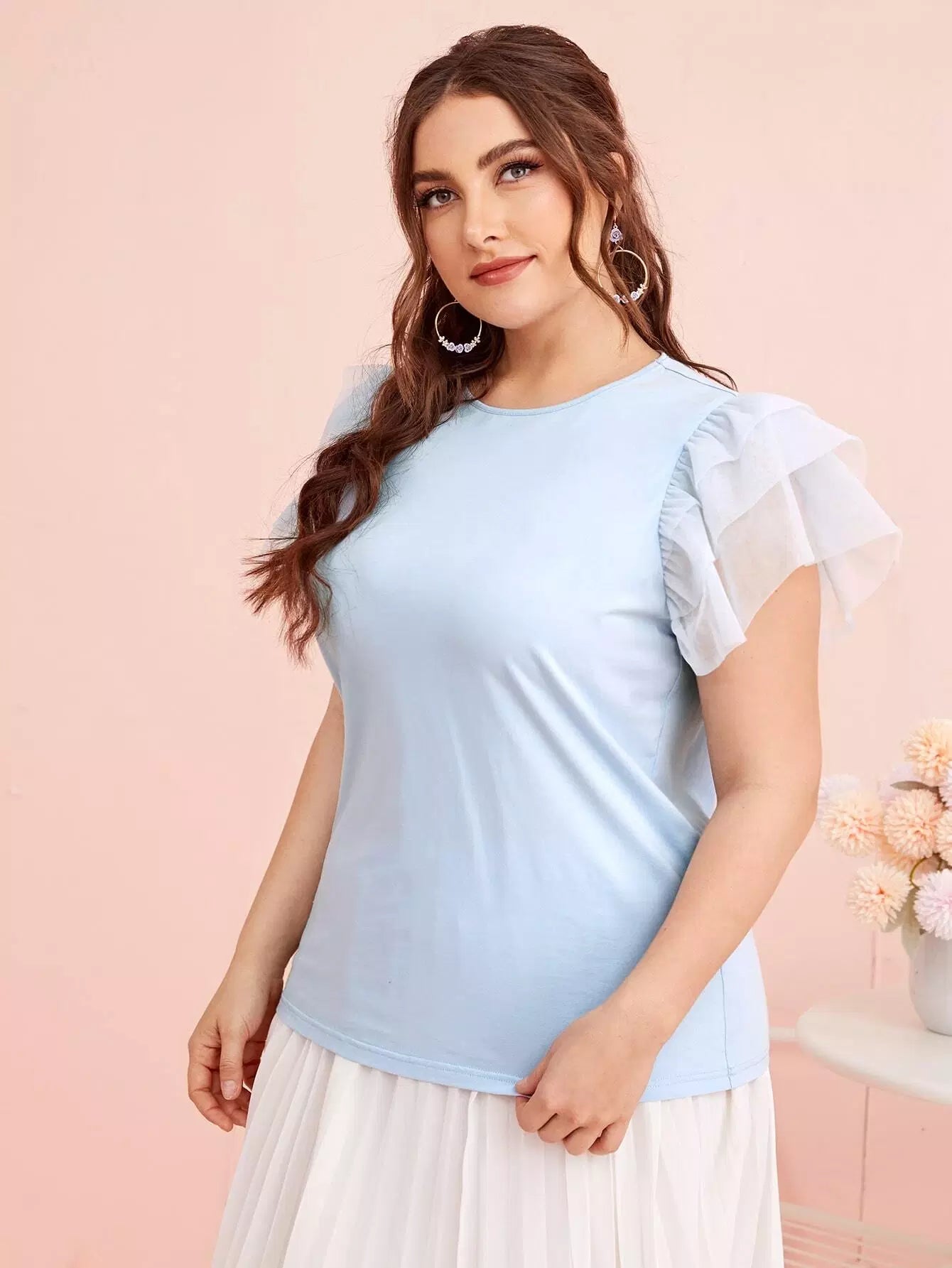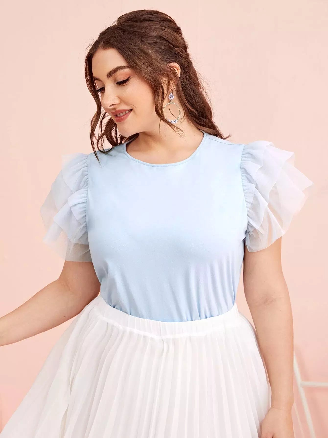 بلوزة بأكمام شبكية بأكمام شبكية بطبقات 1 بلس بلس 1 قطعة