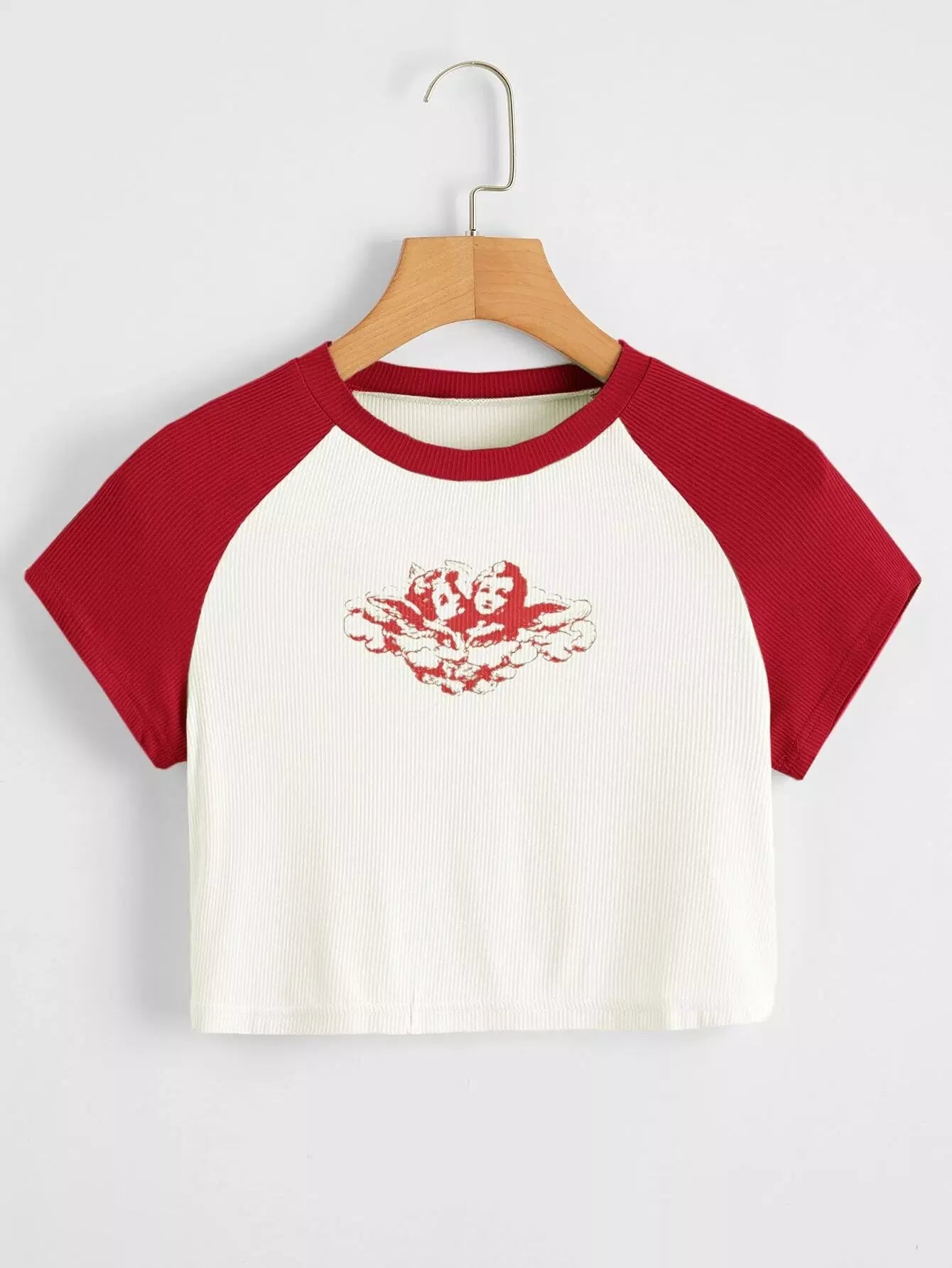 تي شيرت بيسبول قصير بطبعة ملاك زائد