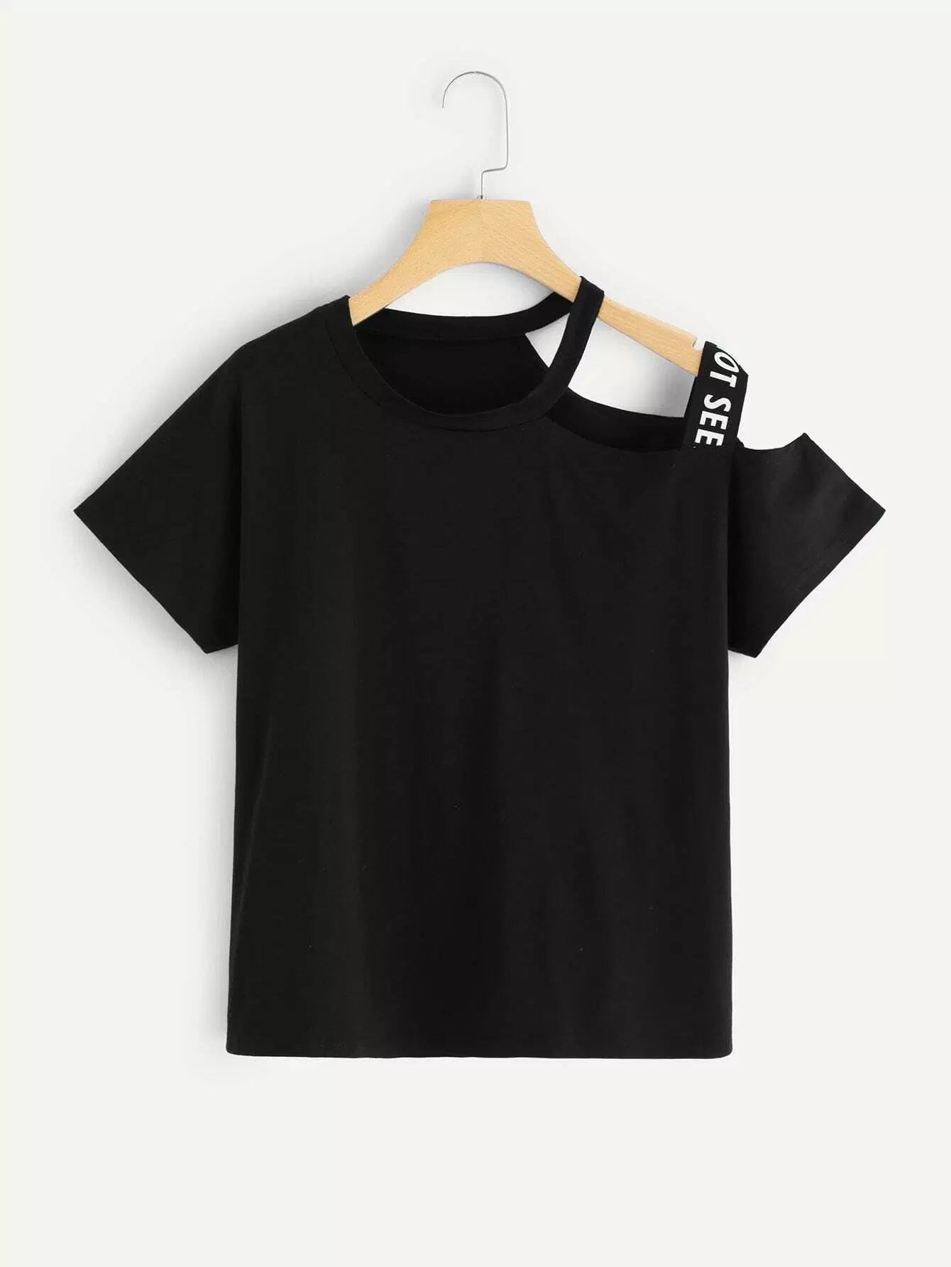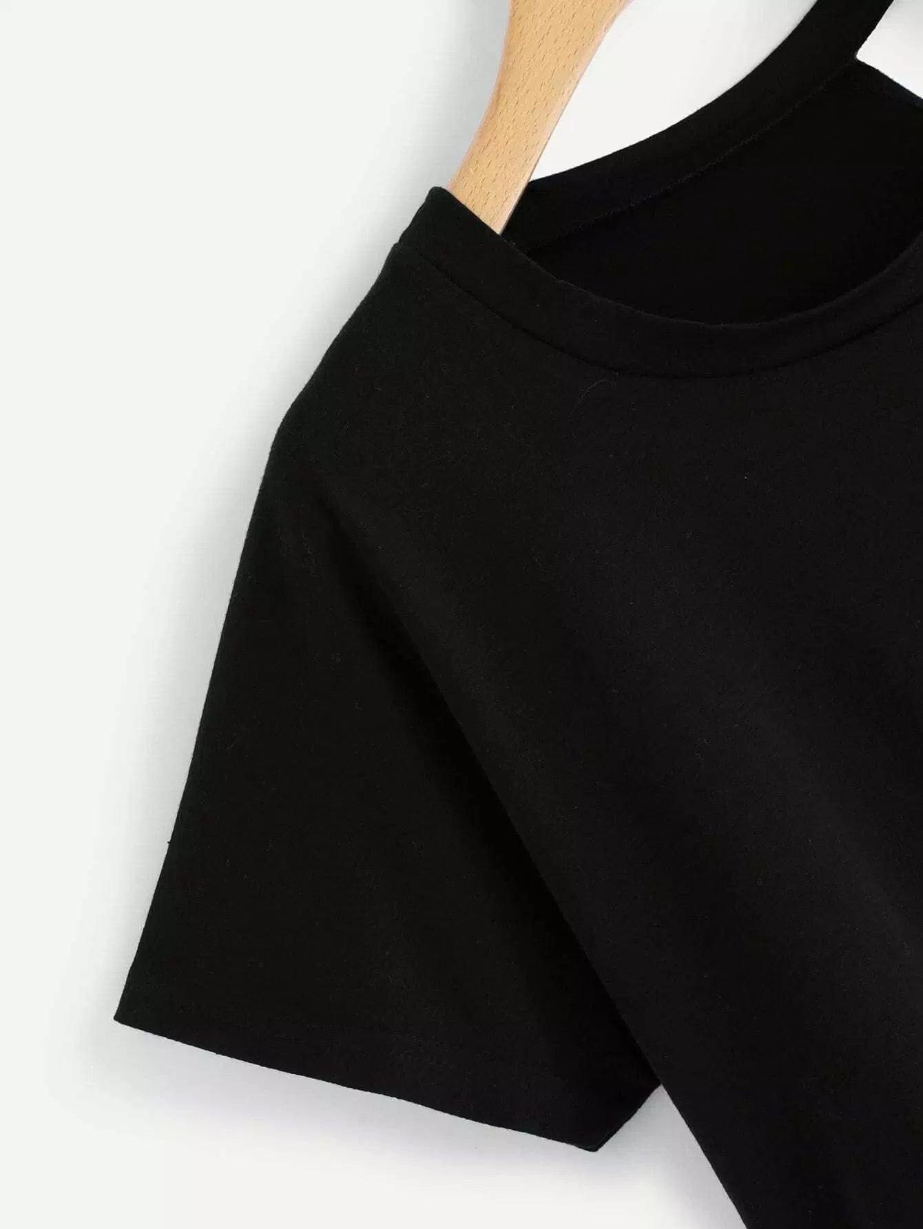 تي شيرت بياقة غير متماثلة برقبة غير متماثلة