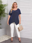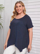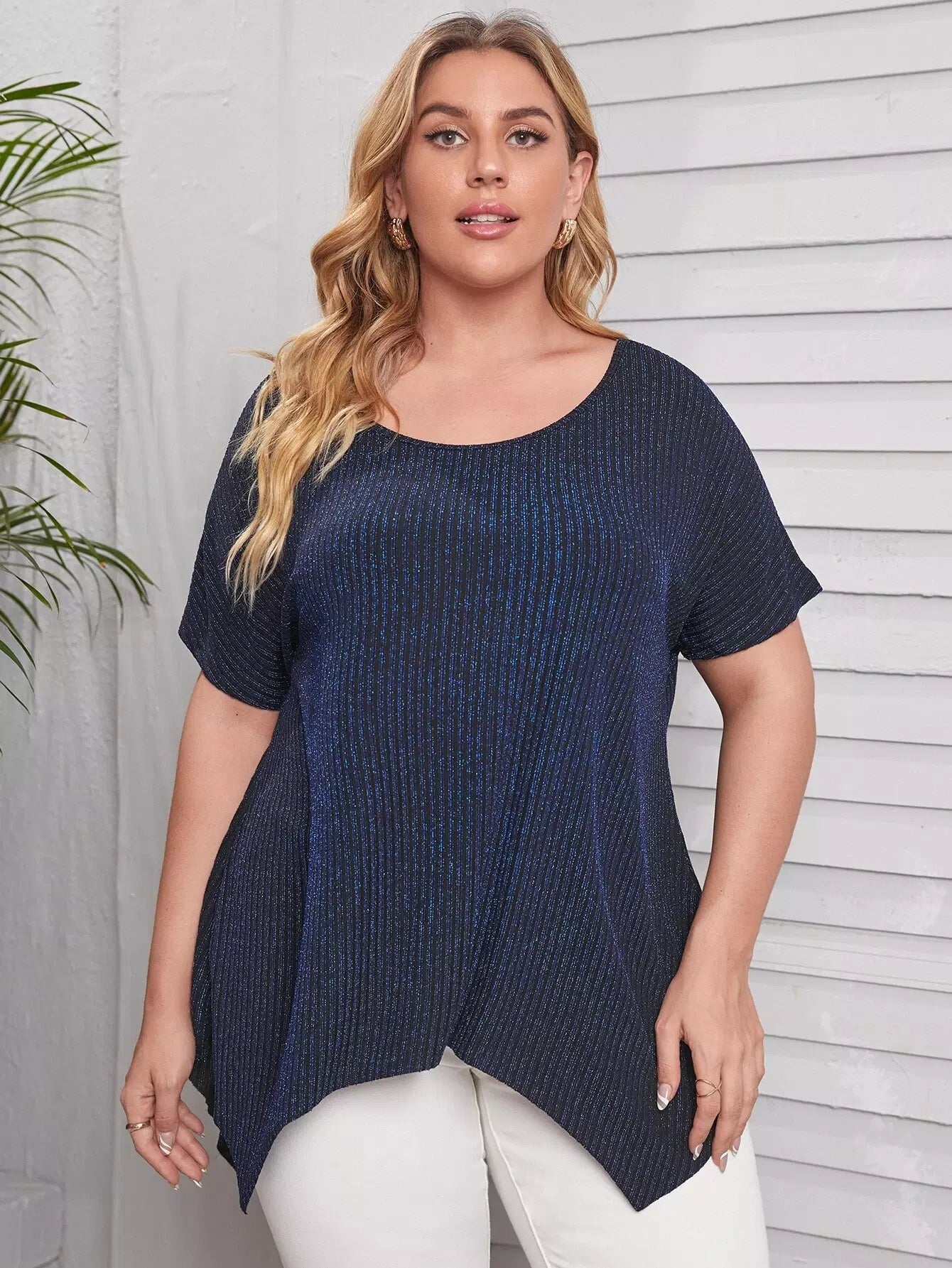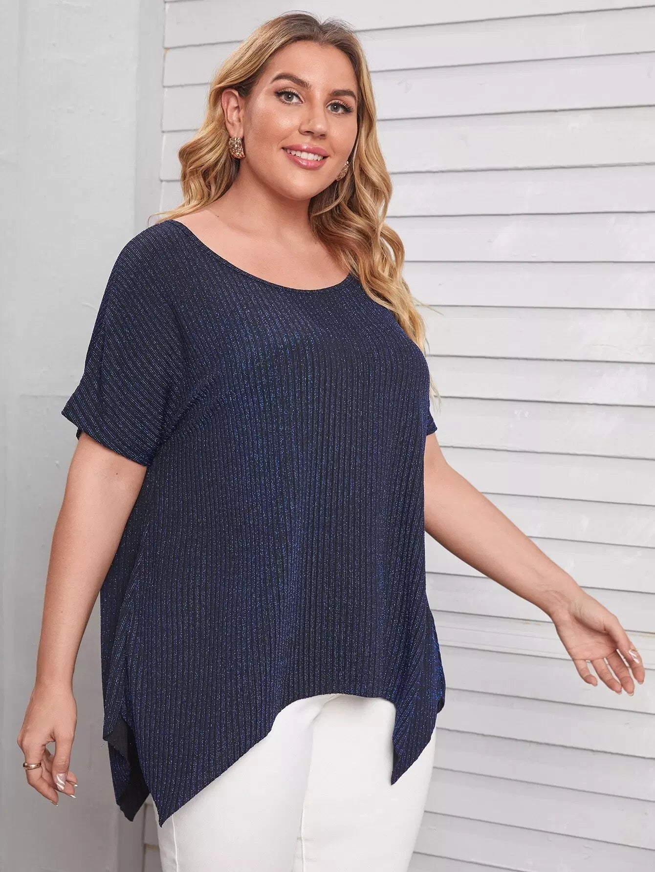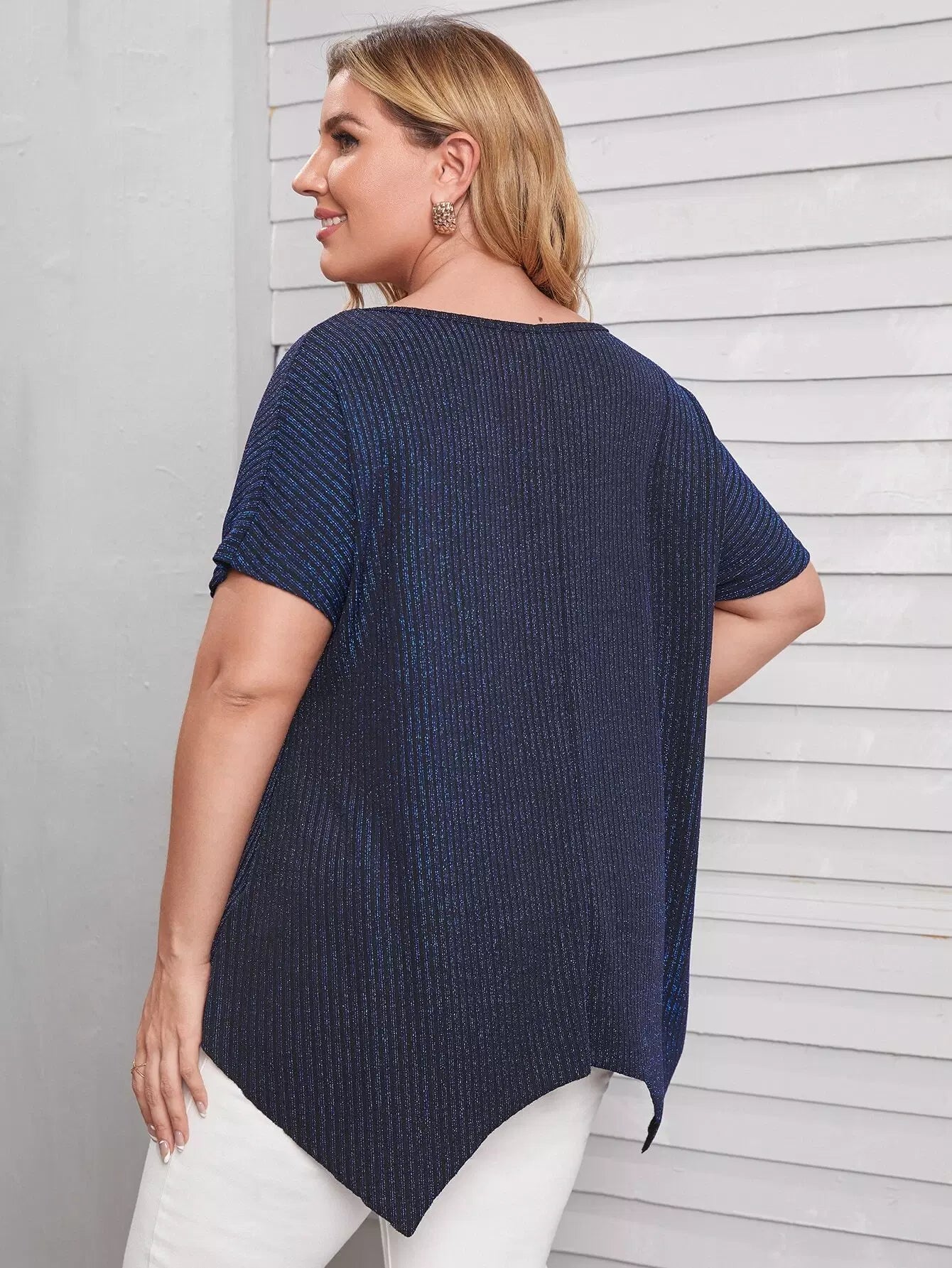 تي شيرت بحاشية غير متناسقة بحافة غير متناسقة ومحبوكة على شكل ضلع