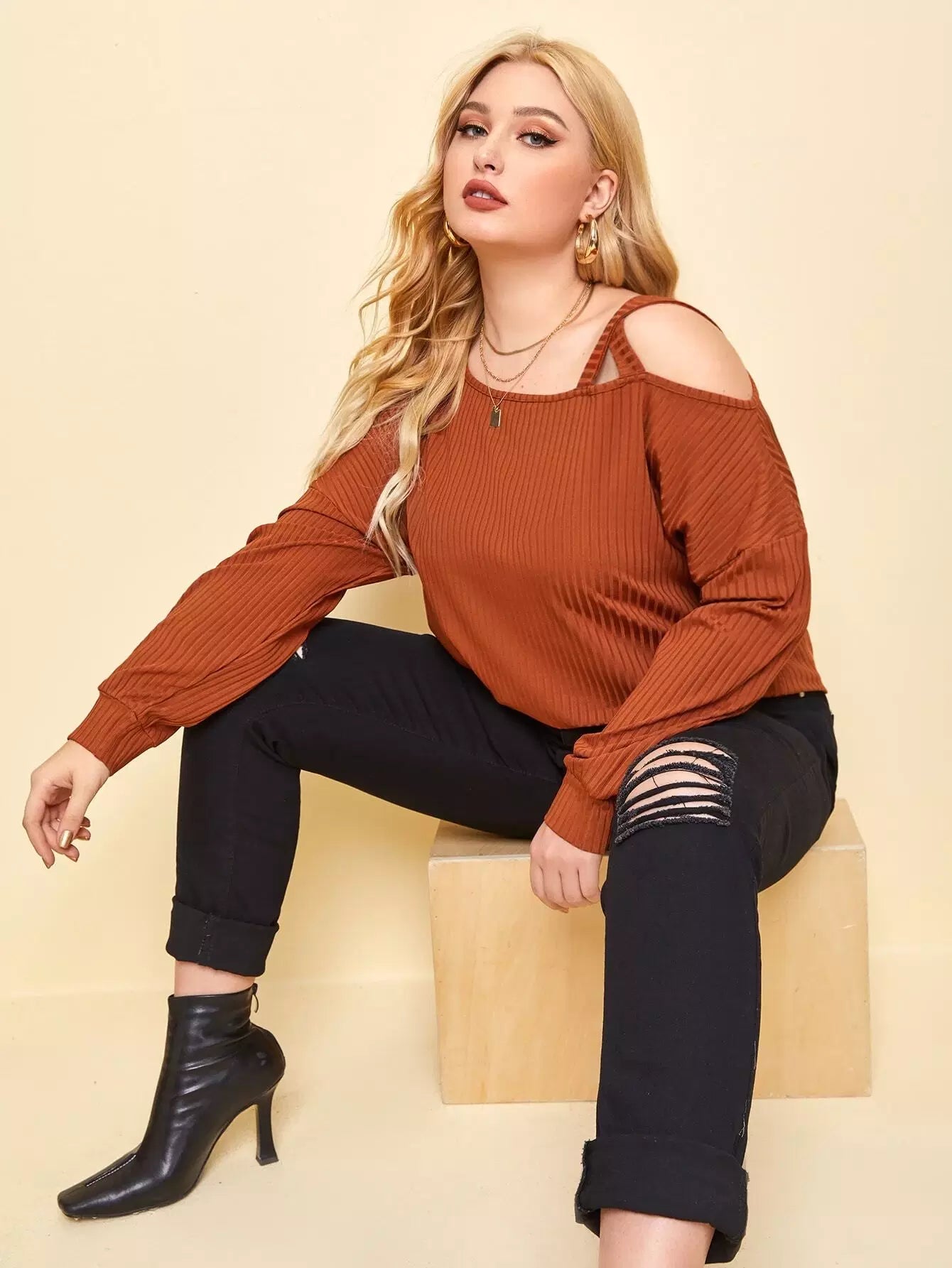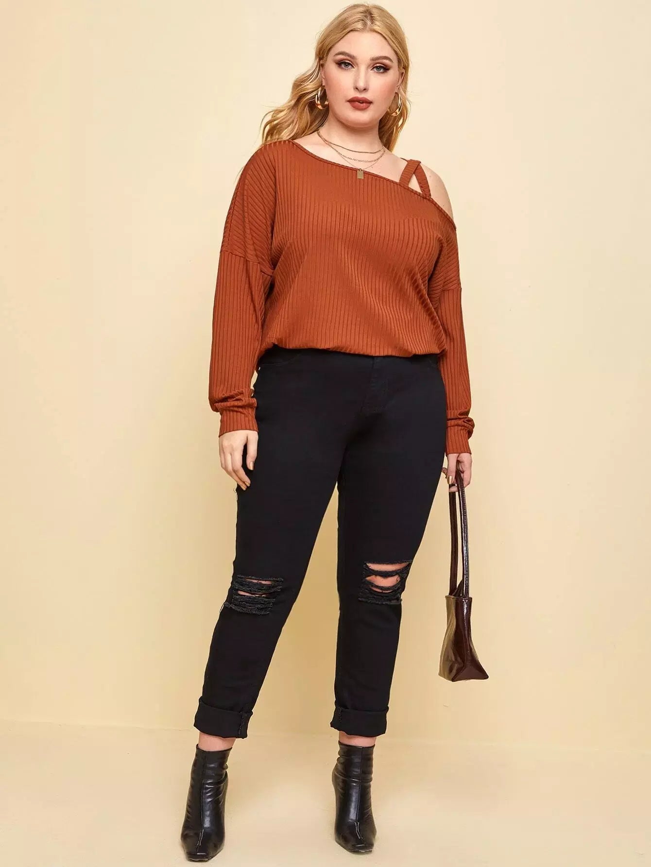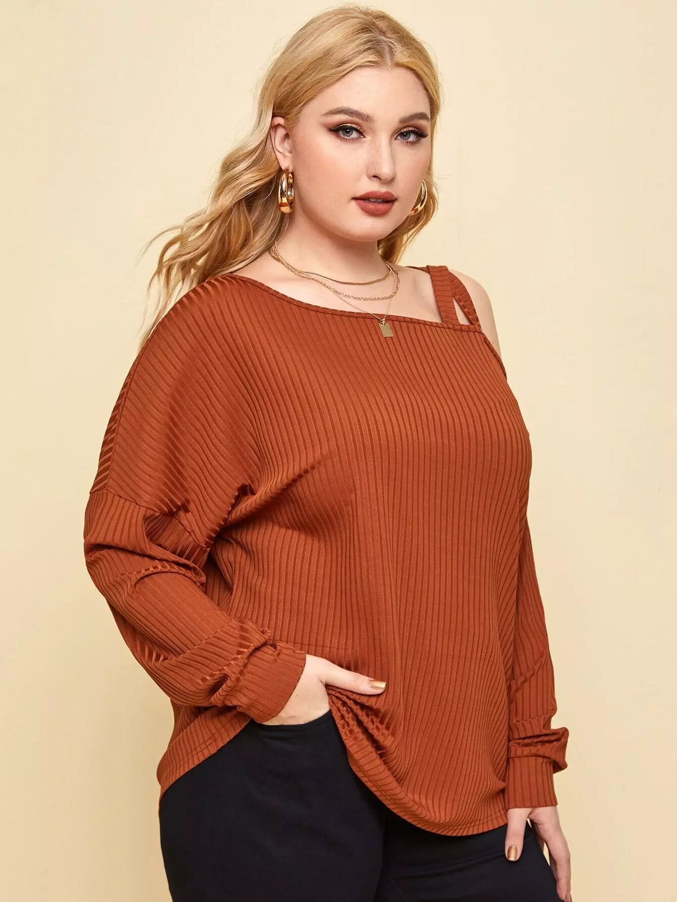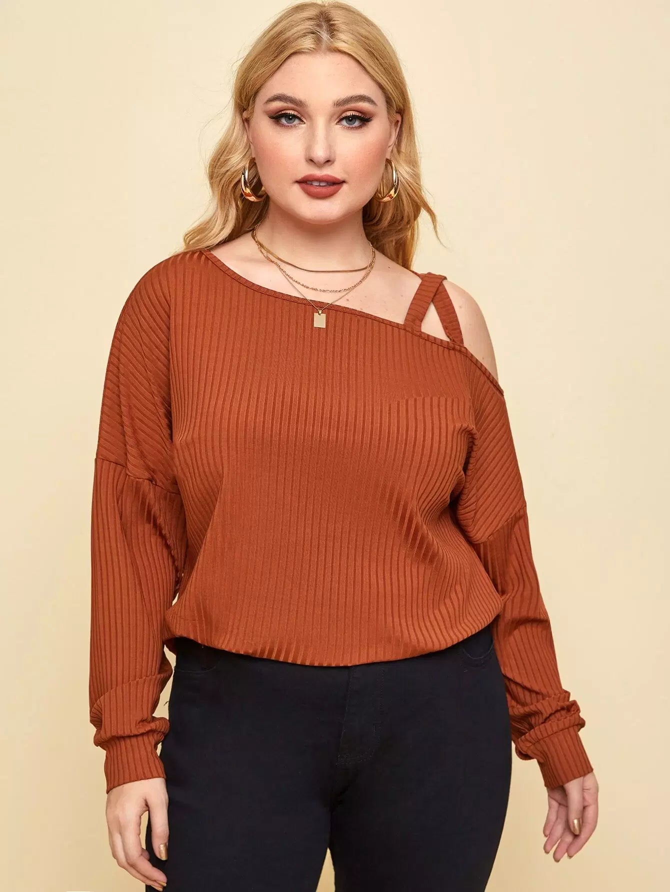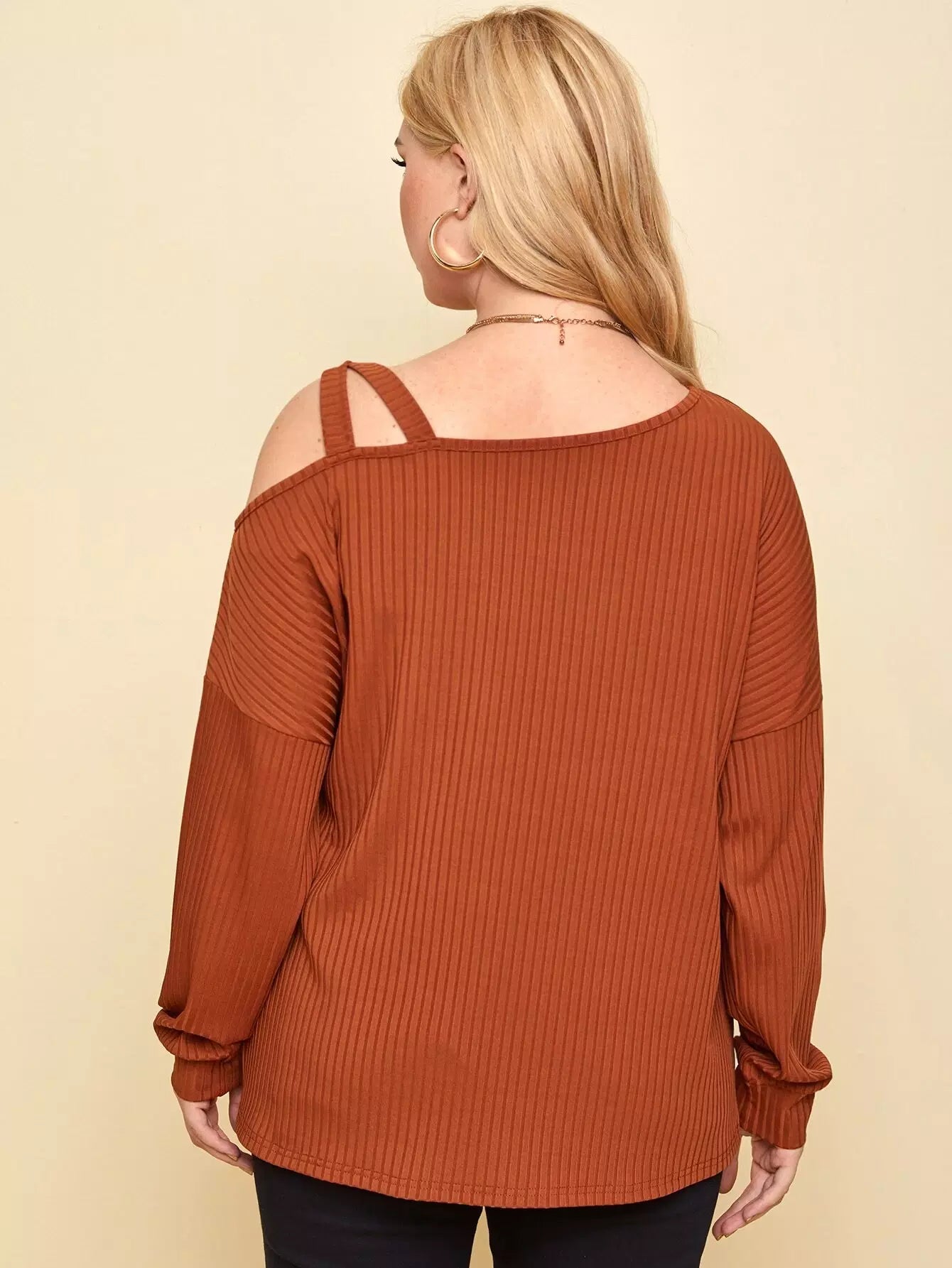 تي شيرت برقبة غير متناظرة منسدلة الكتفين