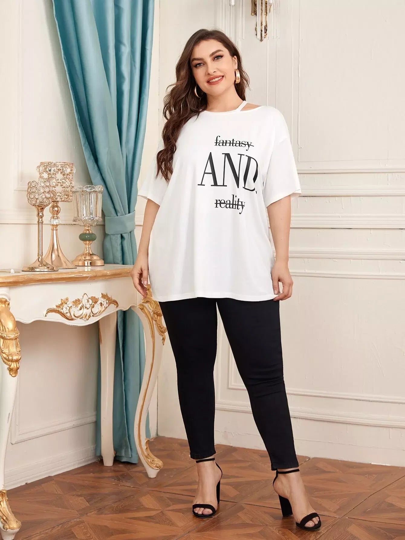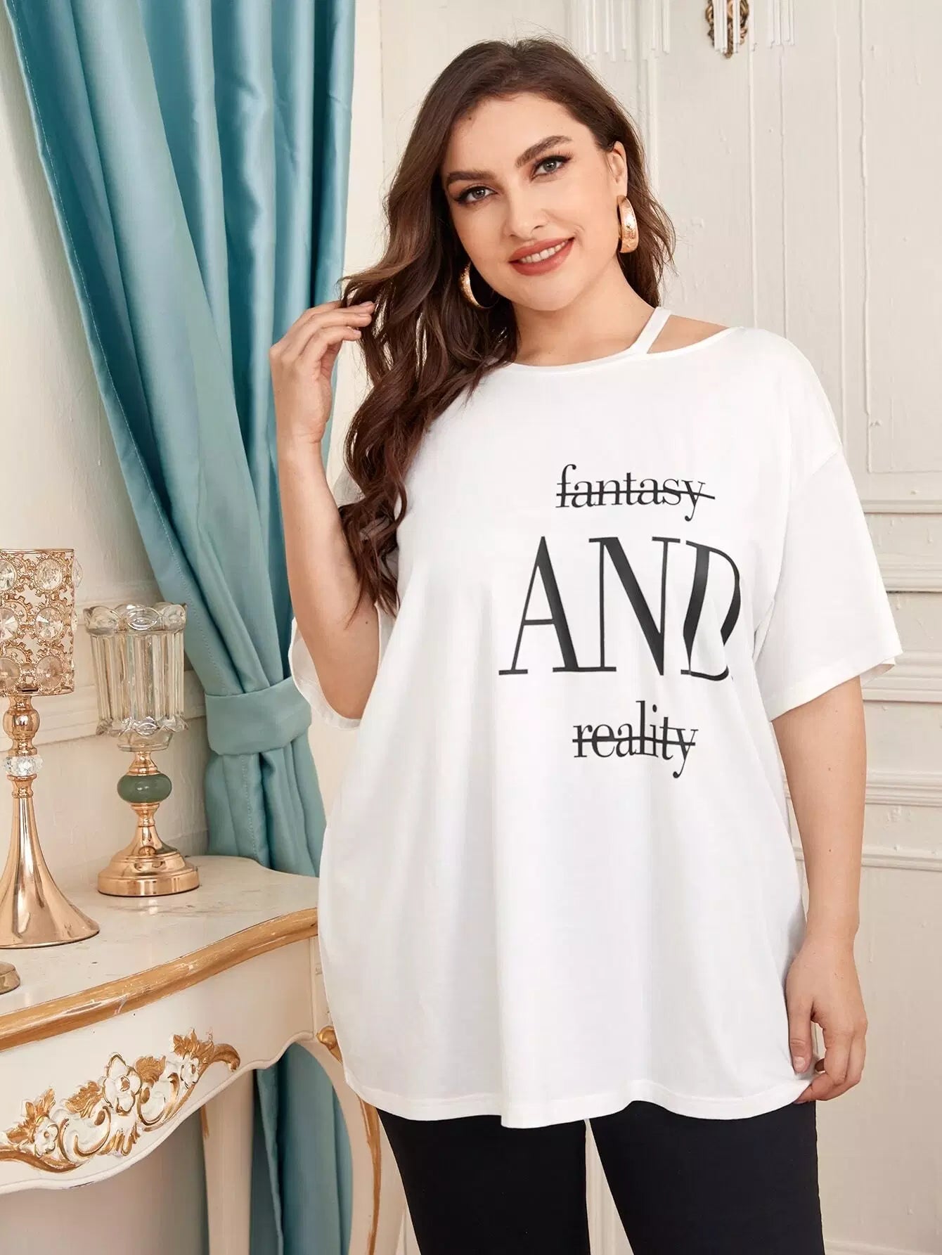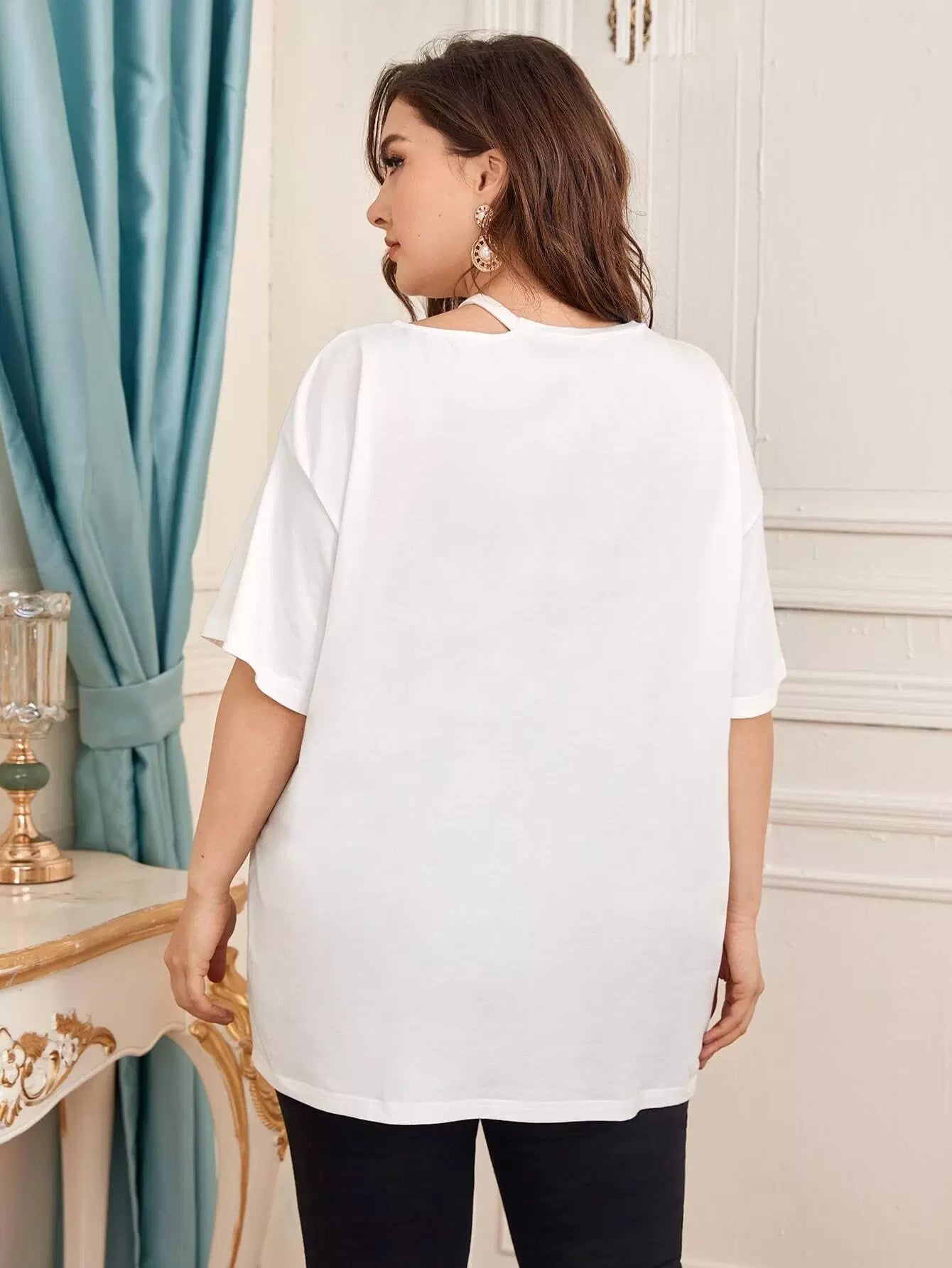 تي شيرت برقبة غير متناسقة برسومات على شكل حرف زائد