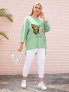 تي شيرت بطبعة فراشة عالية منخفضة زائد