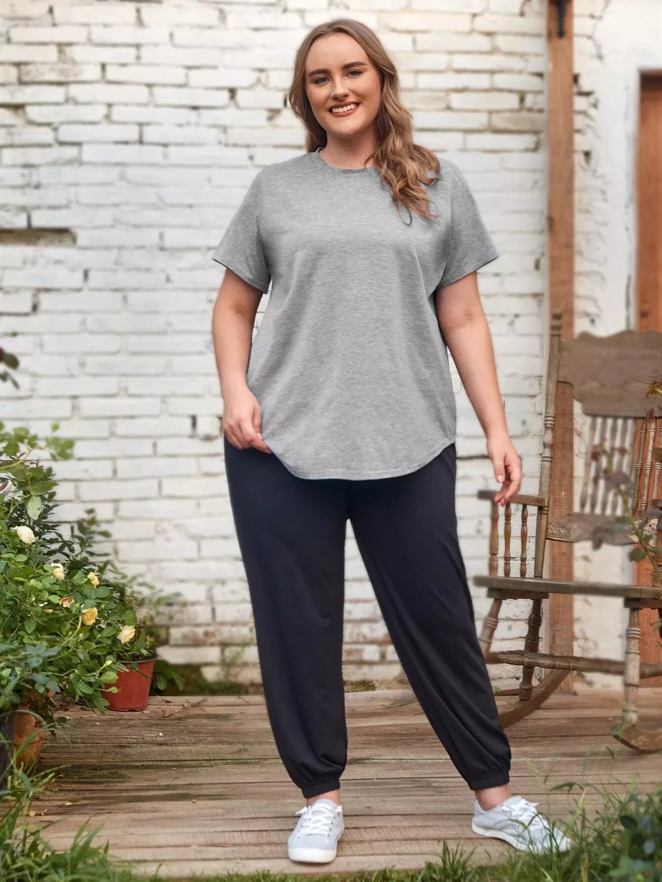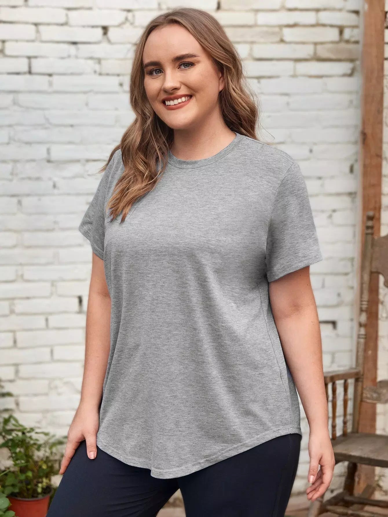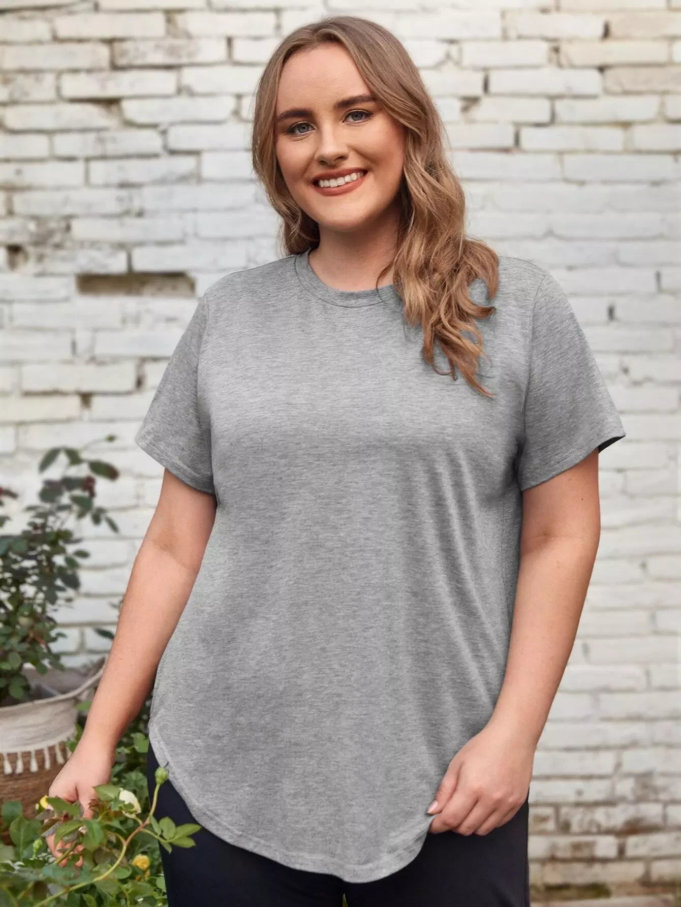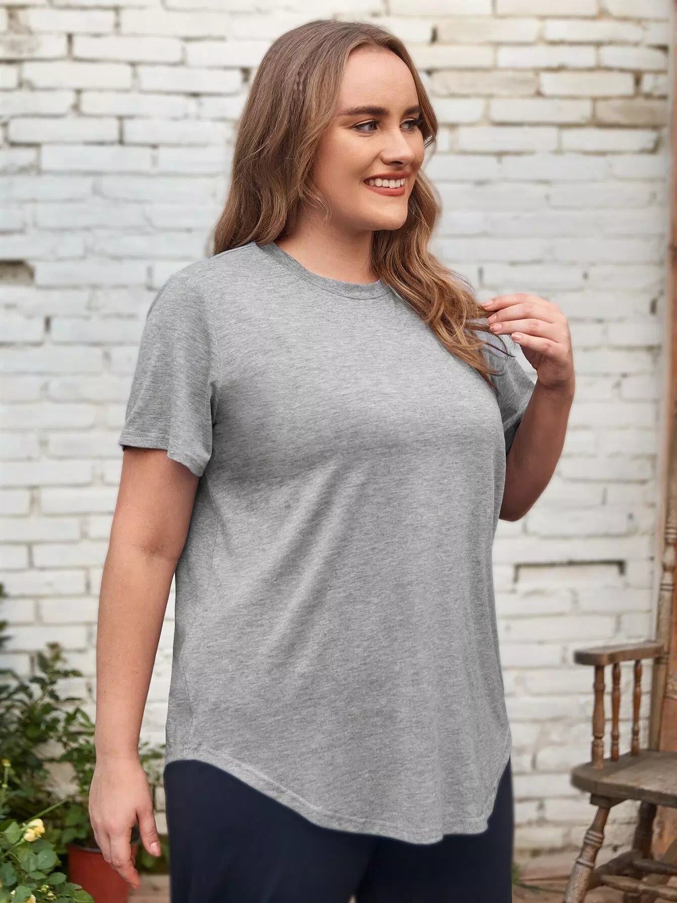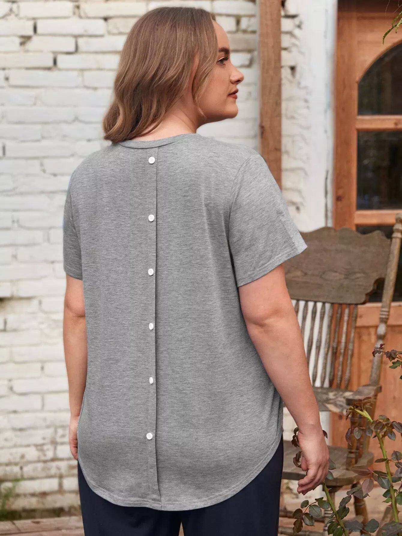 تي شيرت بحافة منحنية من الخلف بأزرار زائد