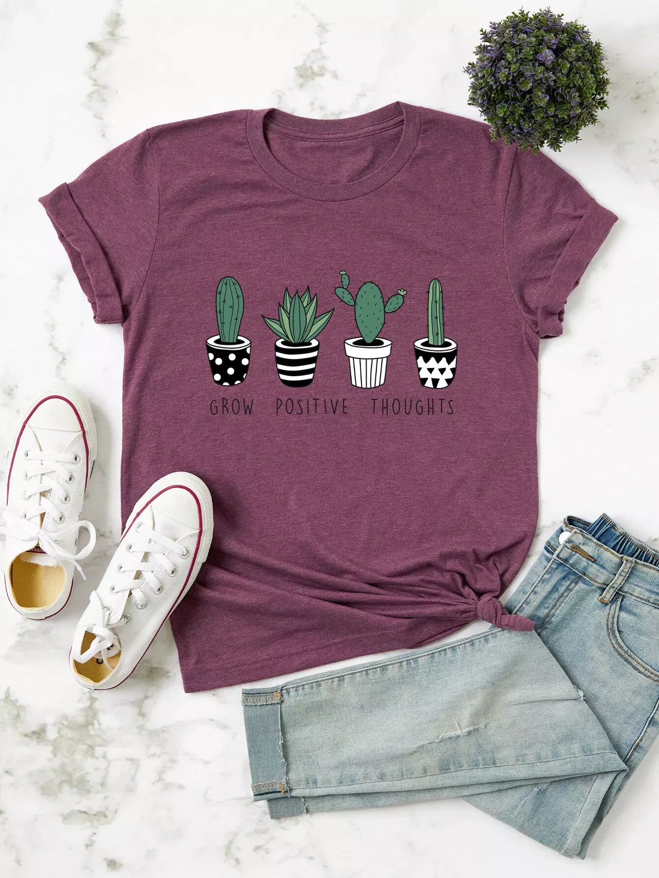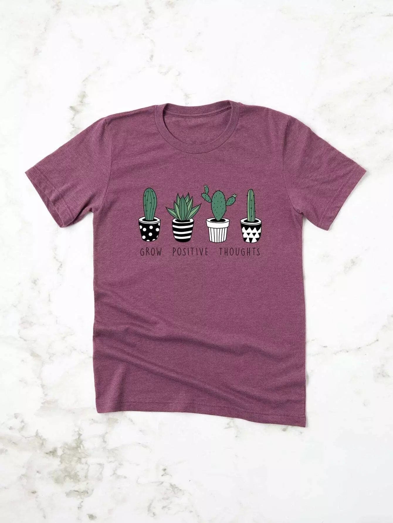 نحيف - مقاس كبير تي شيرت برسومات الصبار والشعار