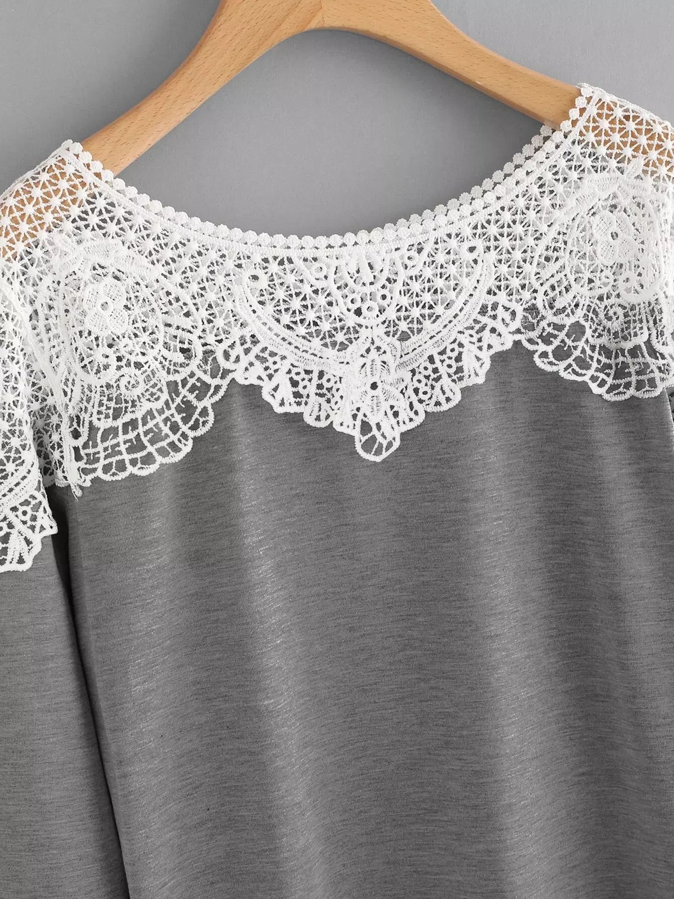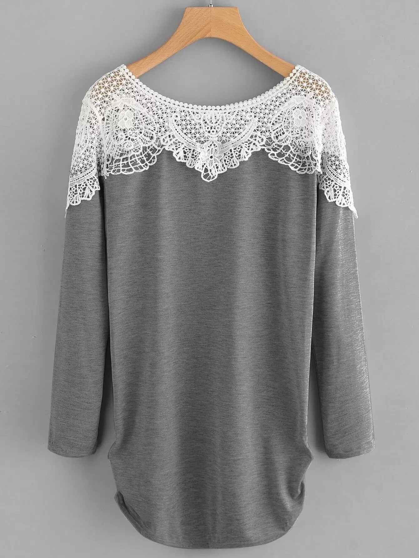 تي شيرت بحافة منحنية من الدانتيل بلون مغاير بلون مغاير