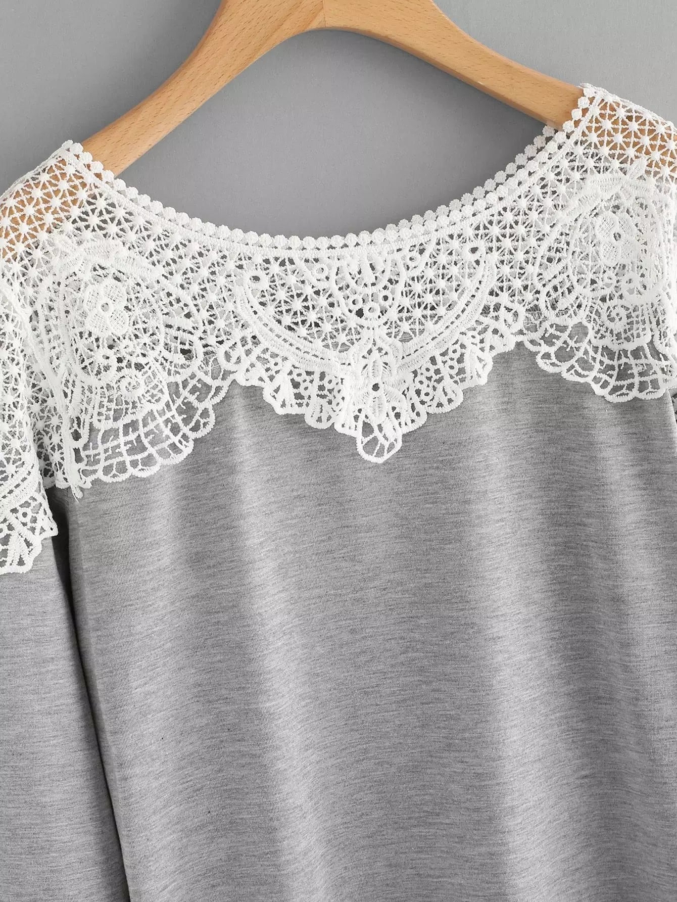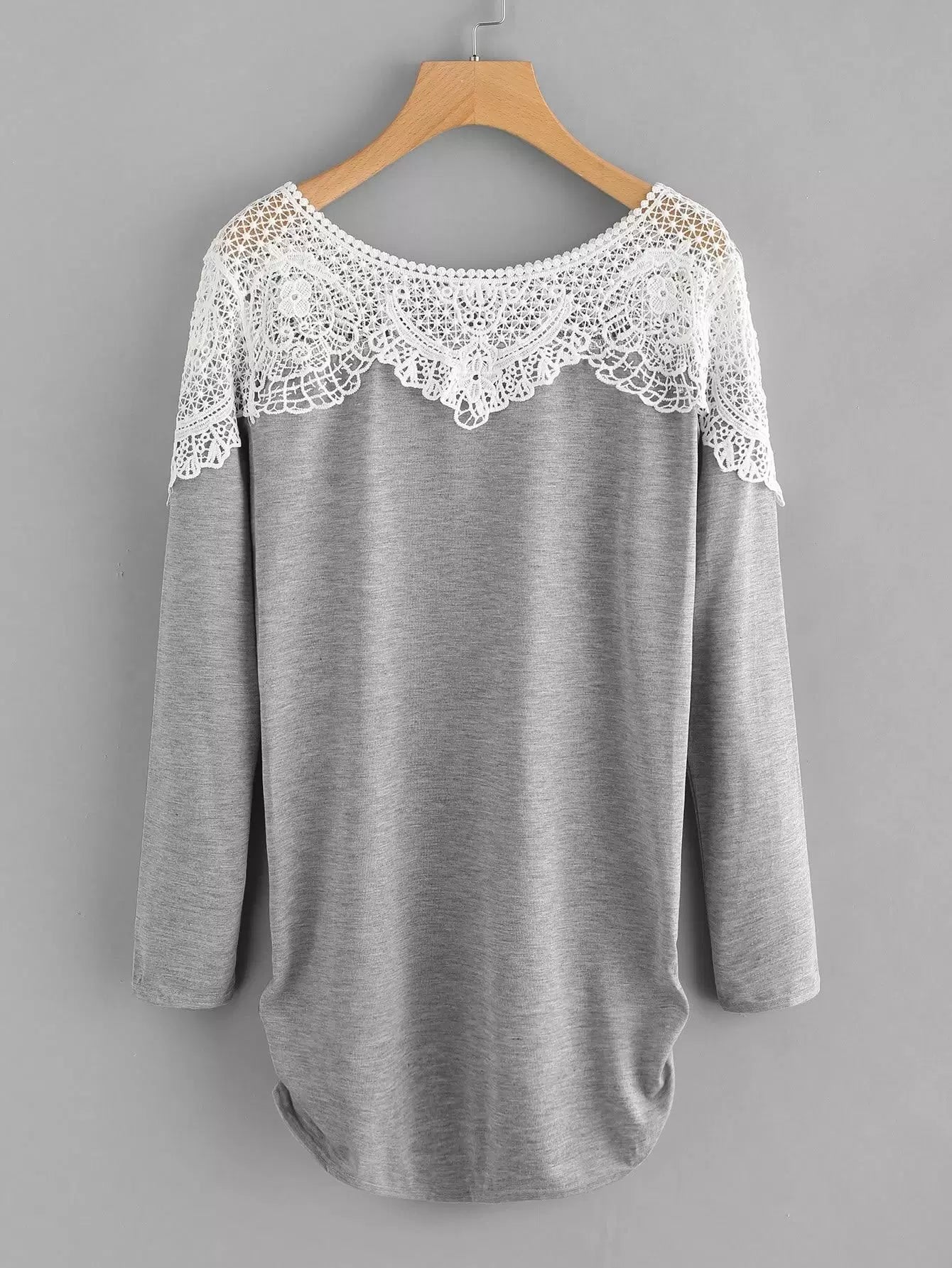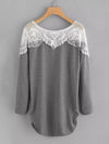 تي شيرت بحافة منحنية من الدانتيل بلون مغاير بلون مغاير
