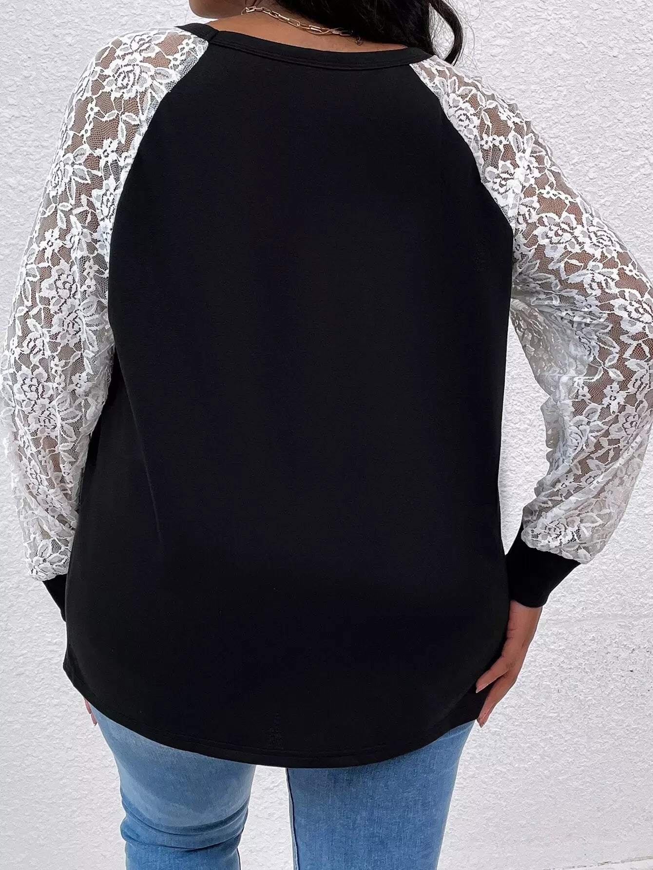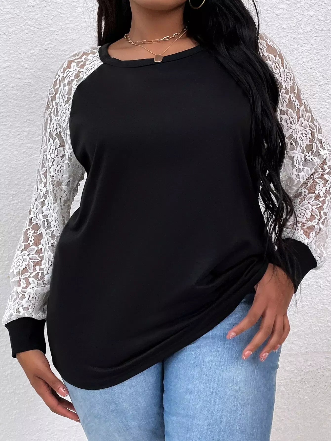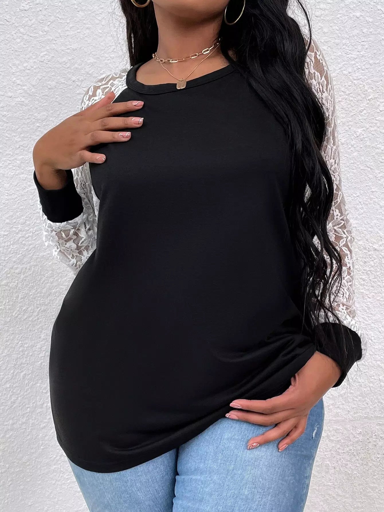 تي شيرت بأكمام دانتيل بلون مغاير من الدانتيل