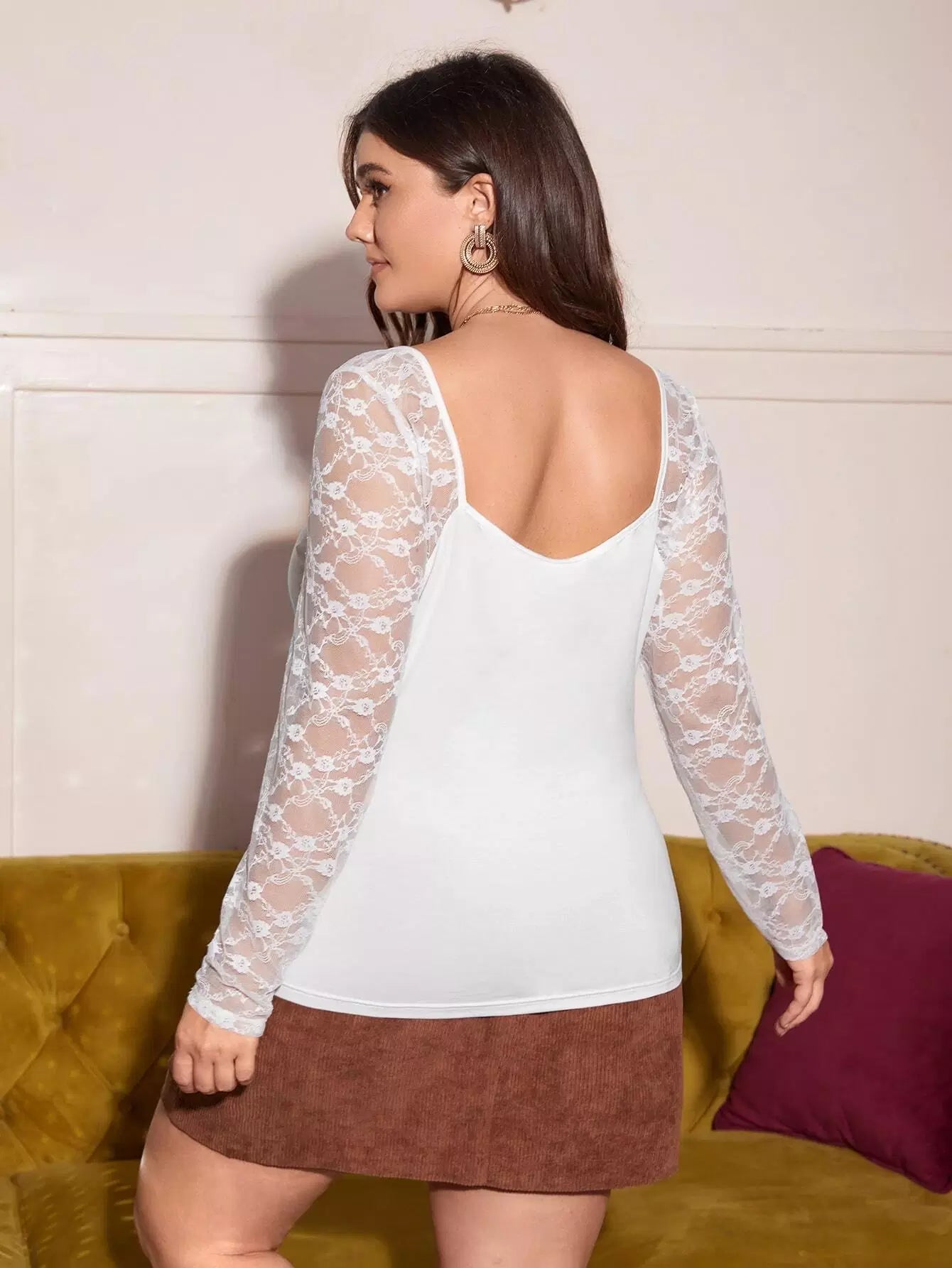 تي شيرت برقبة دانتيل بلون مغاير برقبة دانتيل مغاير برقبة دانتيل مغاير