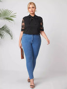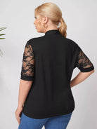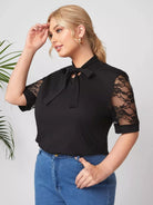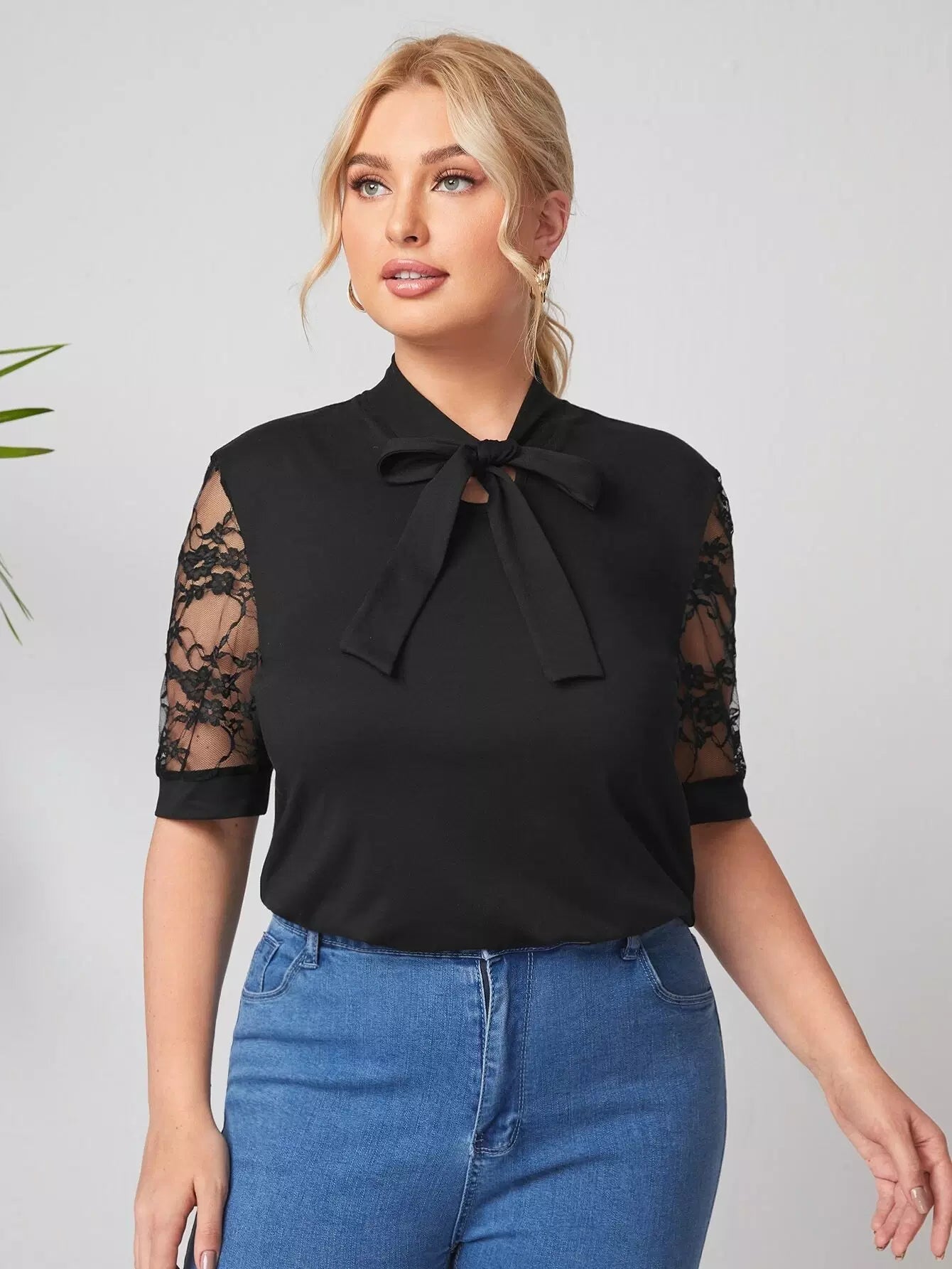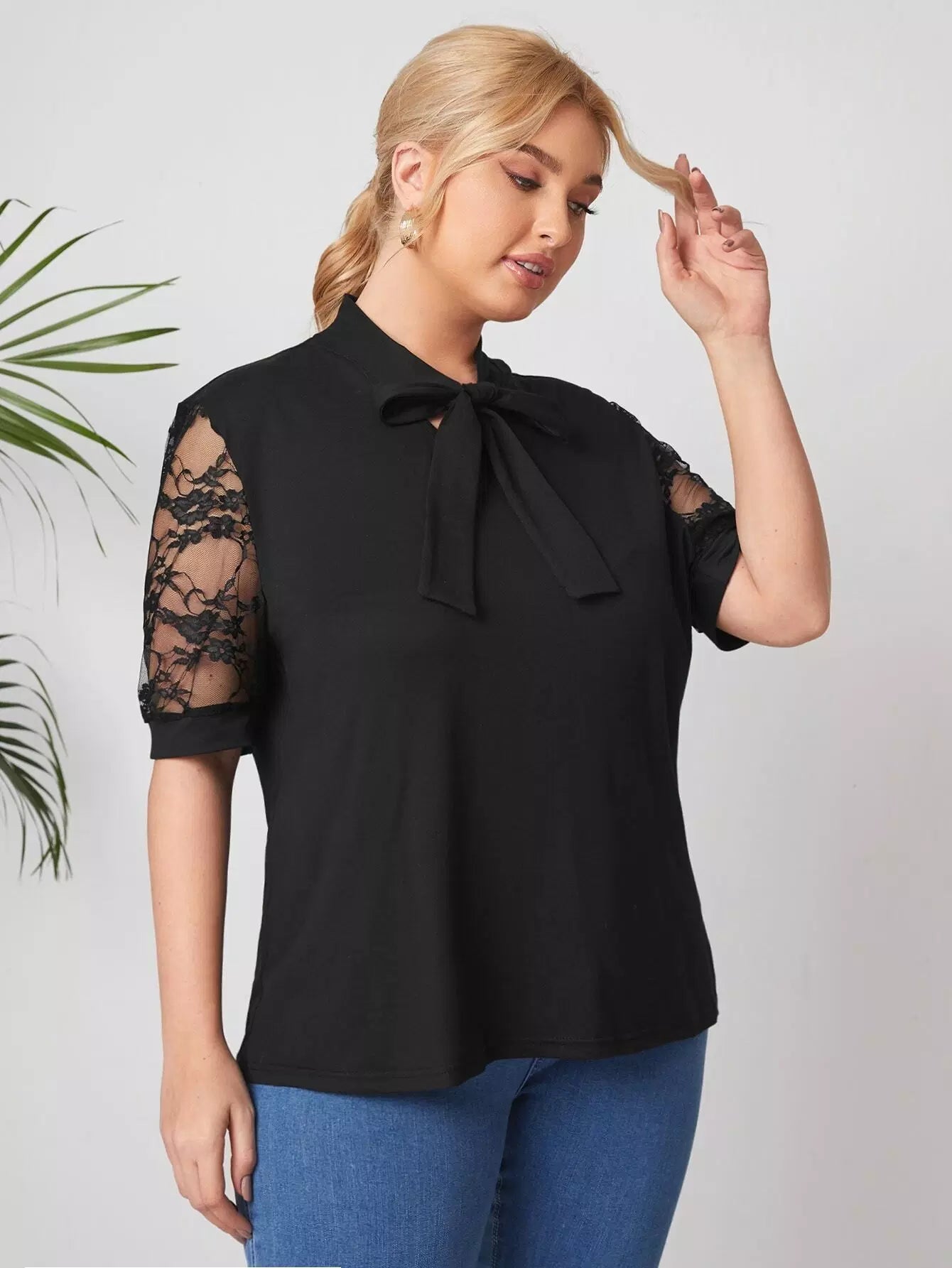 تي شيرت برقبة من الدانتيل بلون مغاير بلون مغاير