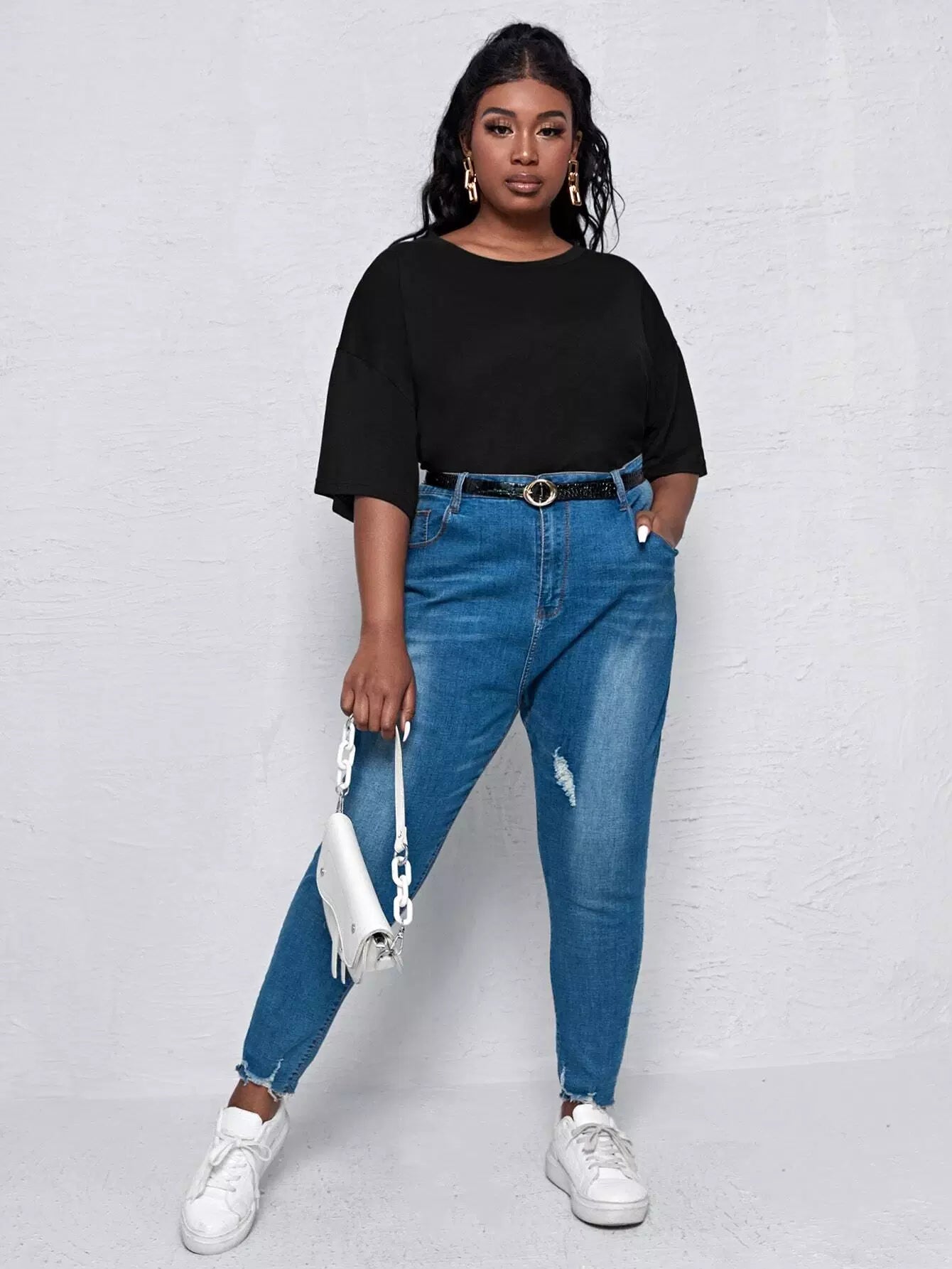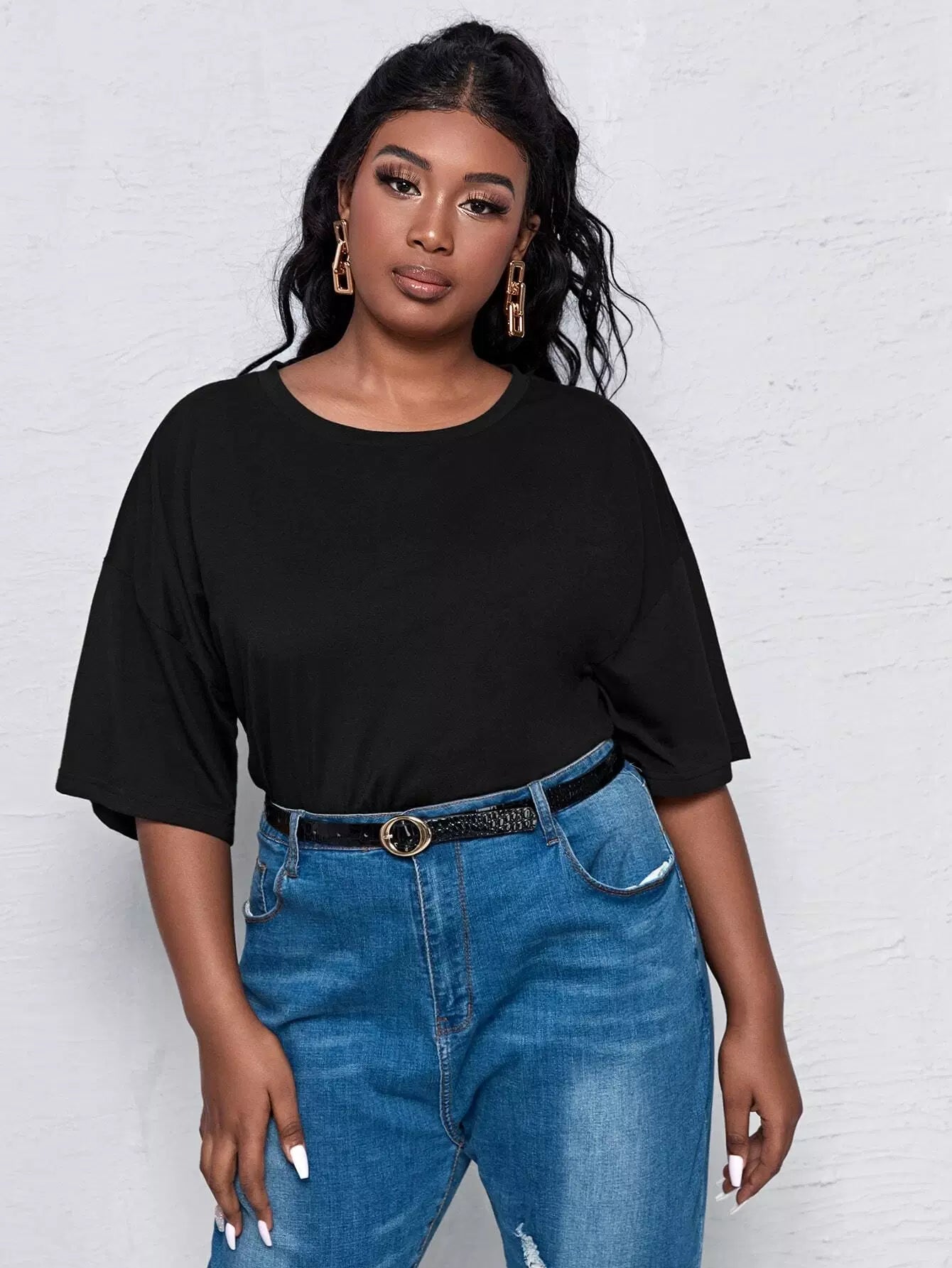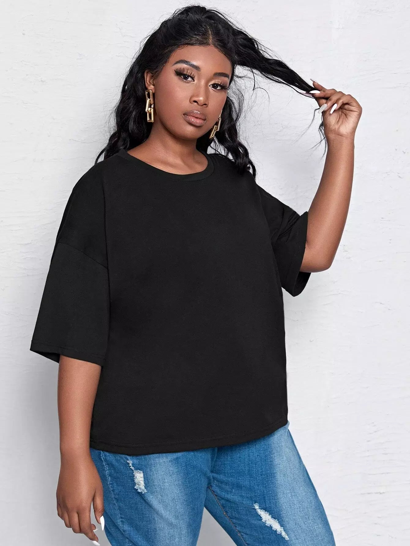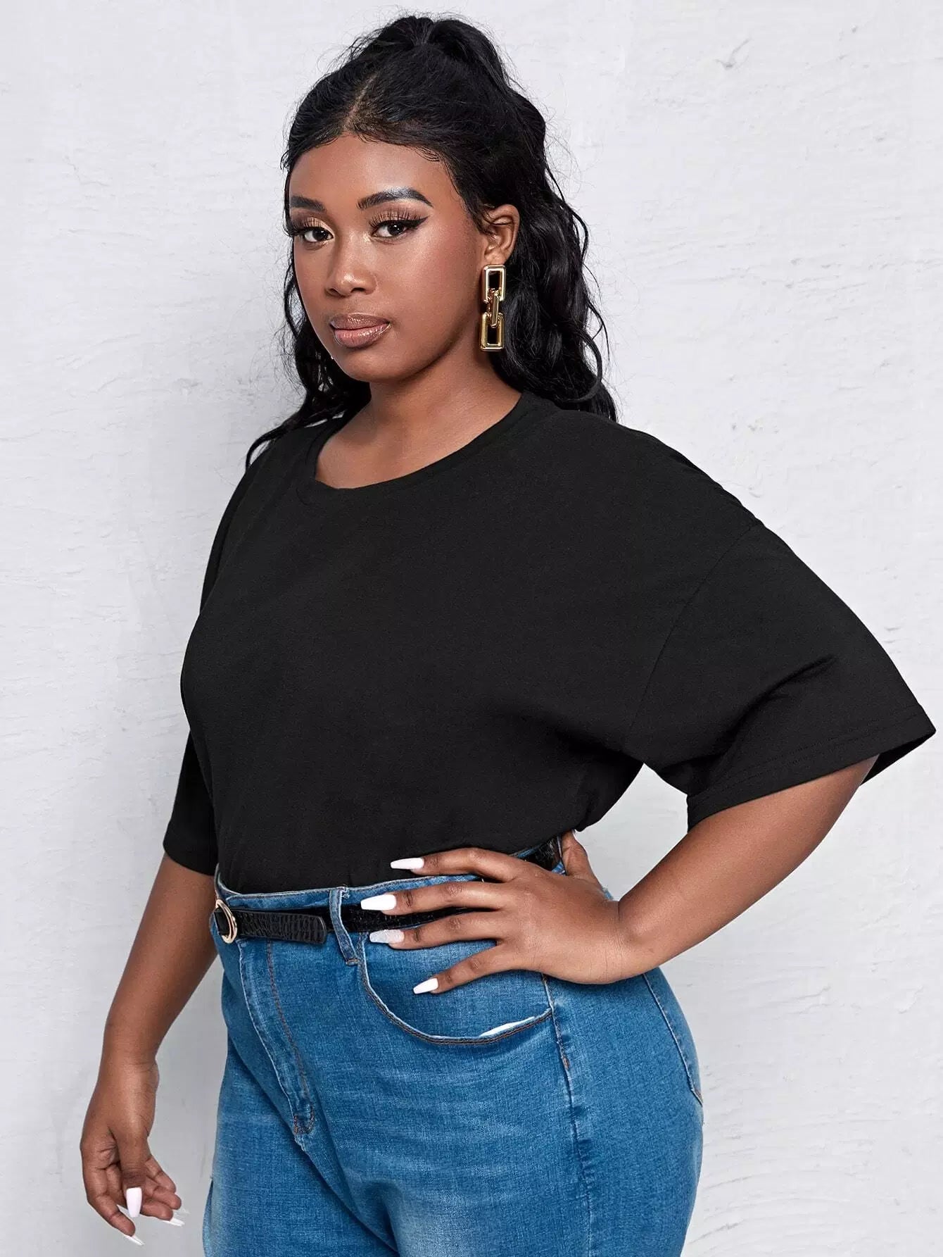 تي شيرت بأكتاف منسدلة بترتر بلون مغاير بلون مغاير