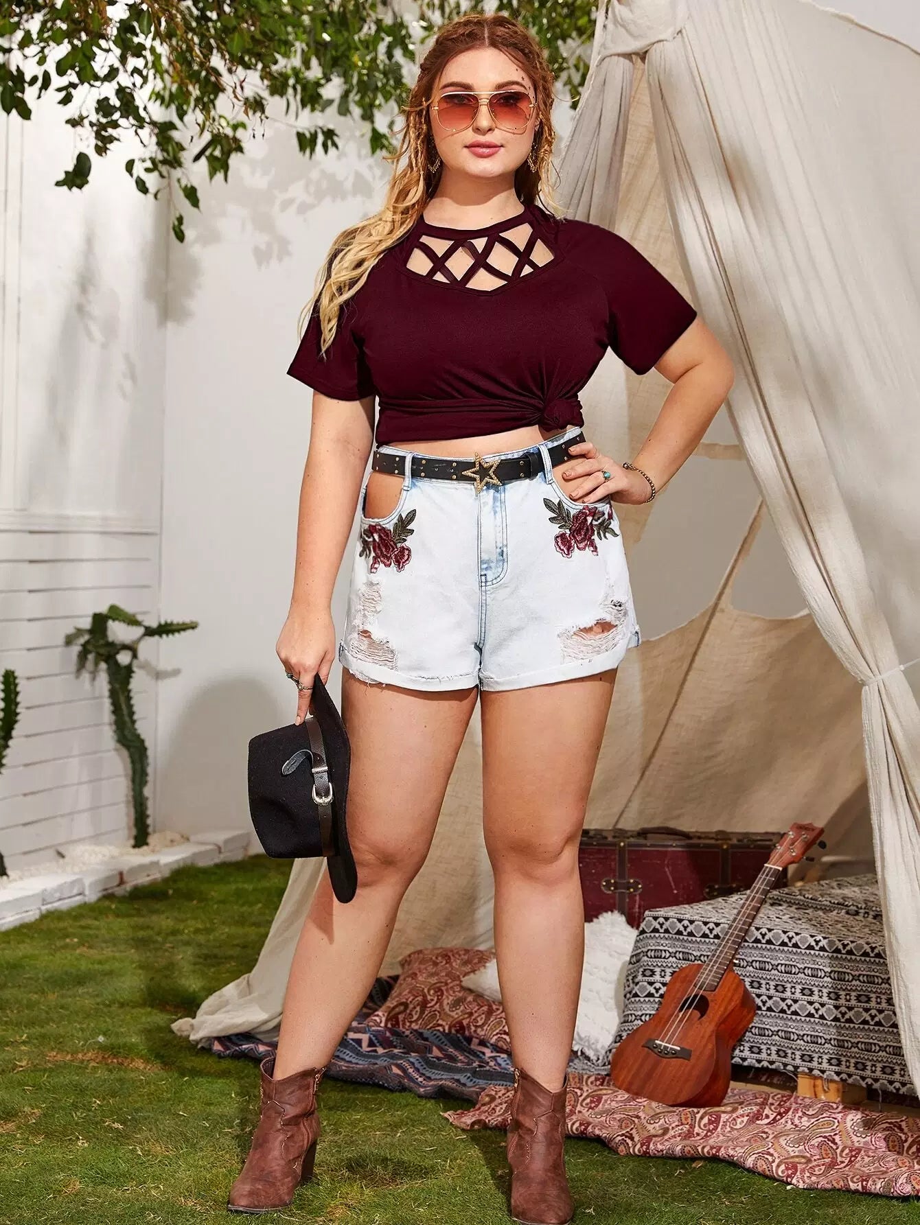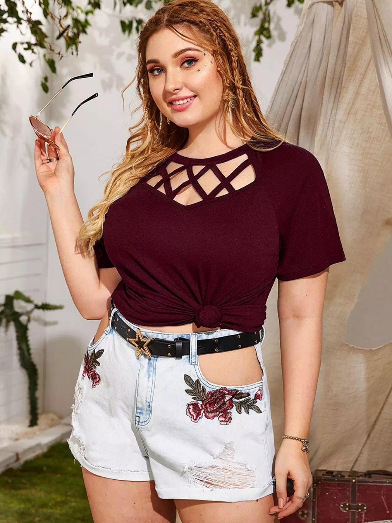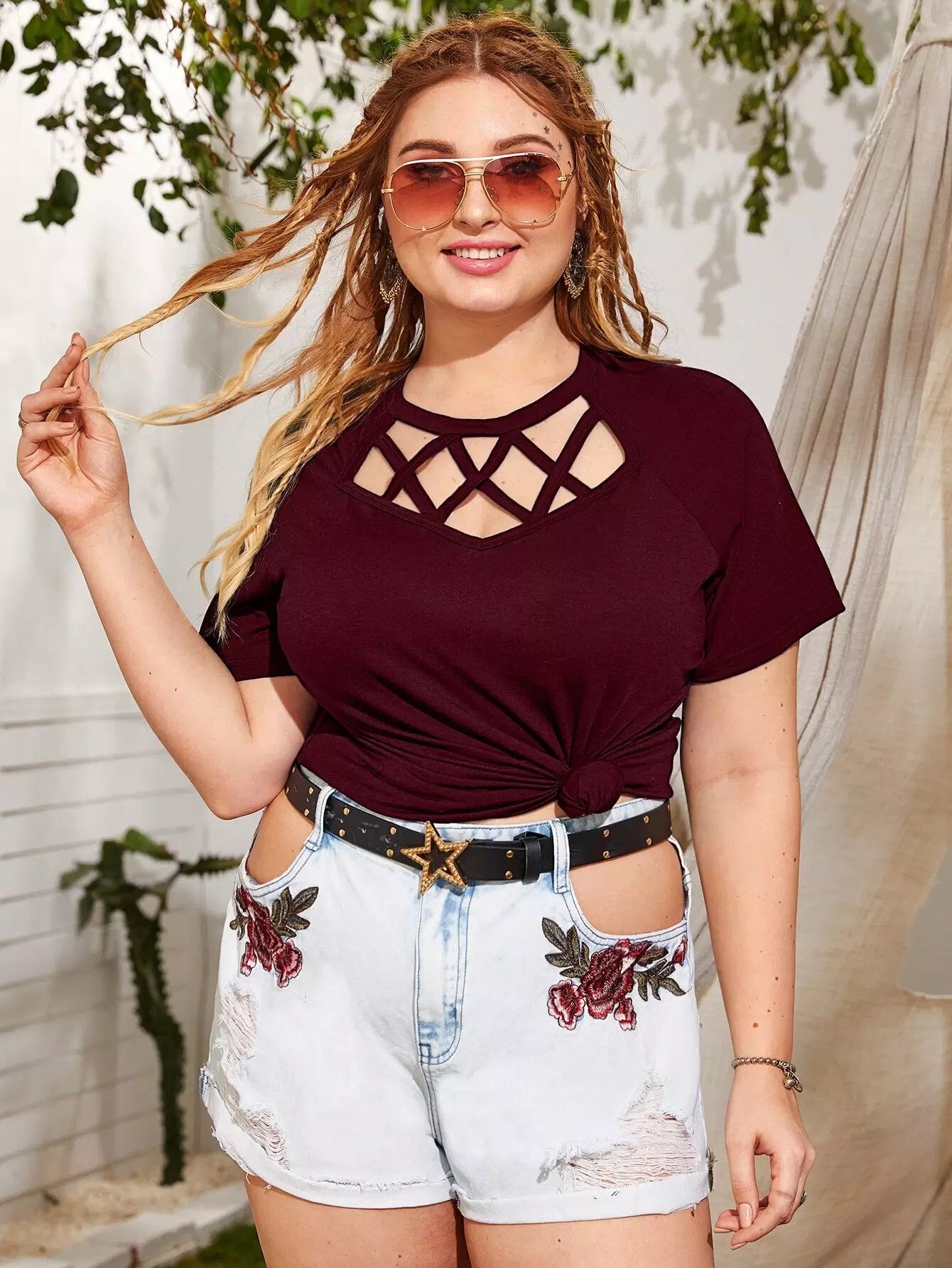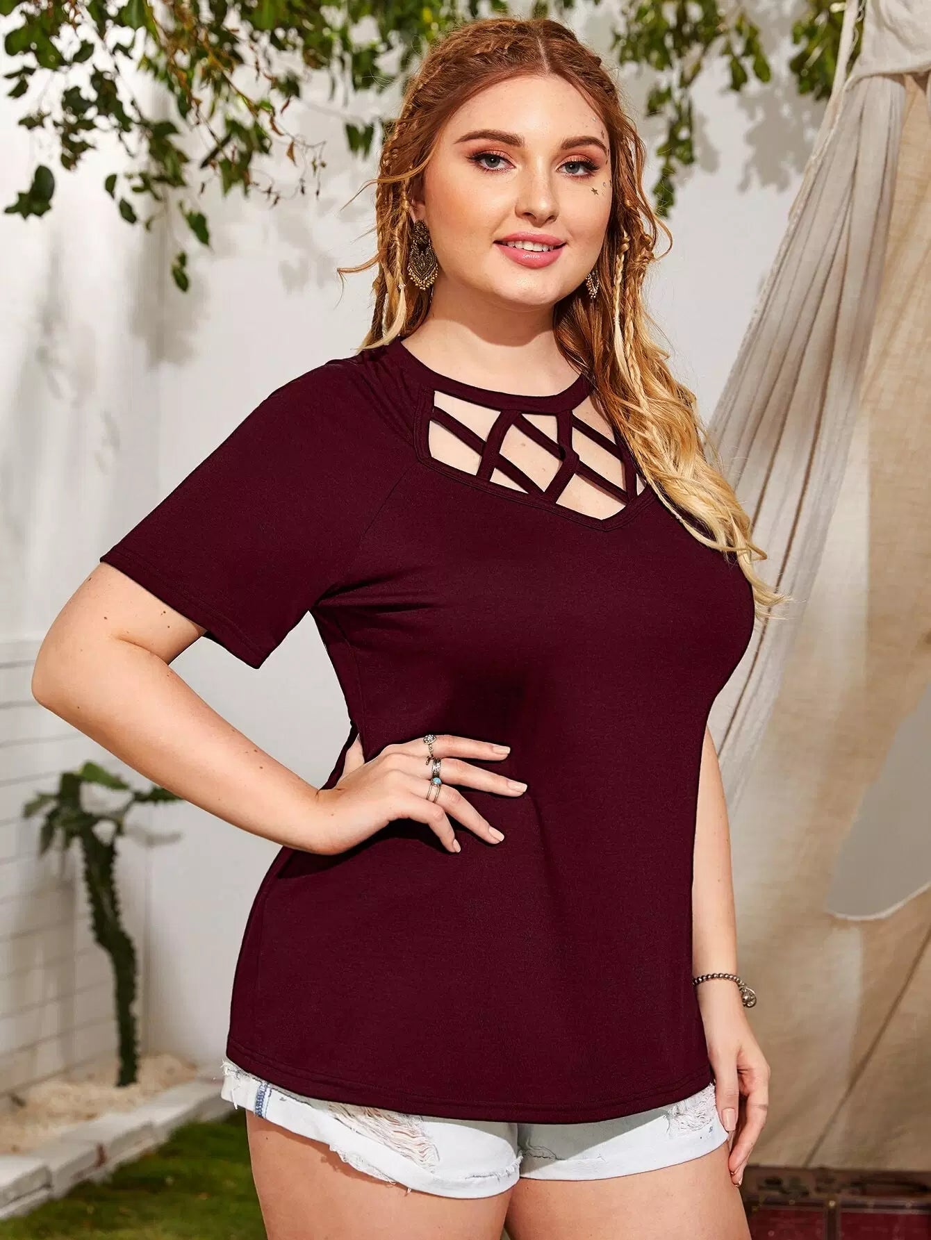 نحيف - مقاس كبير تي شيرت بأكمام راجلان متقاطعة