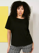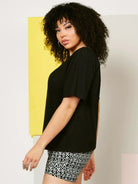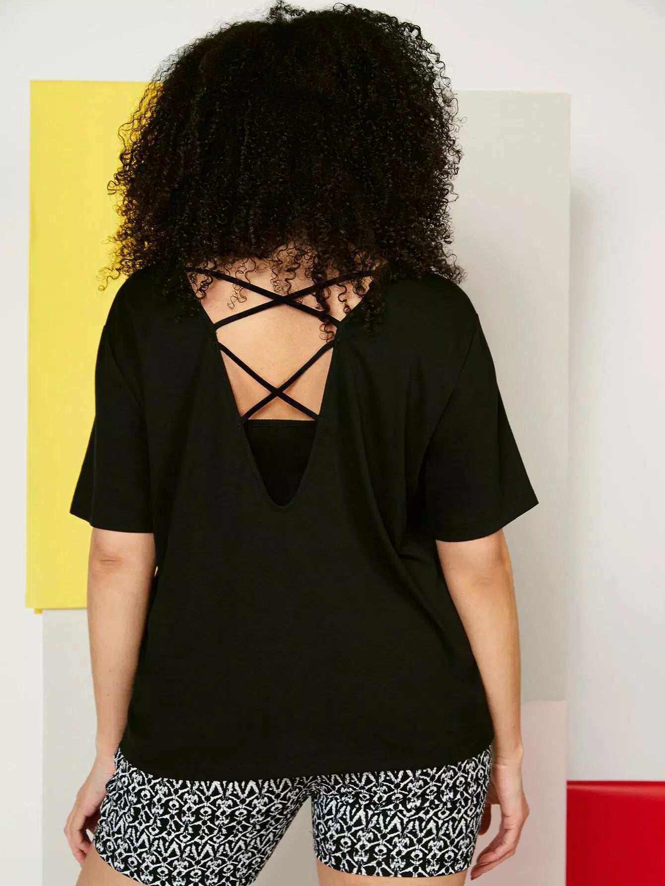 تي شيرت سادة على شكل حرف V متقاطع على شكل حرف V من الخلف
