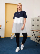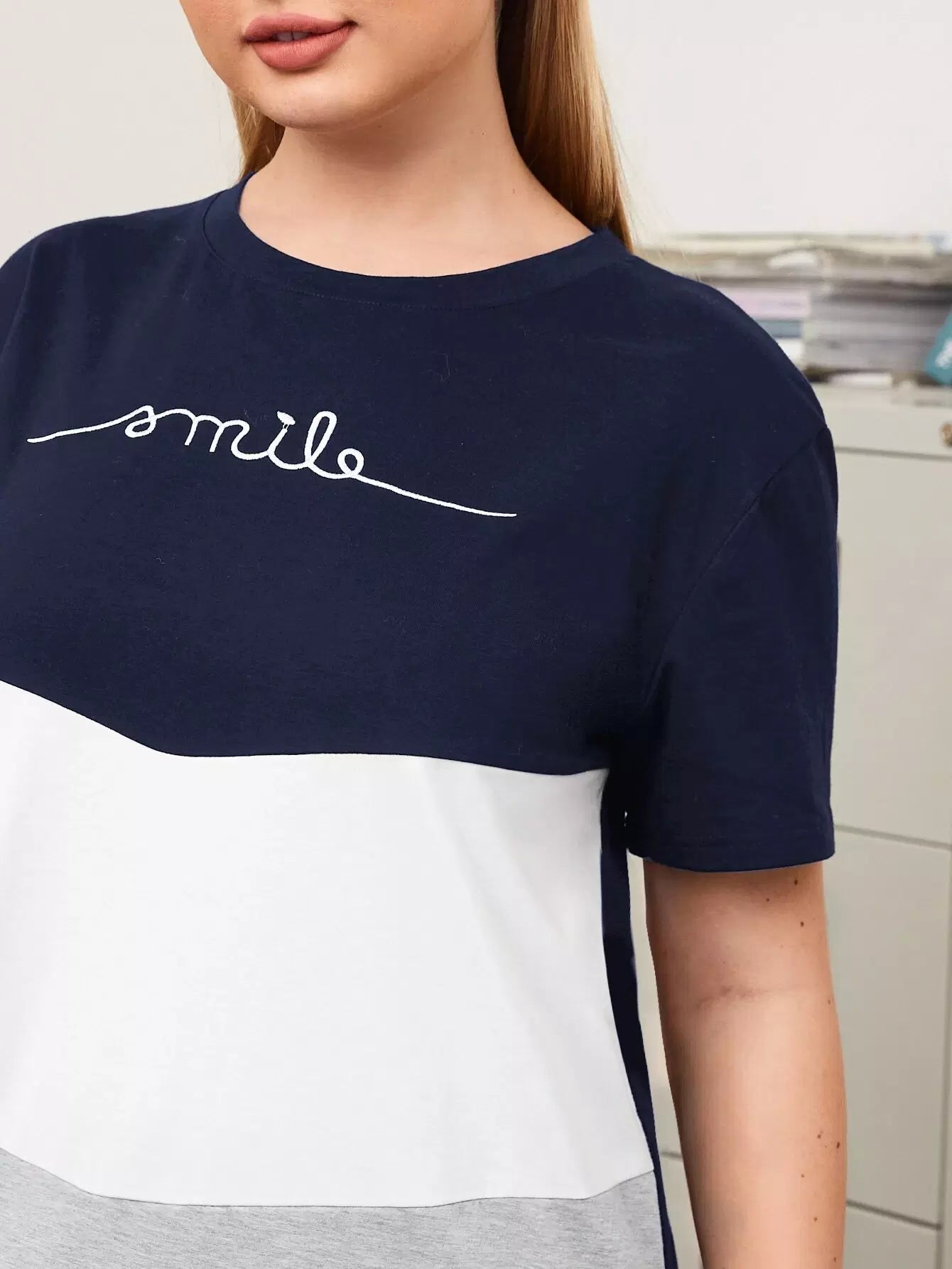 تي شيرت طويل قصير برسومات حروف زائد قص وخياطة برسومات زائد