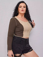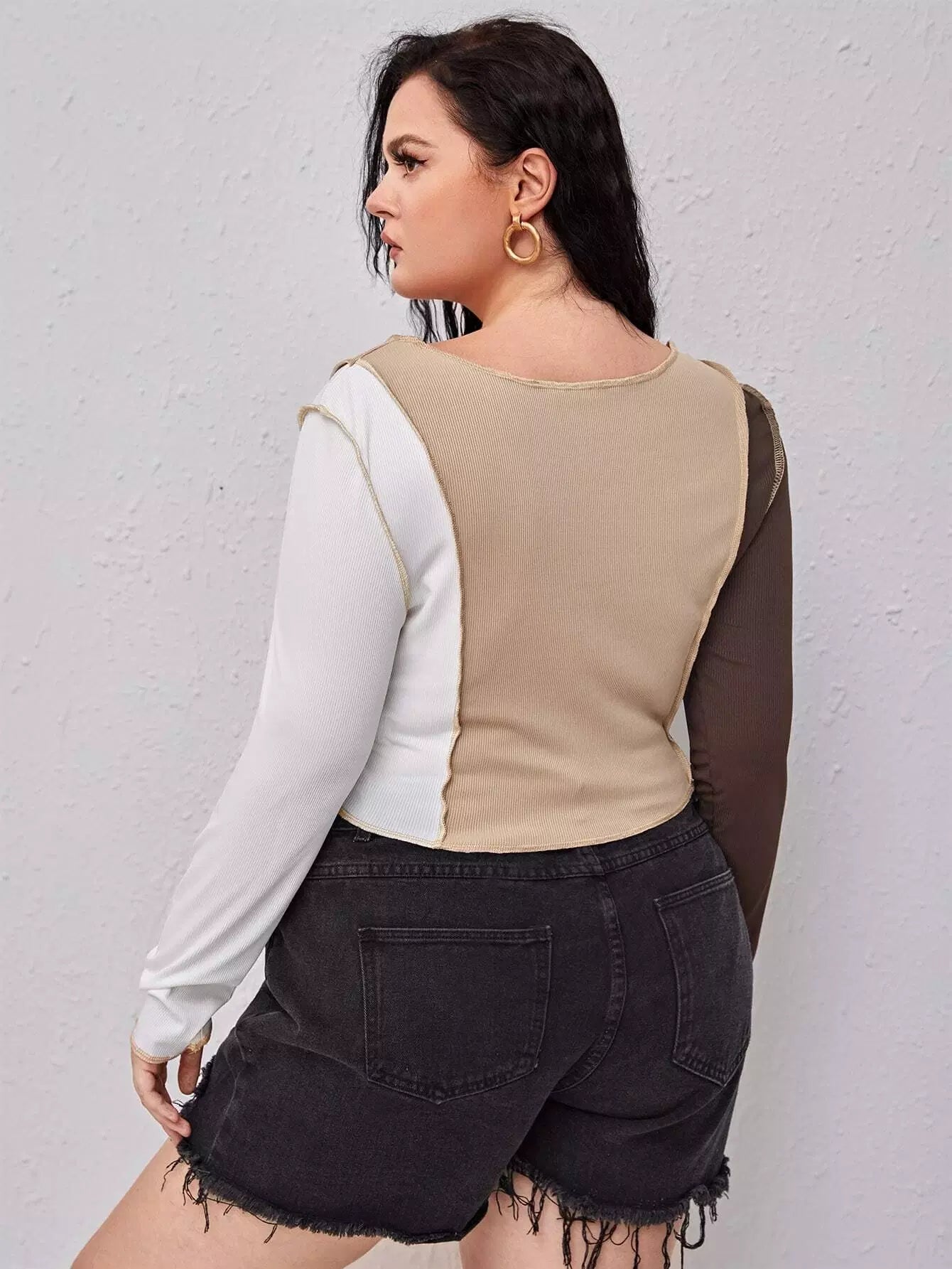 تي شيرت قصير قصير بقص وخياطة علوية بلس