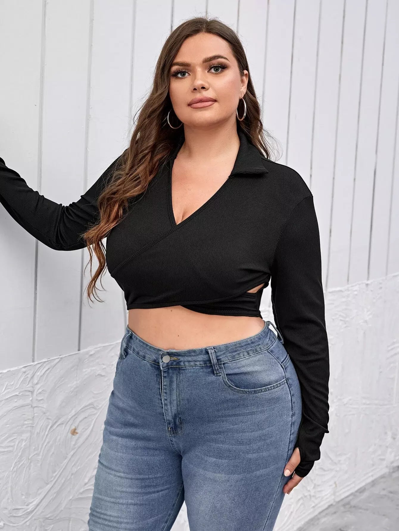 تي شيرت قصير بقصّة قصيرة بفتحات إبهامين