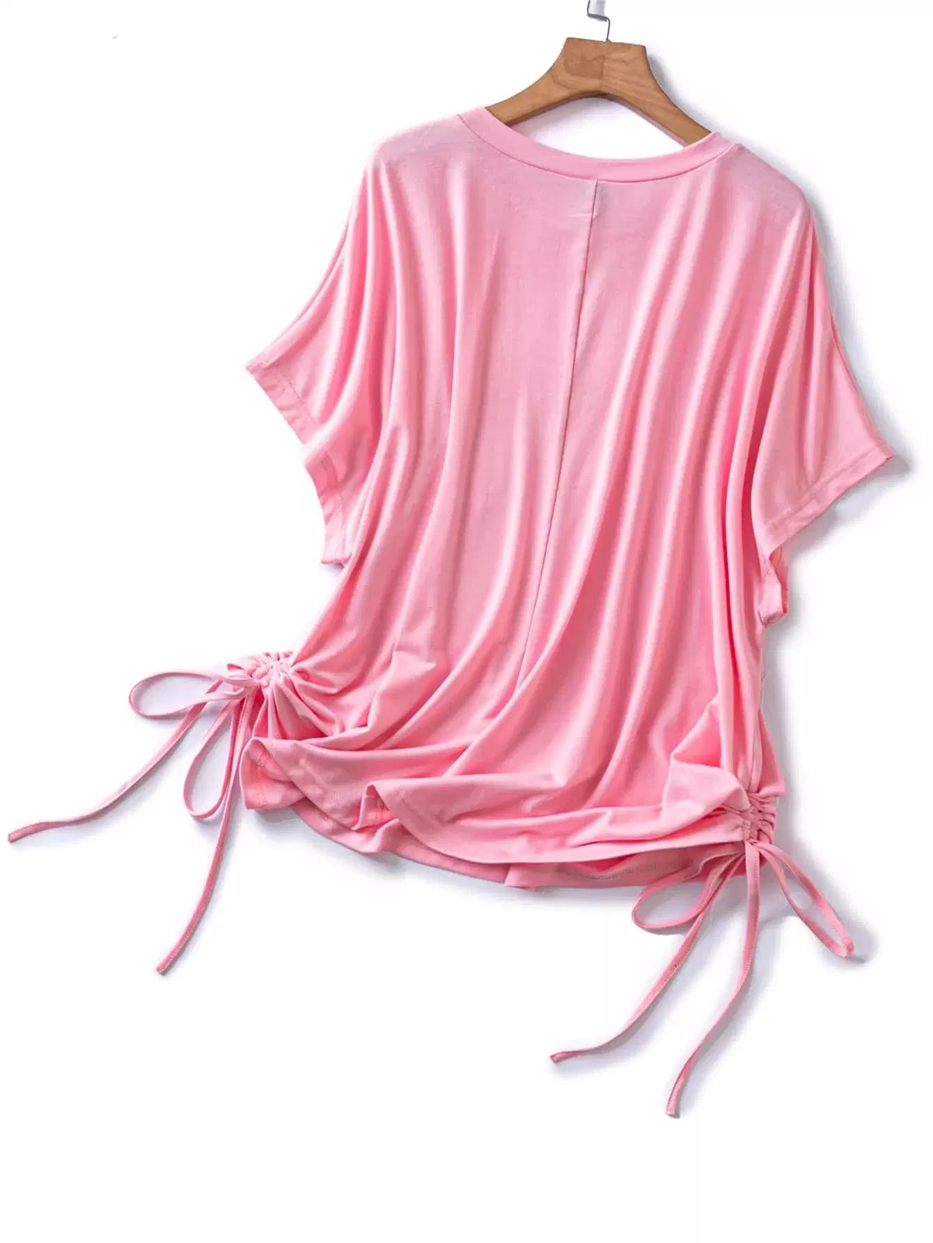 تي شيرت بأربطة جانبية بأكمام رباط بلاس باتوينغ