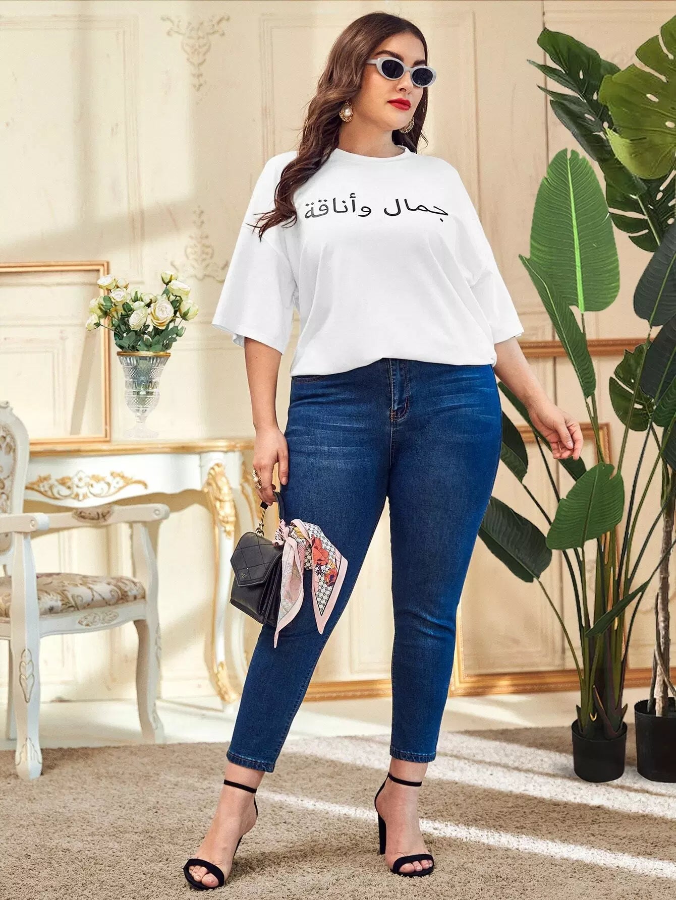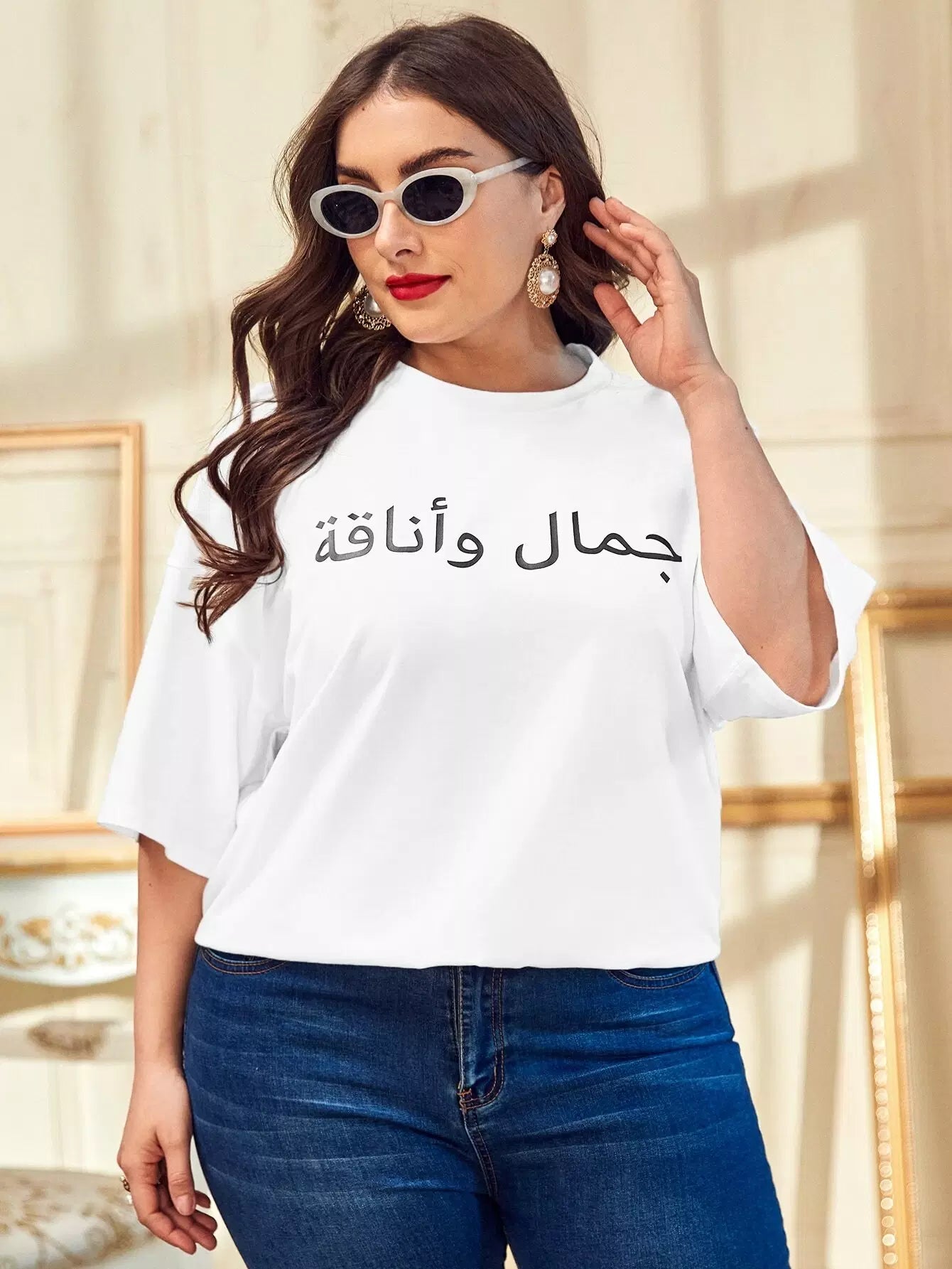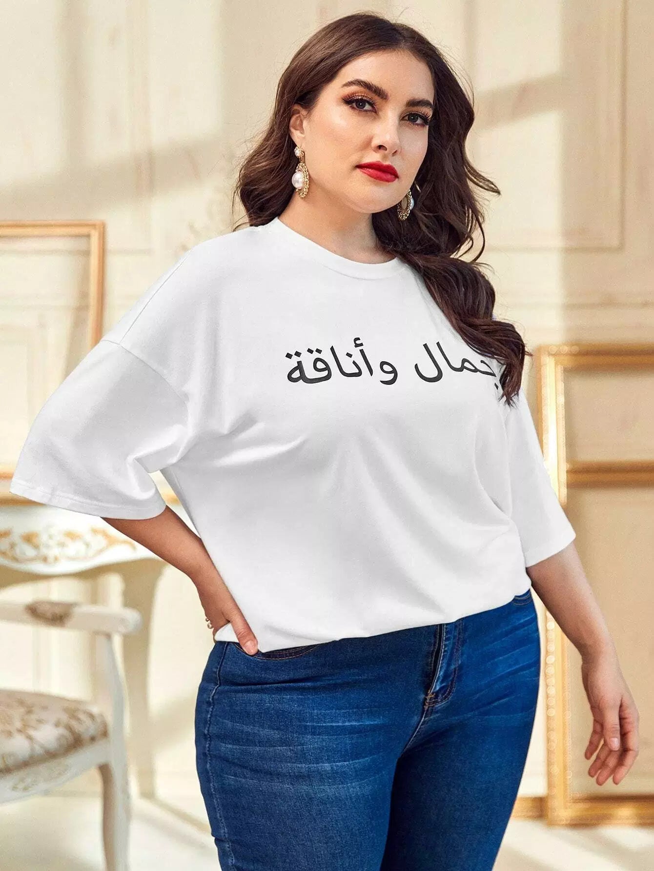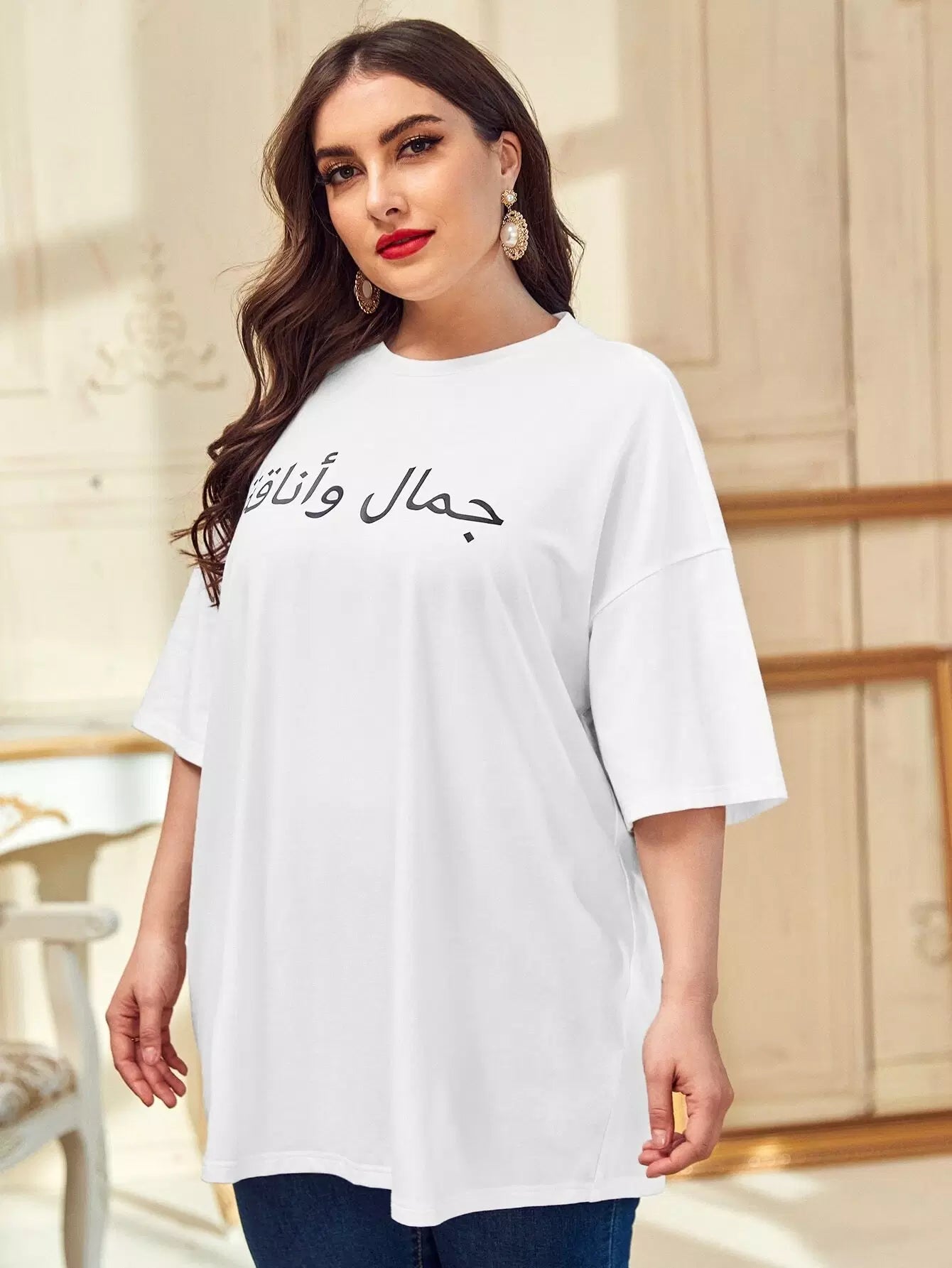 تي شيرت بتصميم منسدل الأكتاف برسومات على شكل حرف زائد