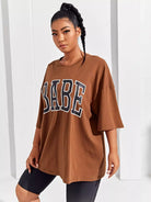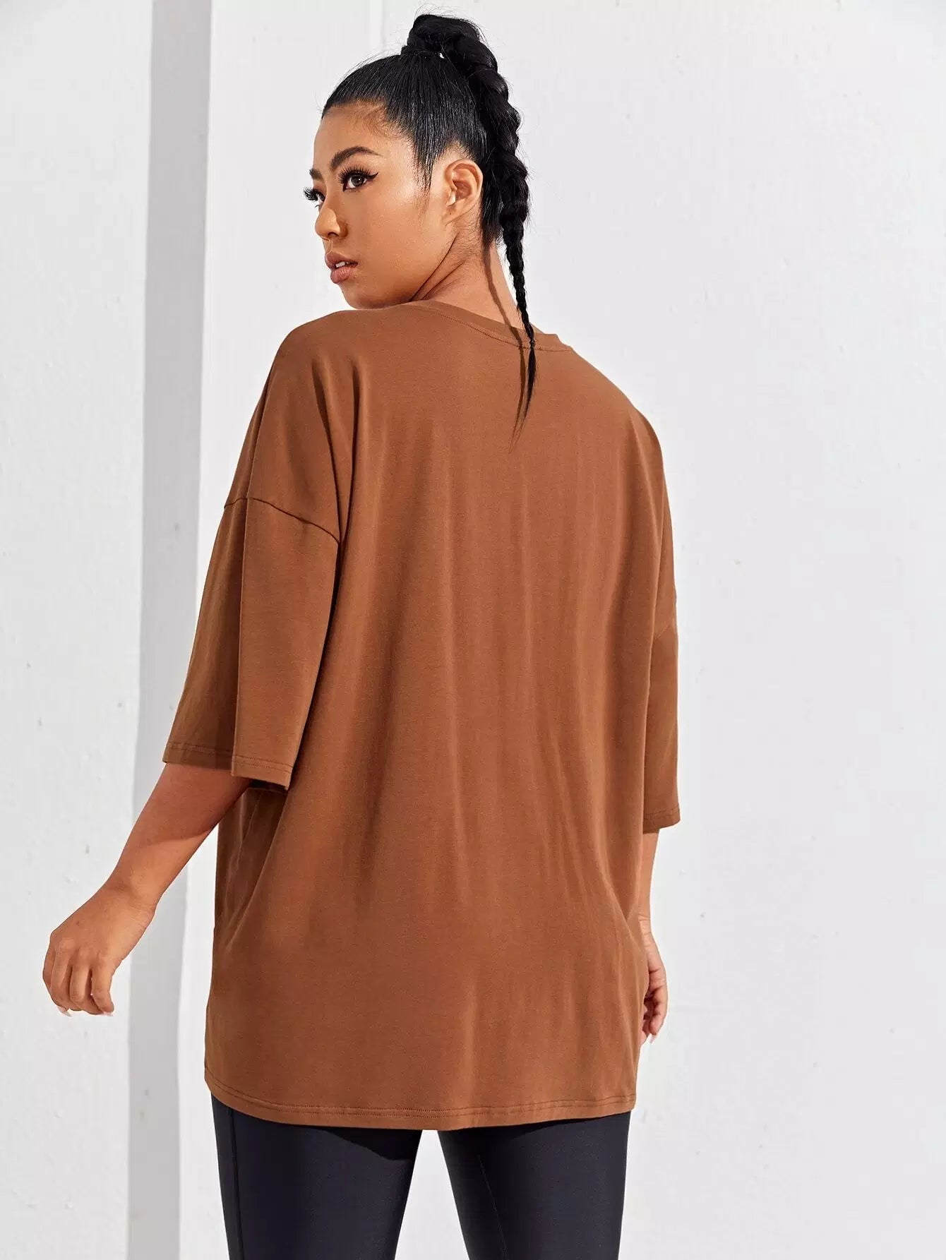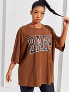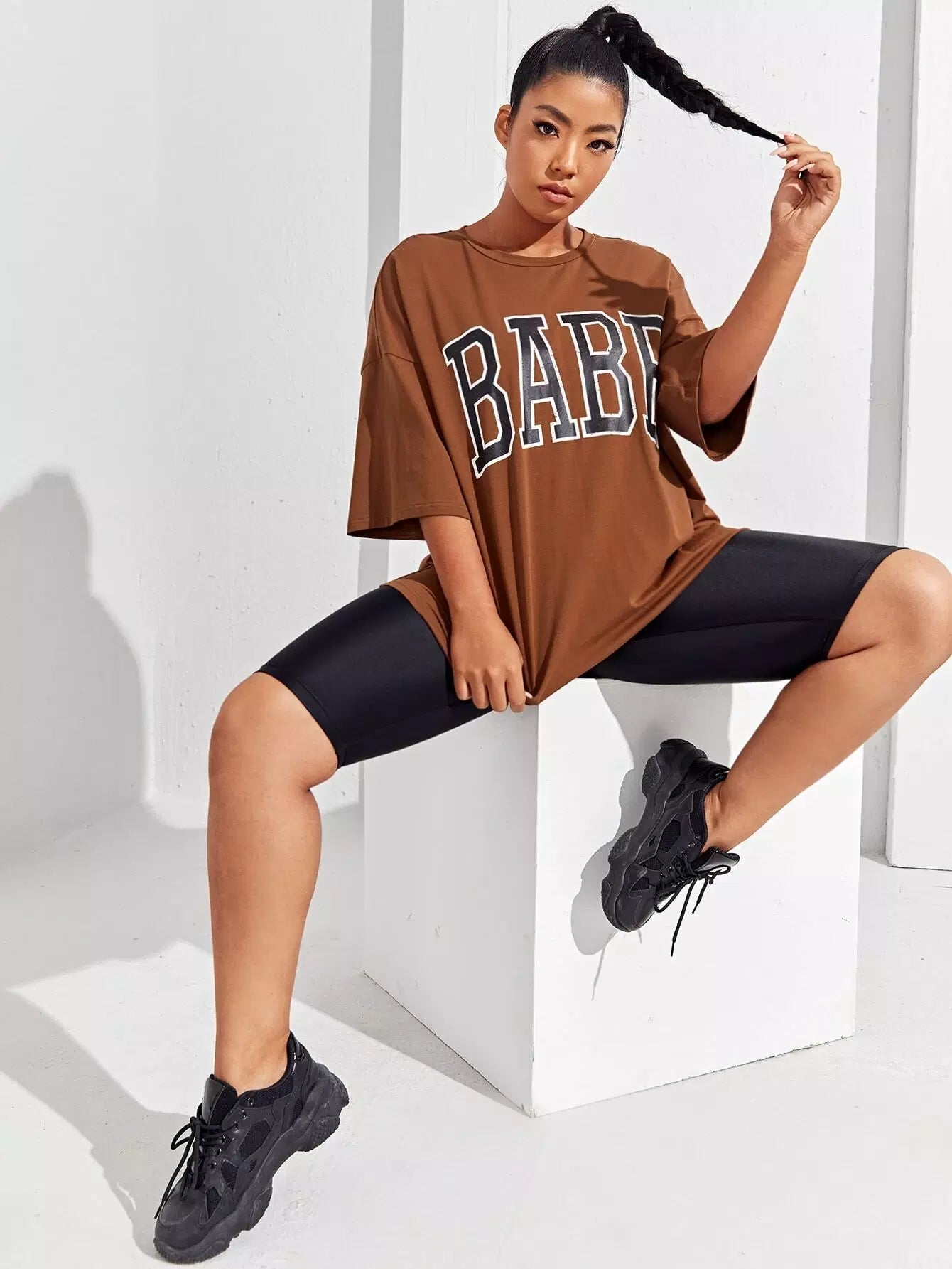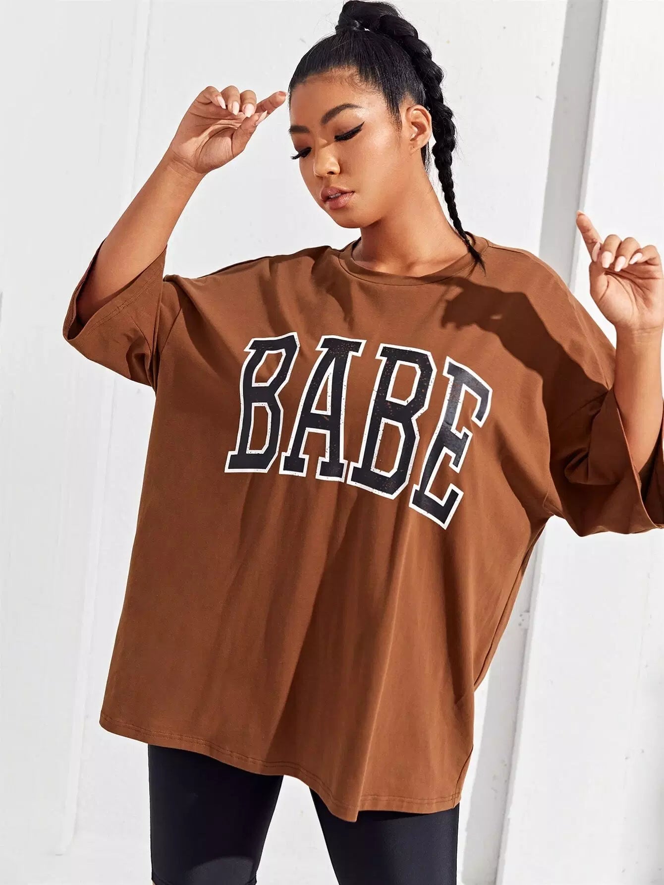 نحيف - مقاس كبير تي شيرت جرافيك بكتف منسدل