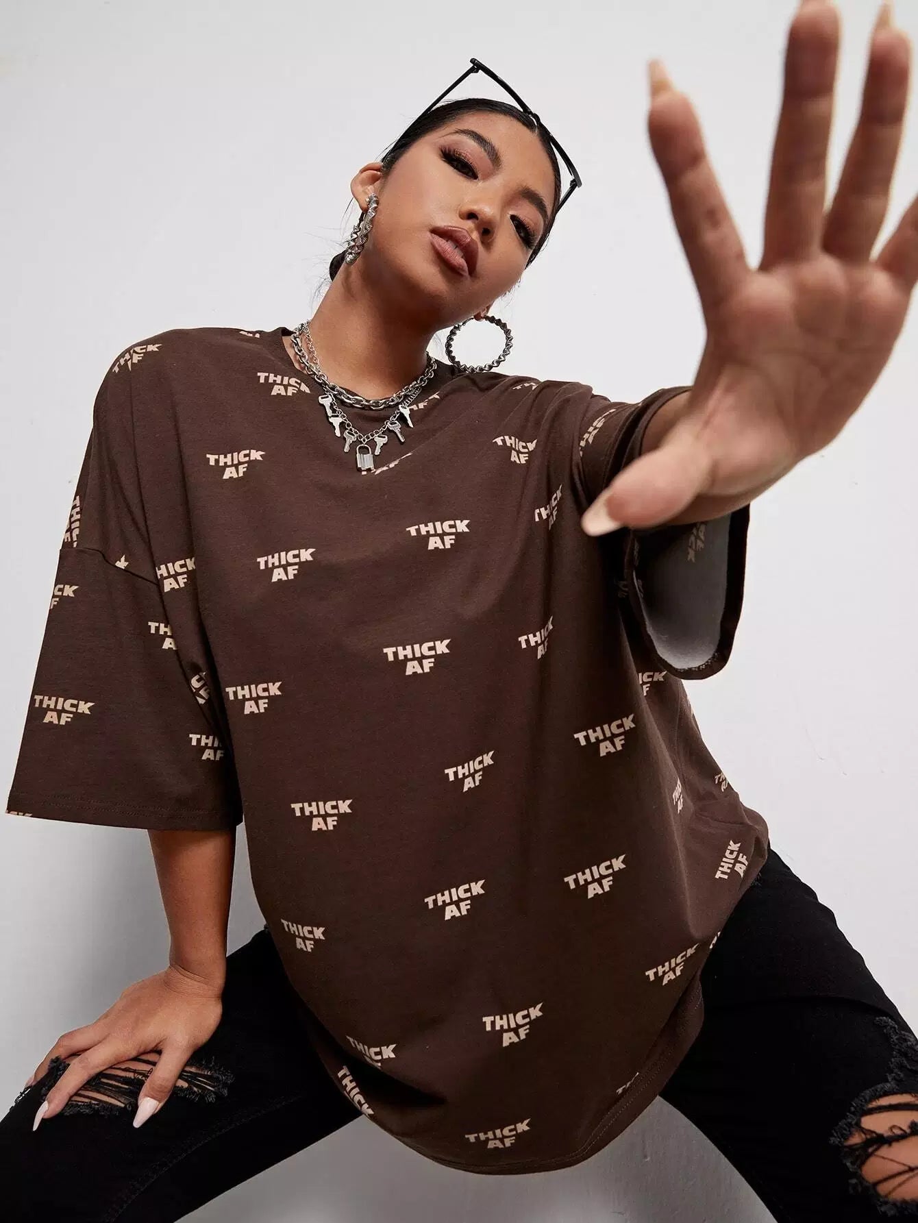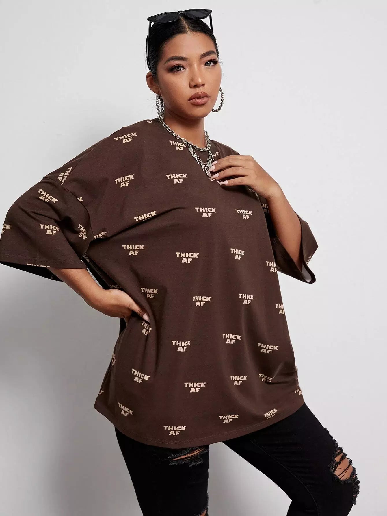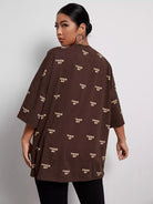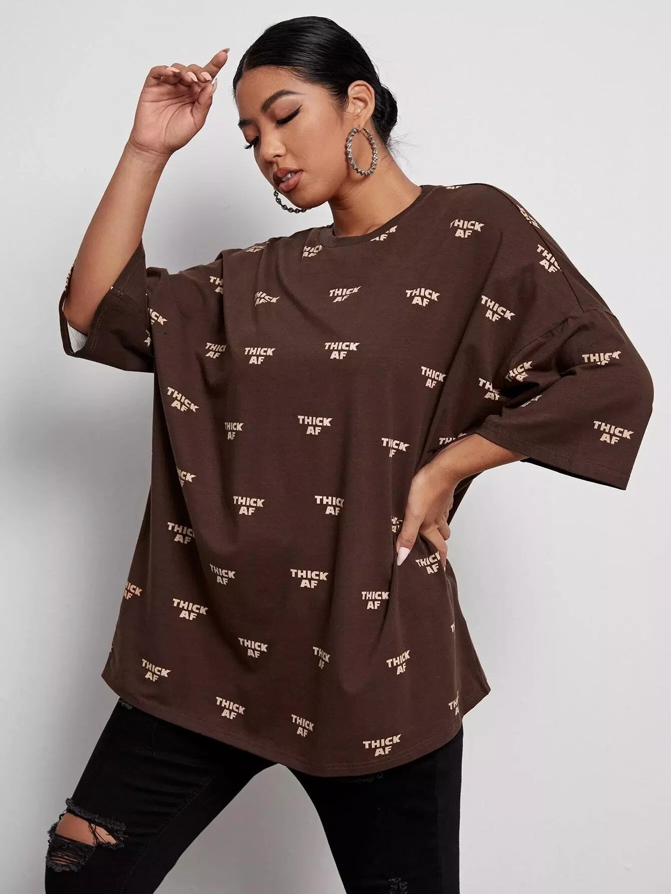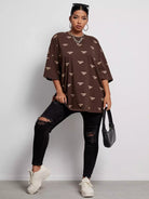 تي شيرت بتصميم منسدل الأكتاف برسومات على شكل حرف زائد