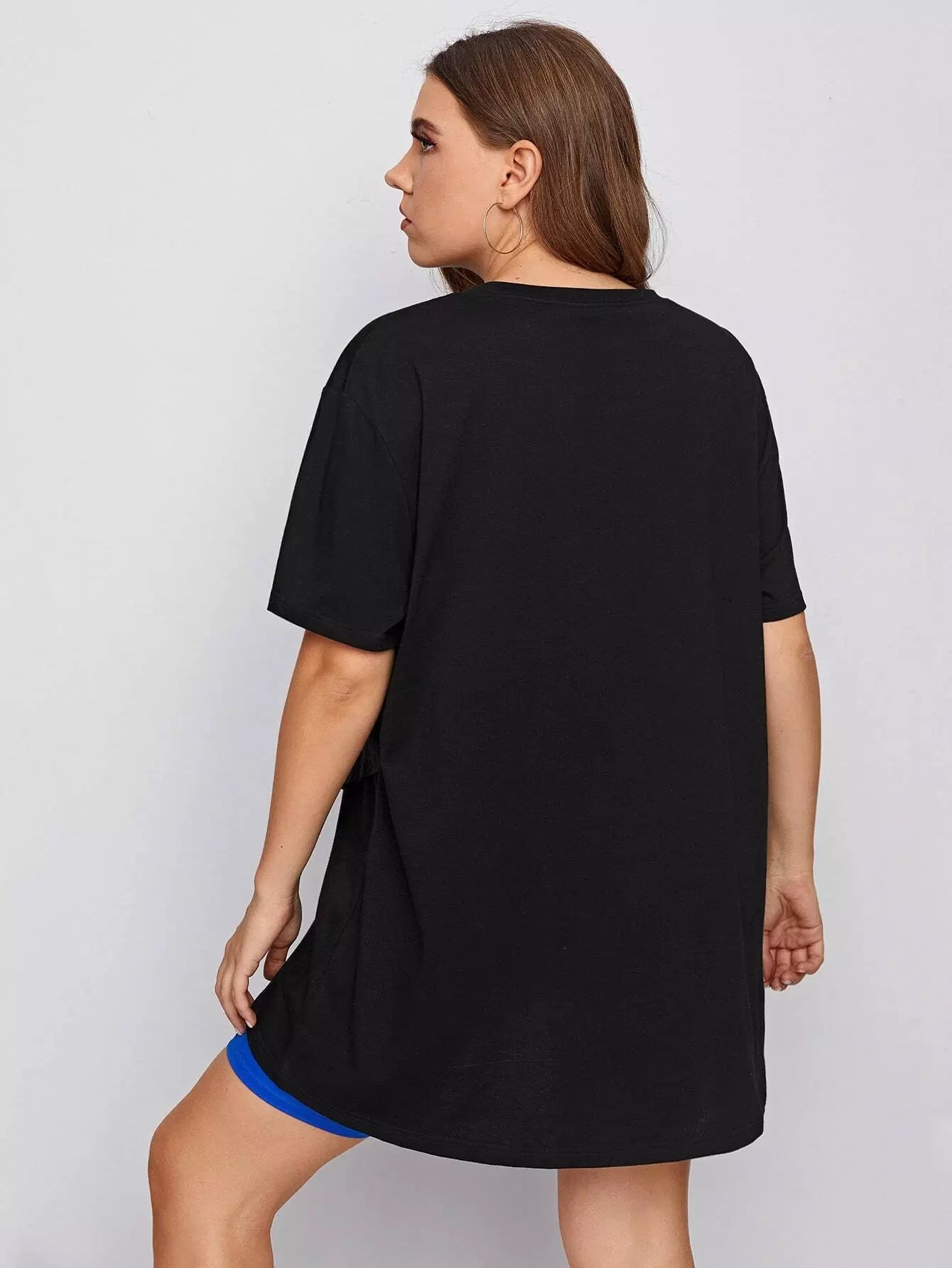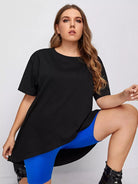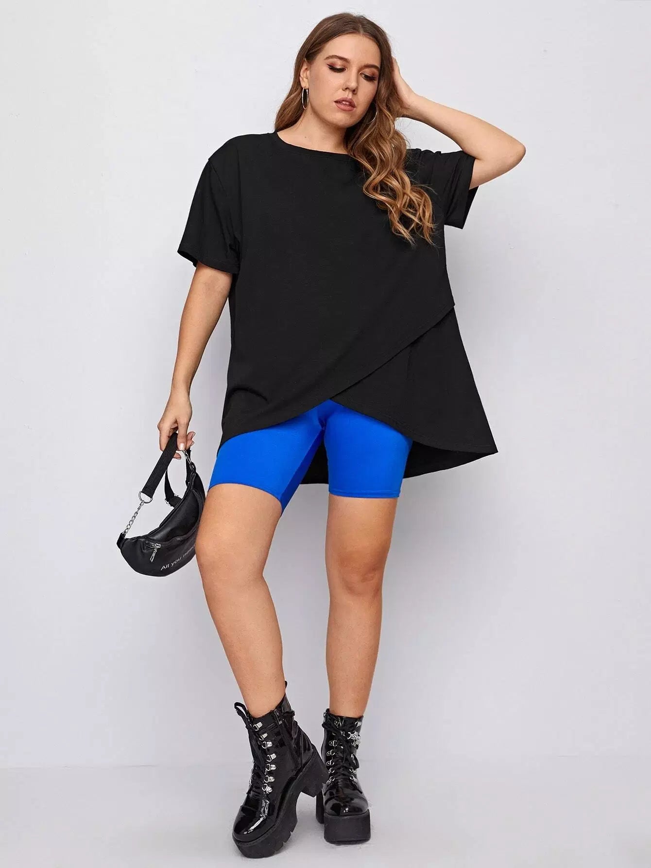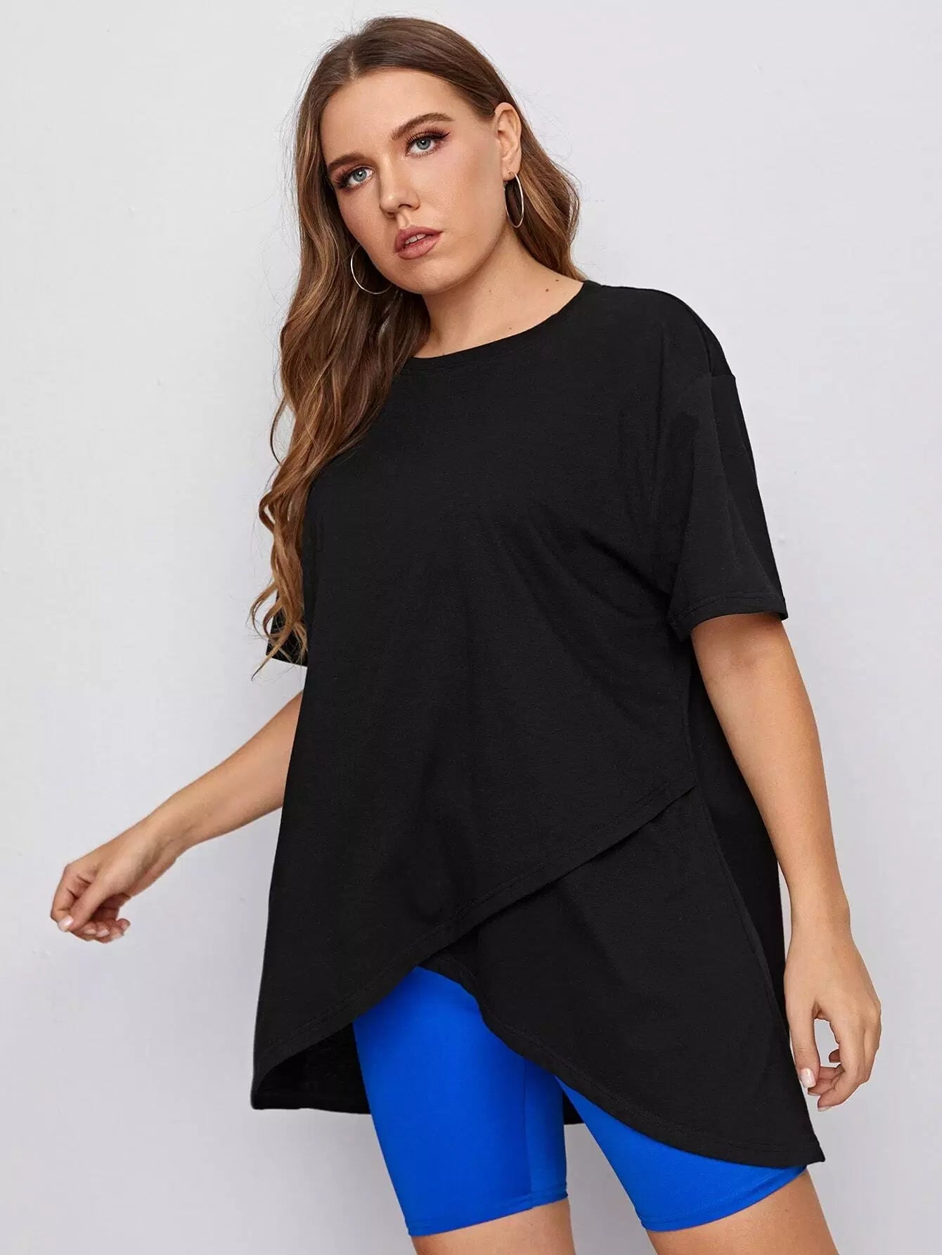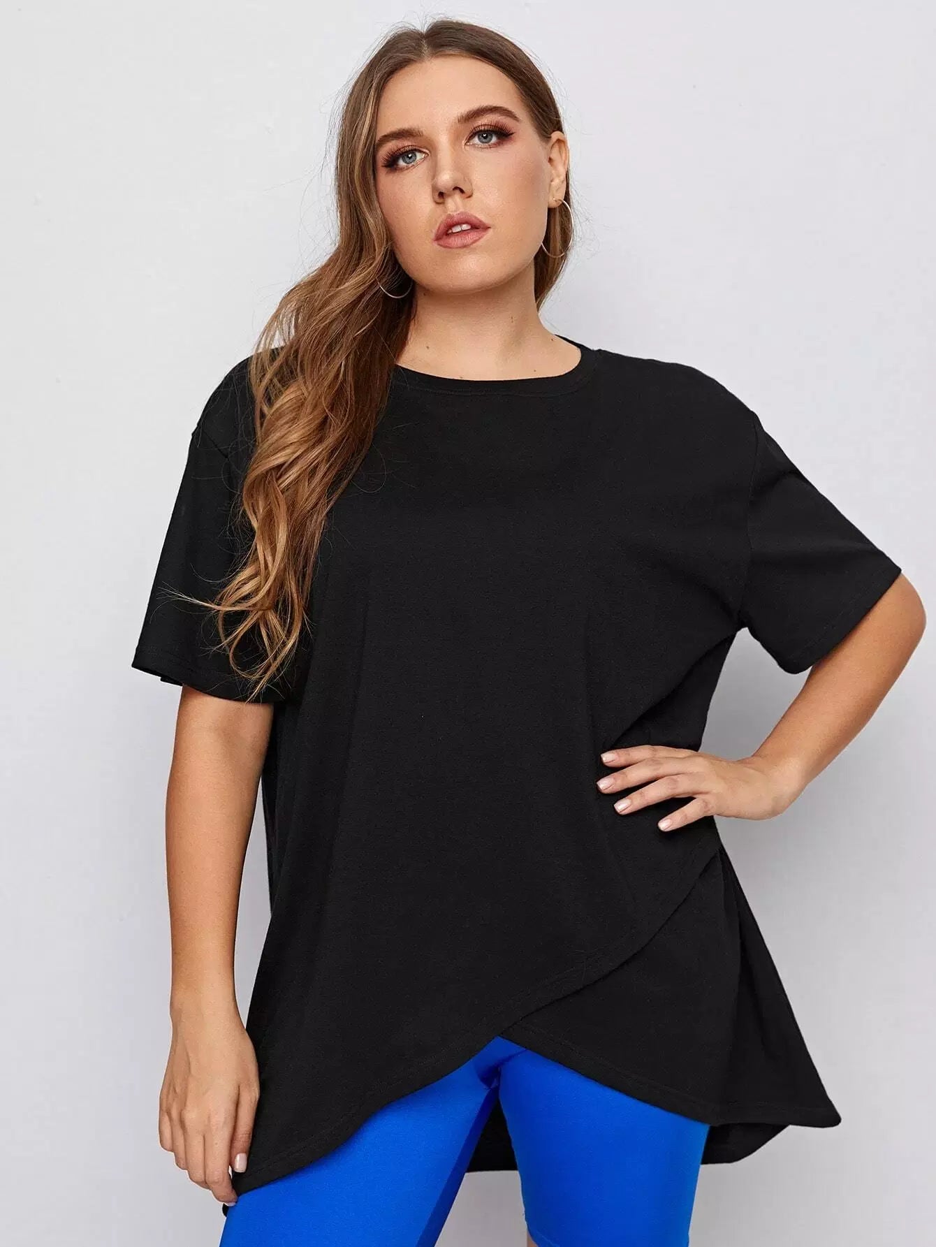 تي شيرت طويل بحافة منسدلة الكتفين بحافة منسدلة منسدلة على شكل توليب