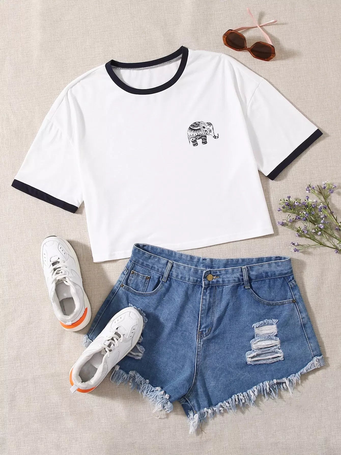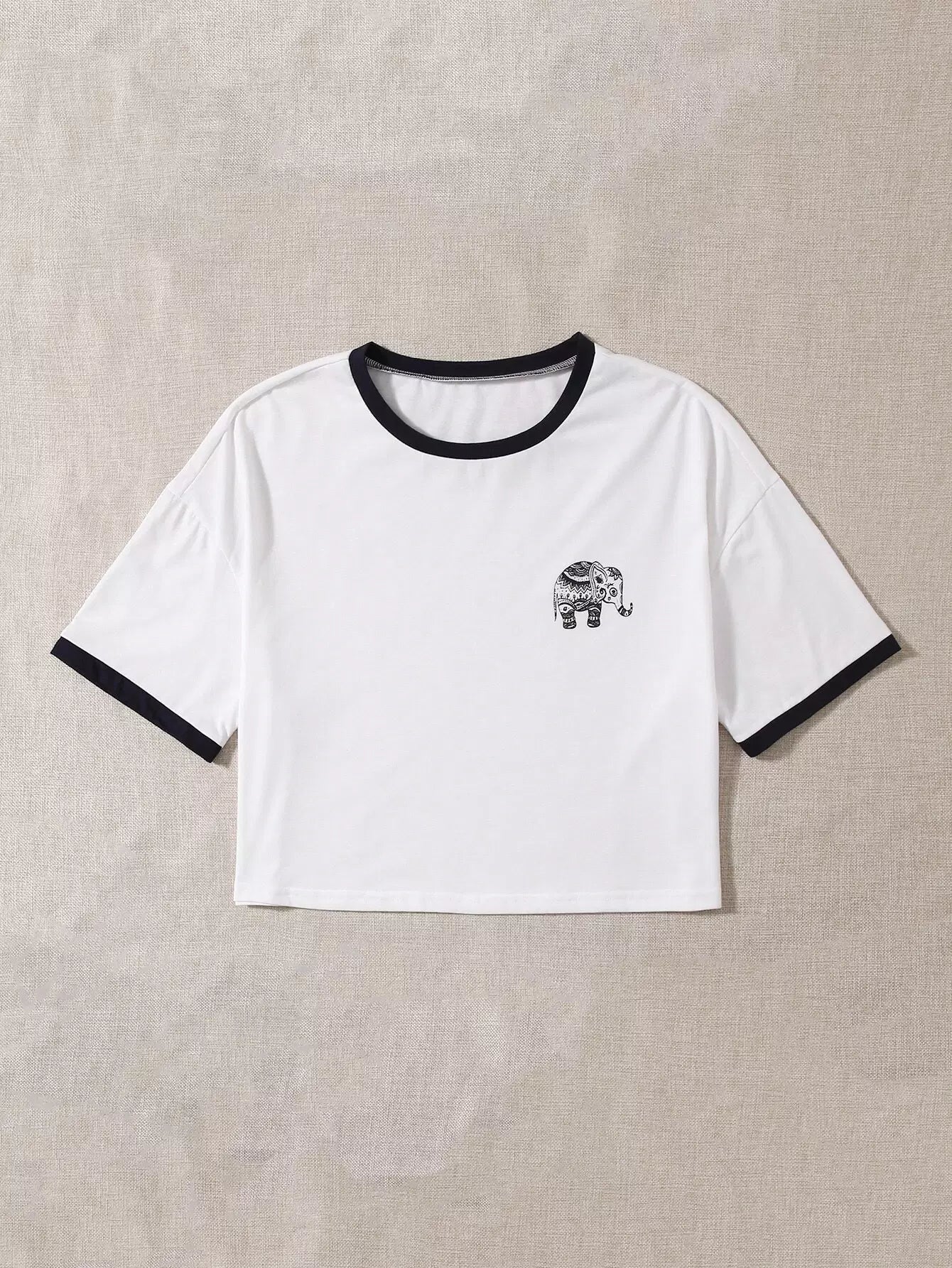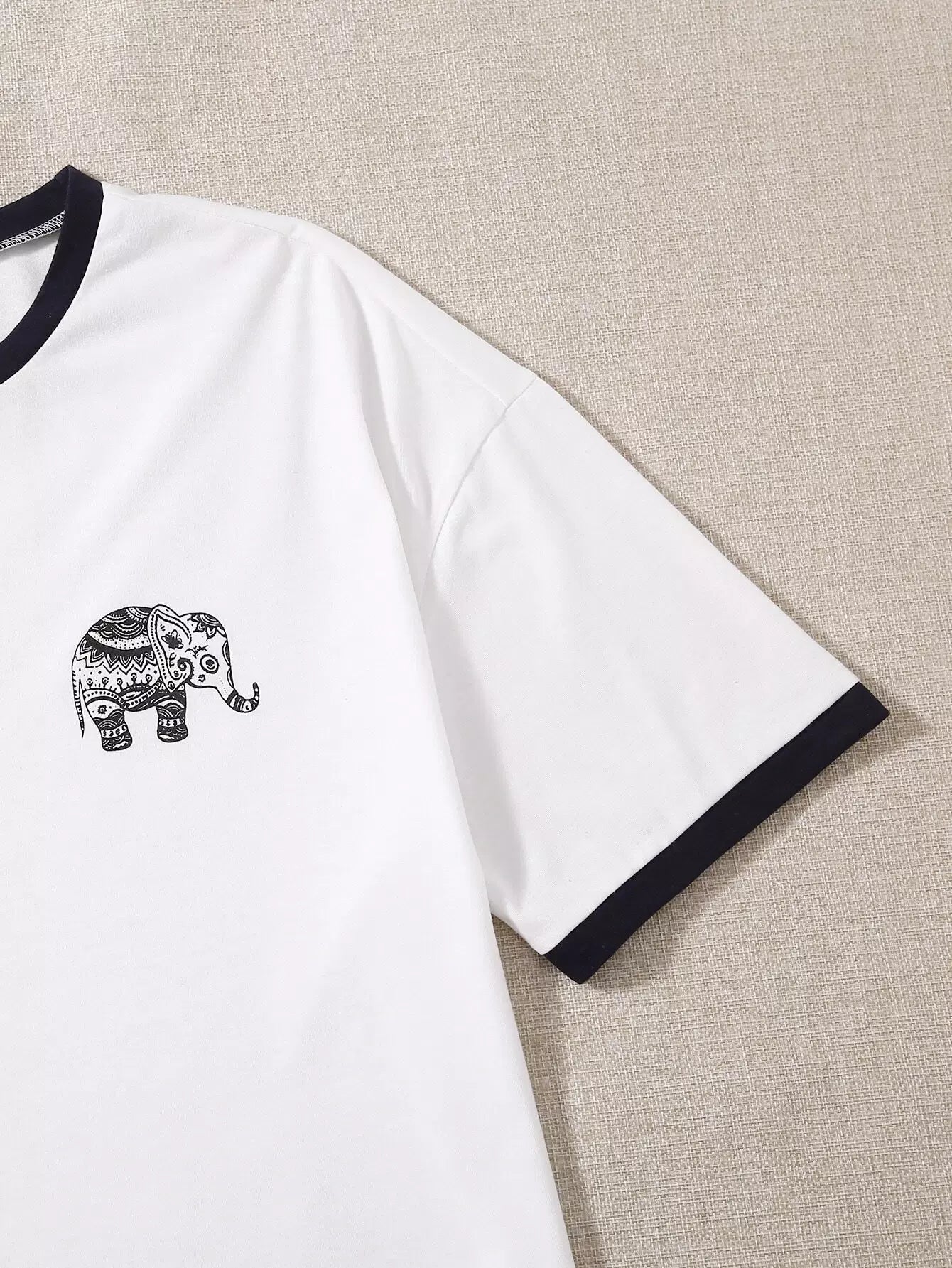 تي شيرت بطبعة فيلة بلس بلون متباين