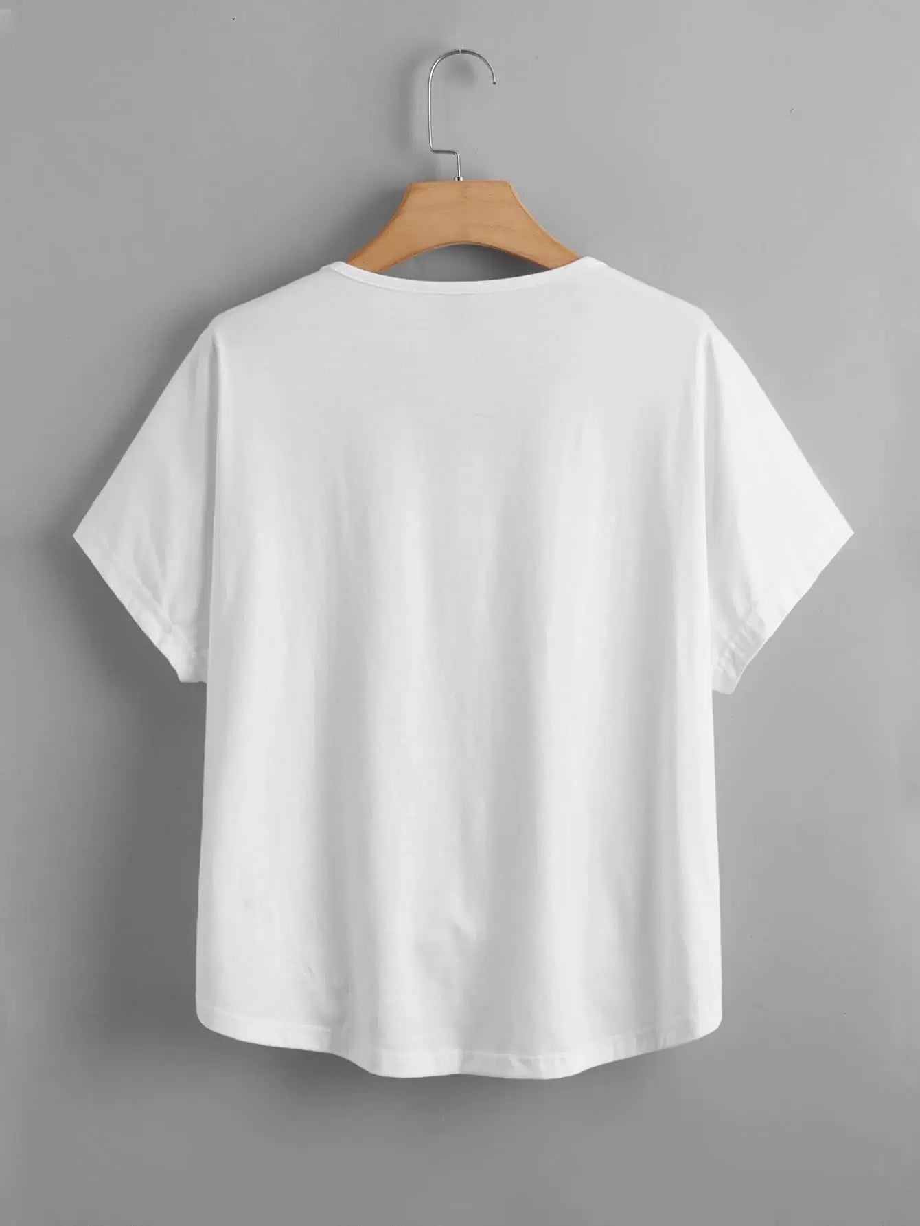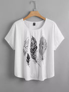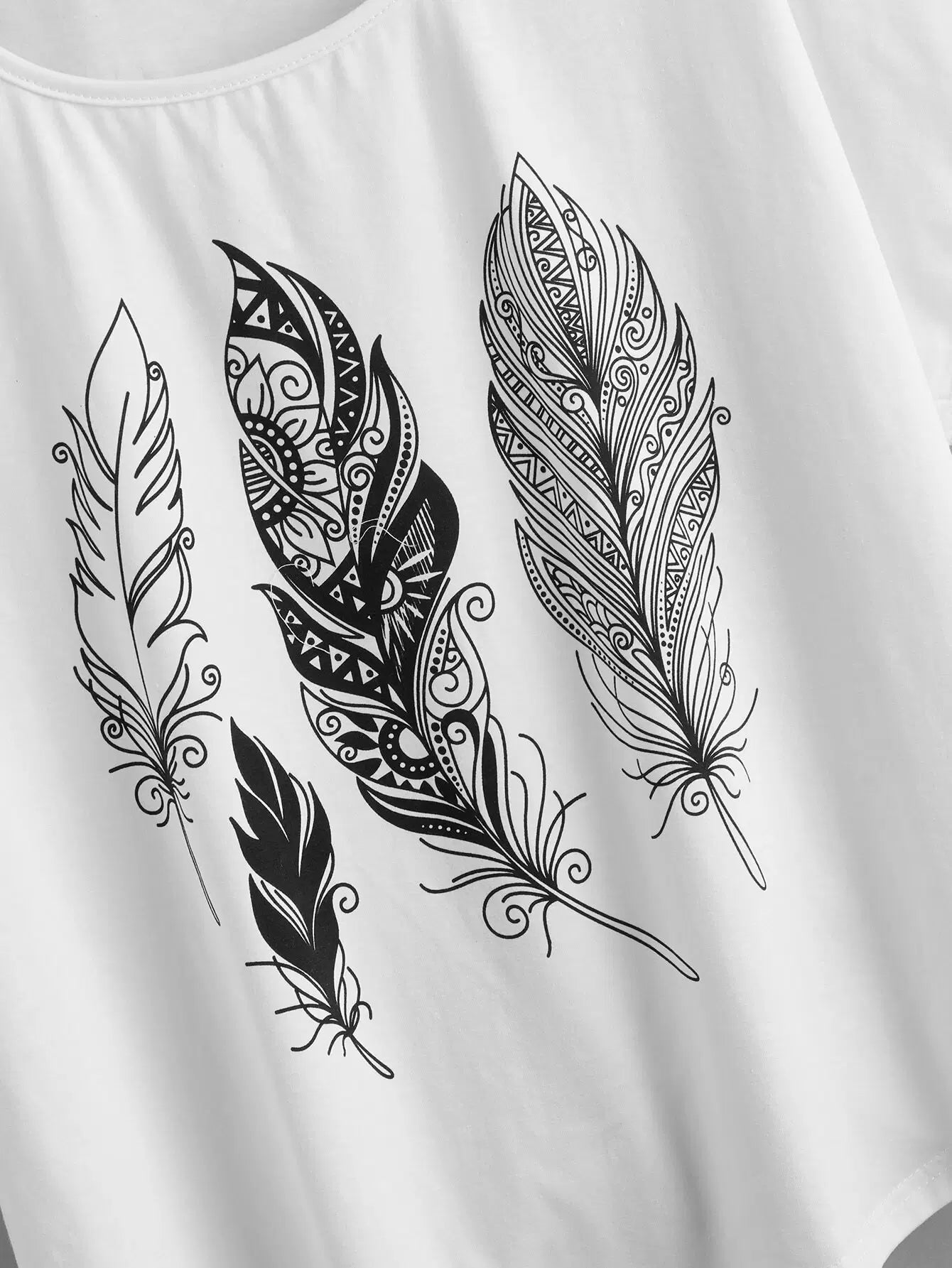 تي شيرت بأكمام بطبعة ريش زائد بأكمام باتوينغ