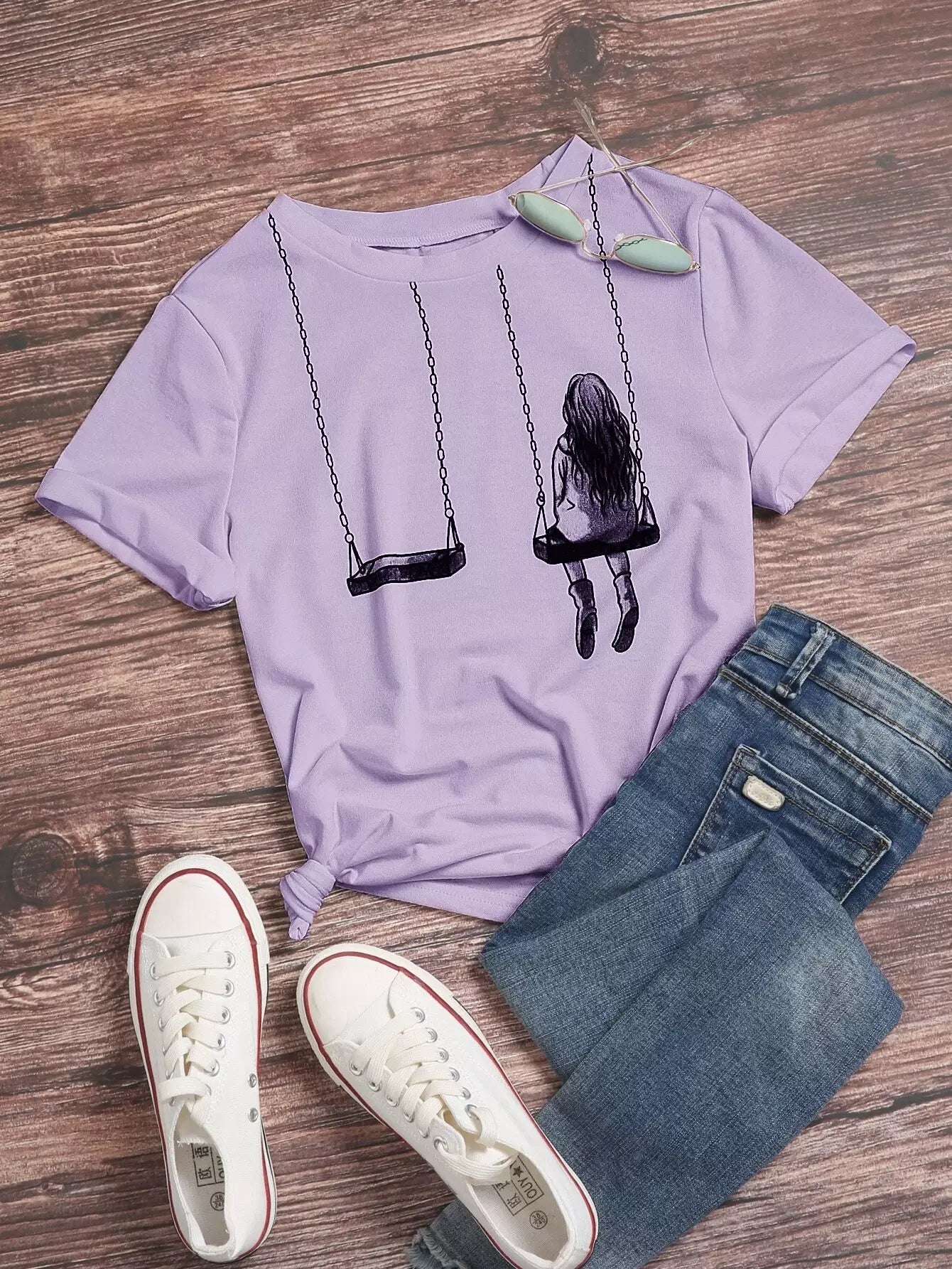 تي شيرت مطبوع عليه شكل زائد وأرجوحة