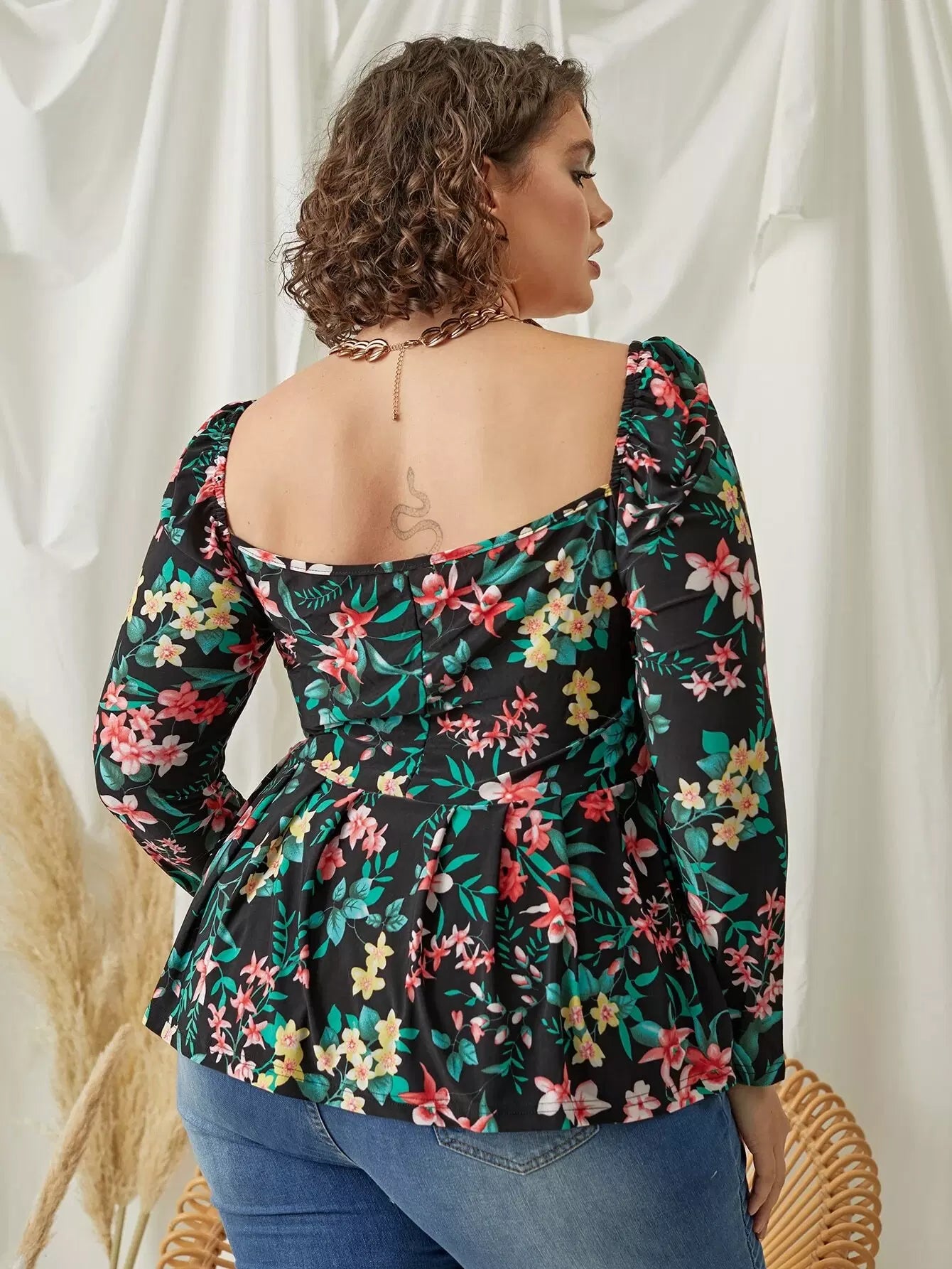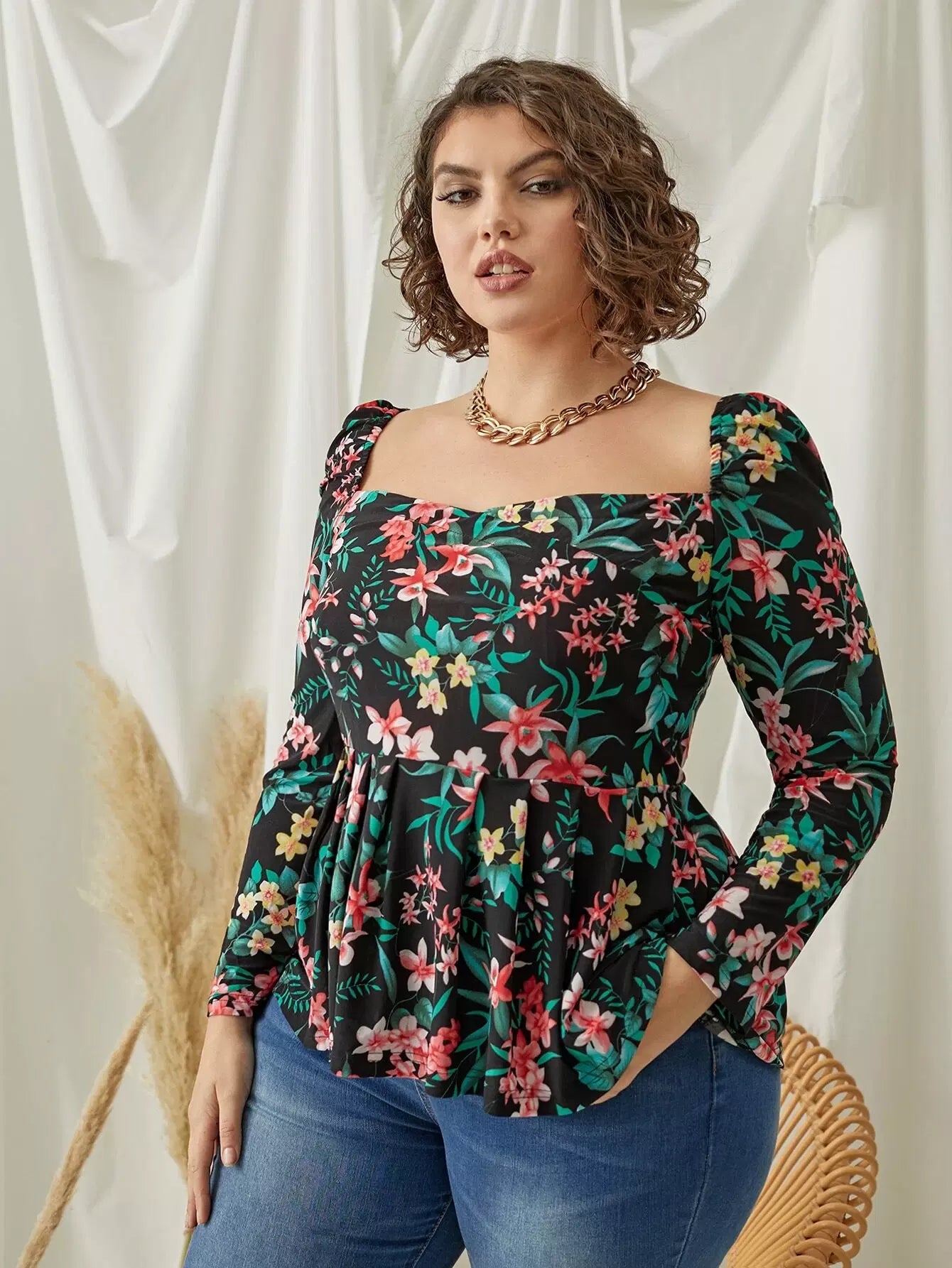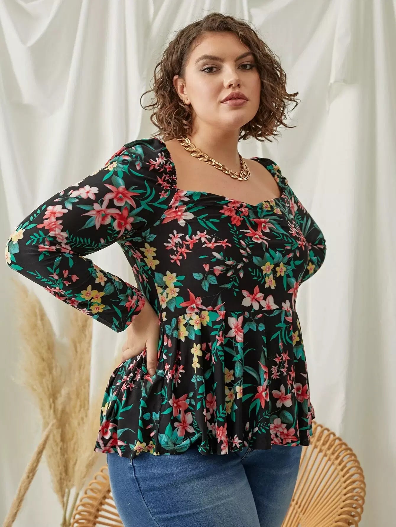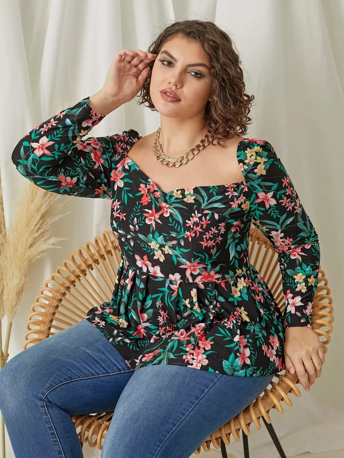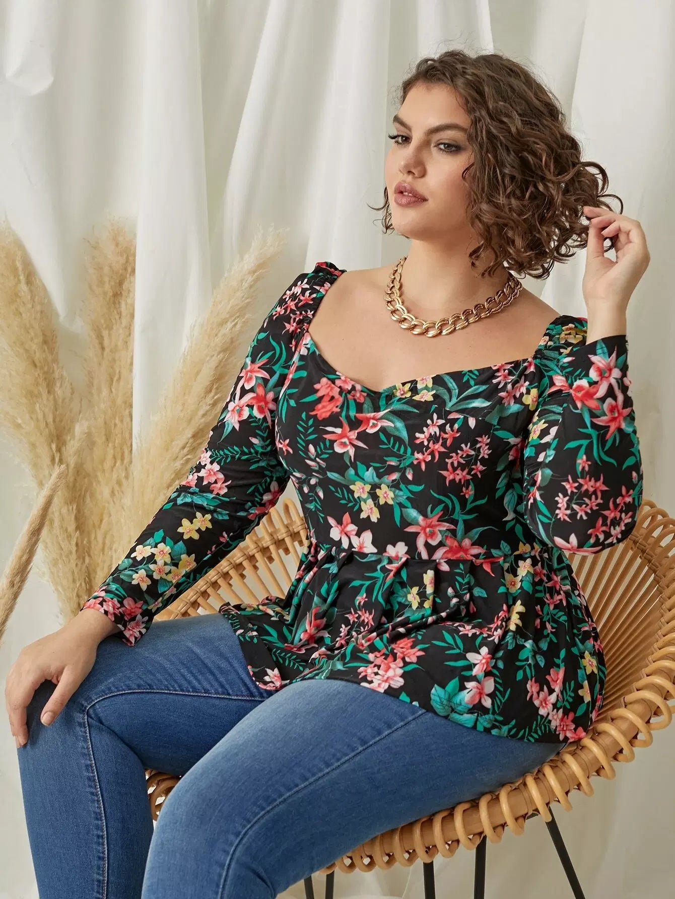 نحيف - مقاس كبير زهرة الطباعة كشكش تنحنح المحملة