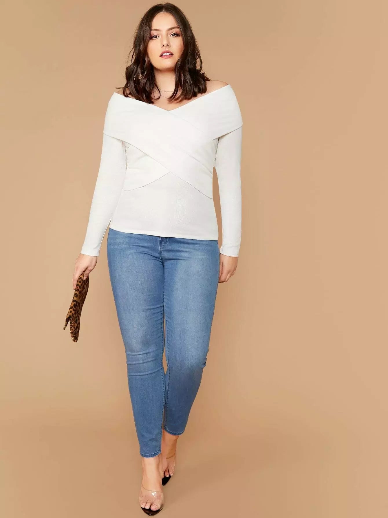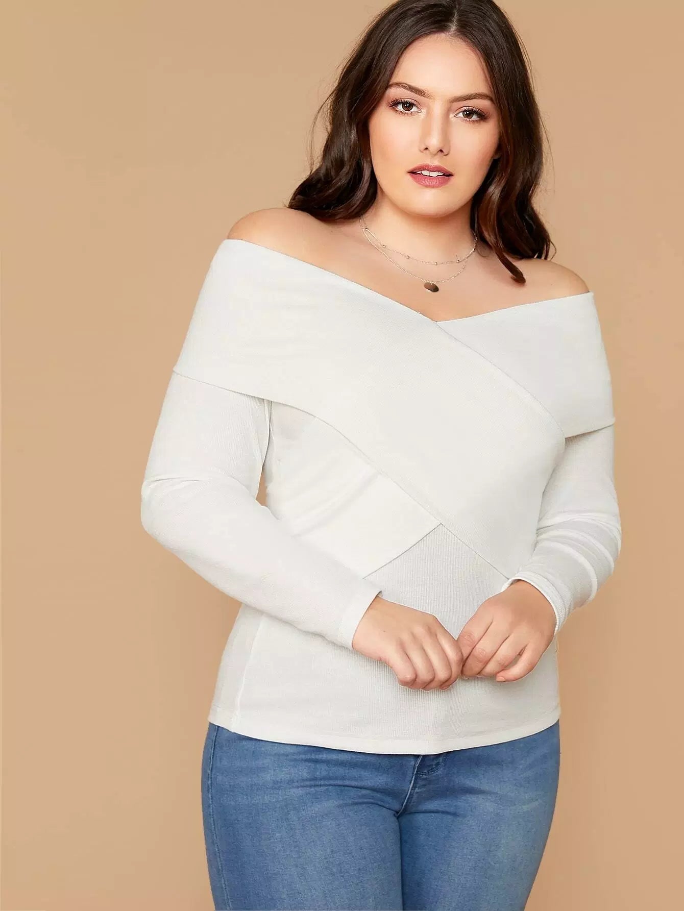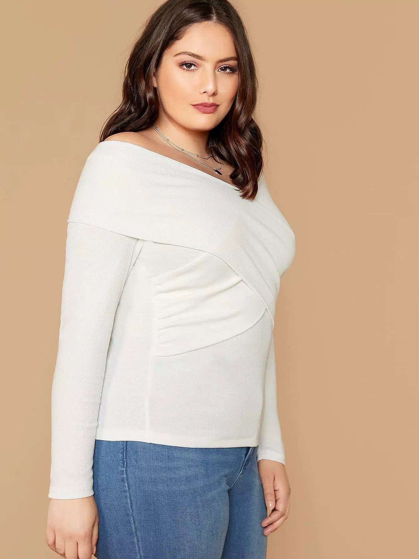 بلوزة بدون أكتاف مطوية ملفوفة على شكل كروس زائد