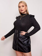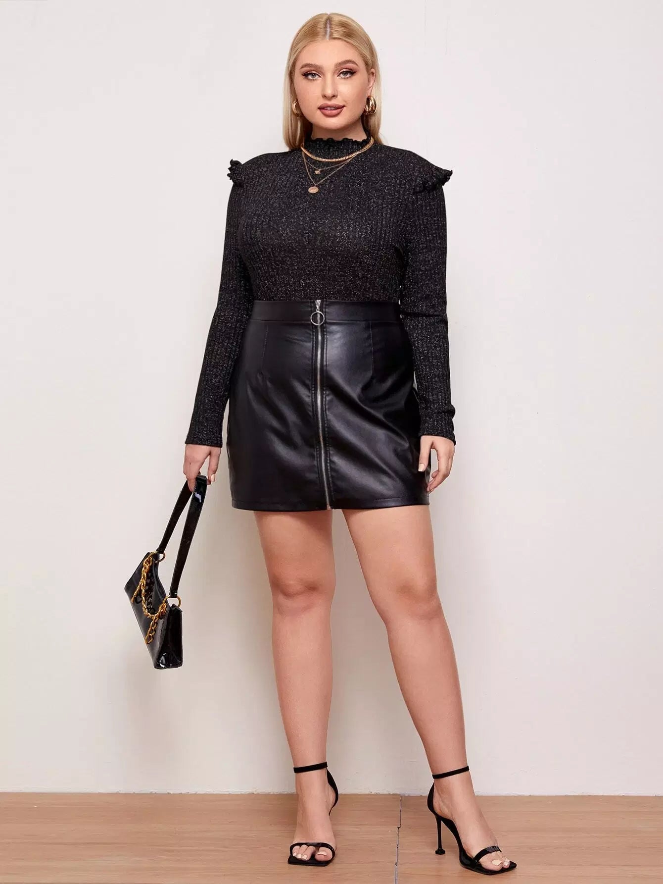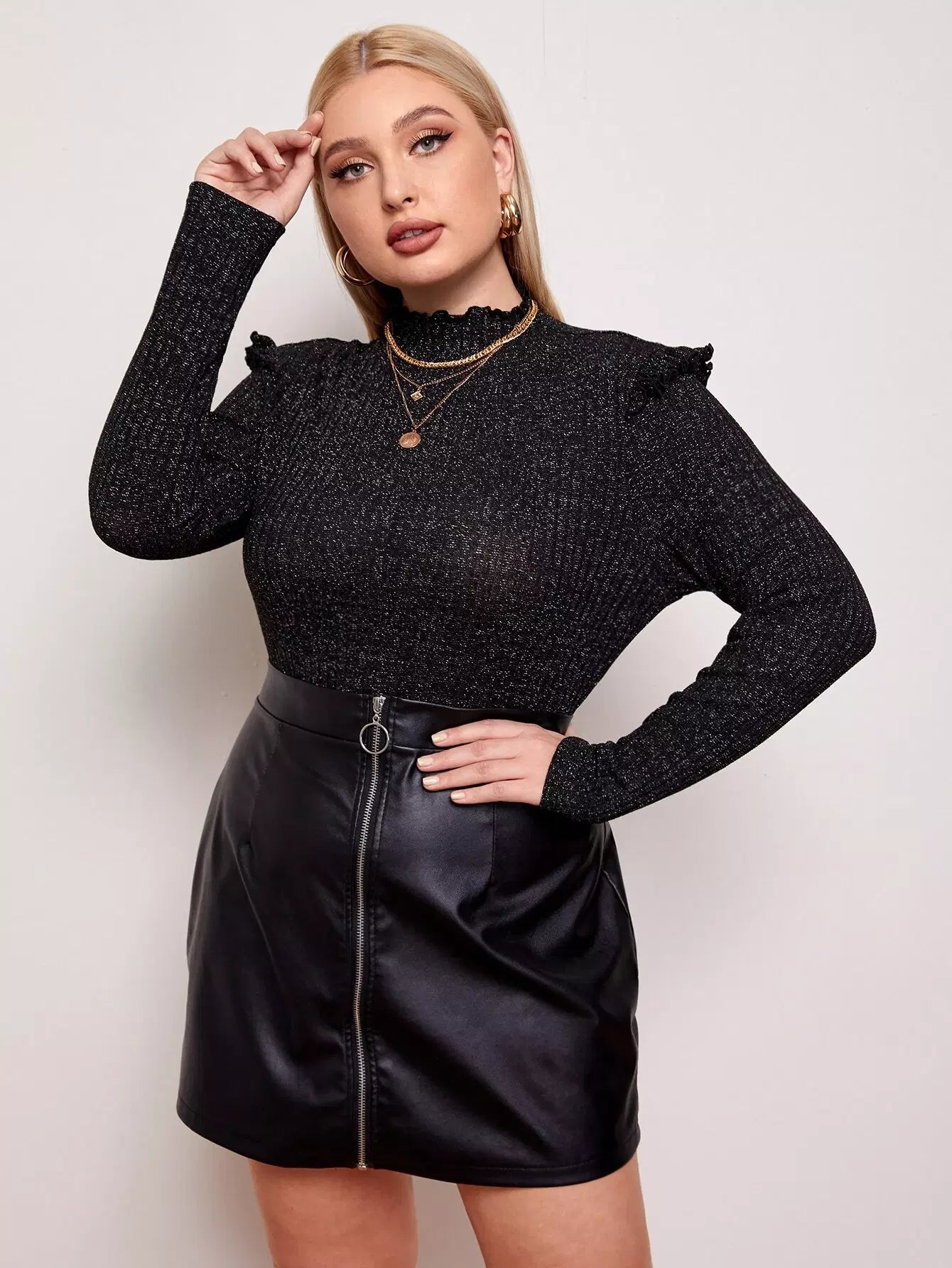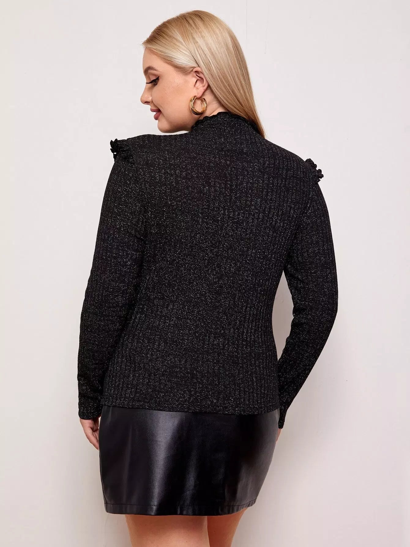 بلوزة مكشكشة محبوكة على شكل ضلع لامع زائد