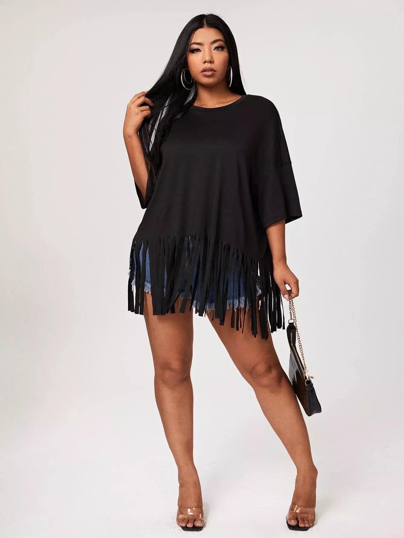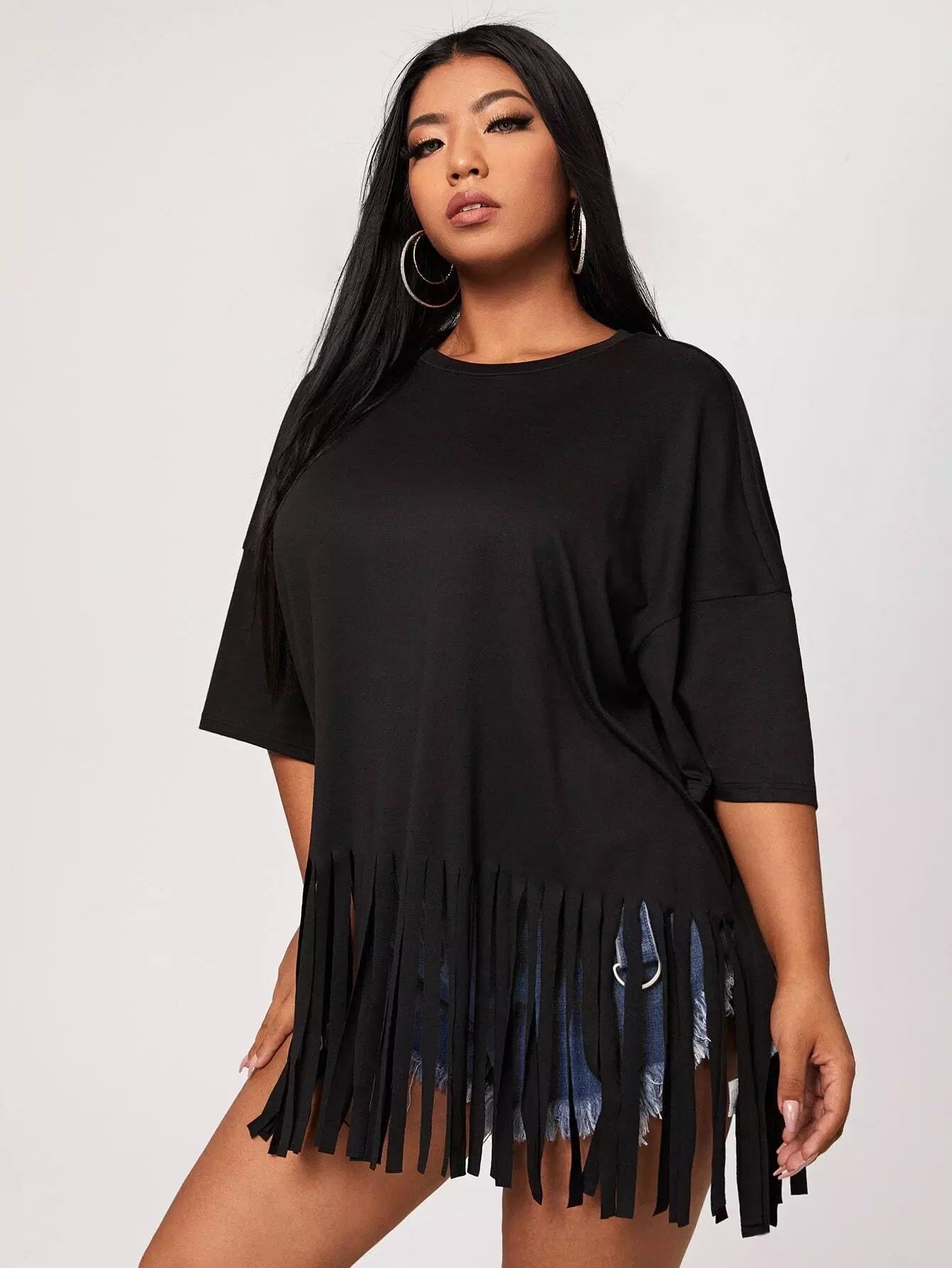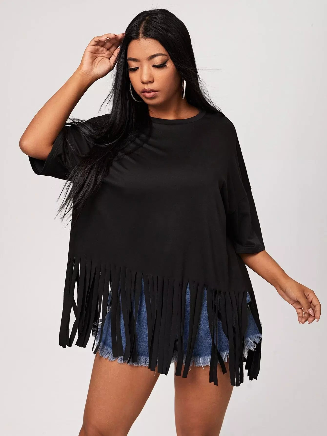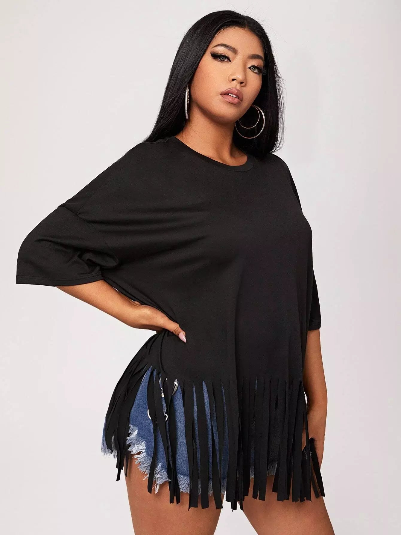 تي شيرت بحواف منسدلة الكتفين بحواف منسدلة بلاس