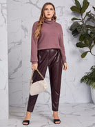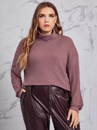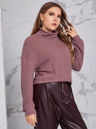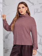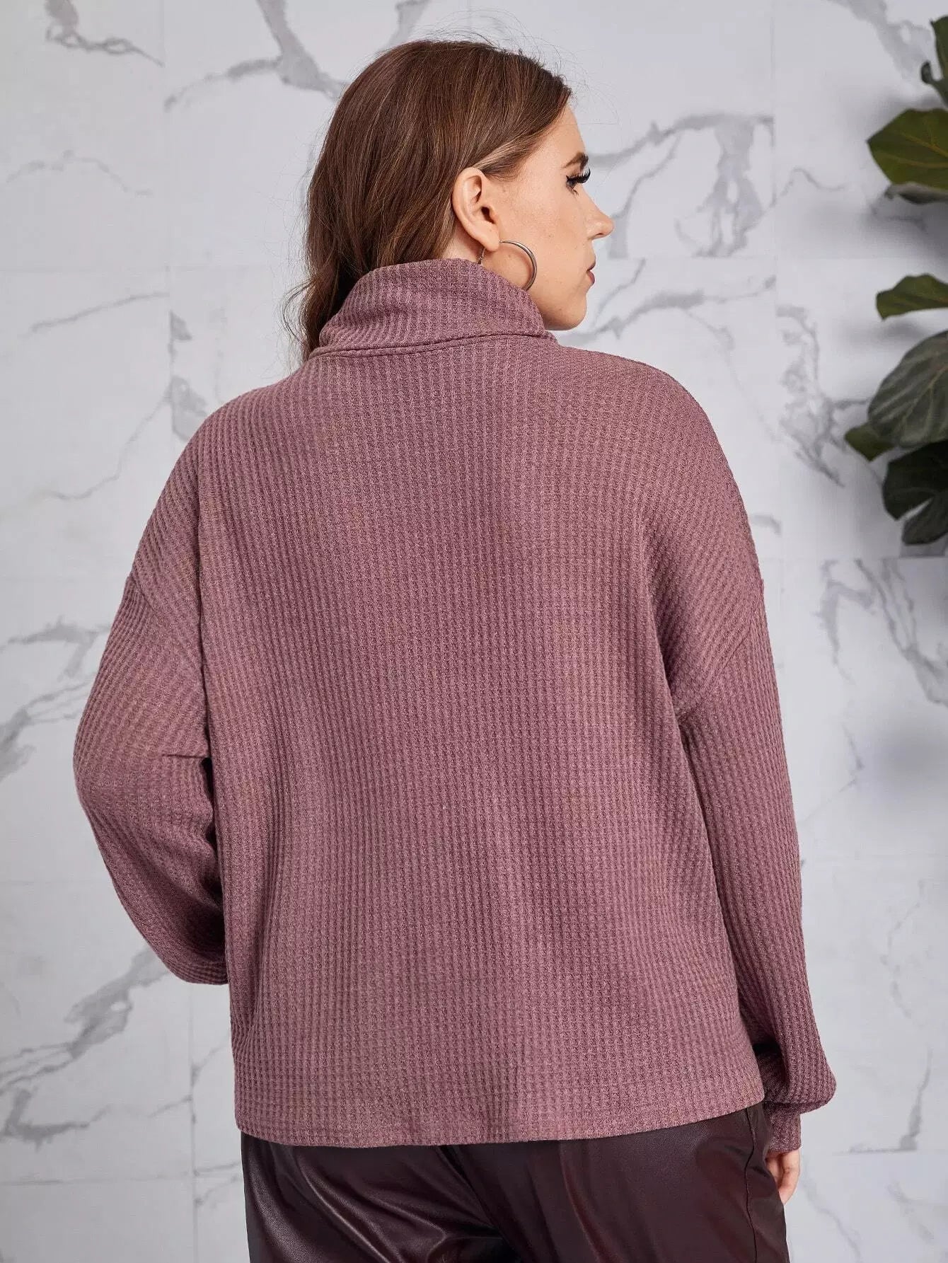نحيف - مقاس كبير تي شيرت منسوج بكتف منسدل ورقبة على شكل قمع