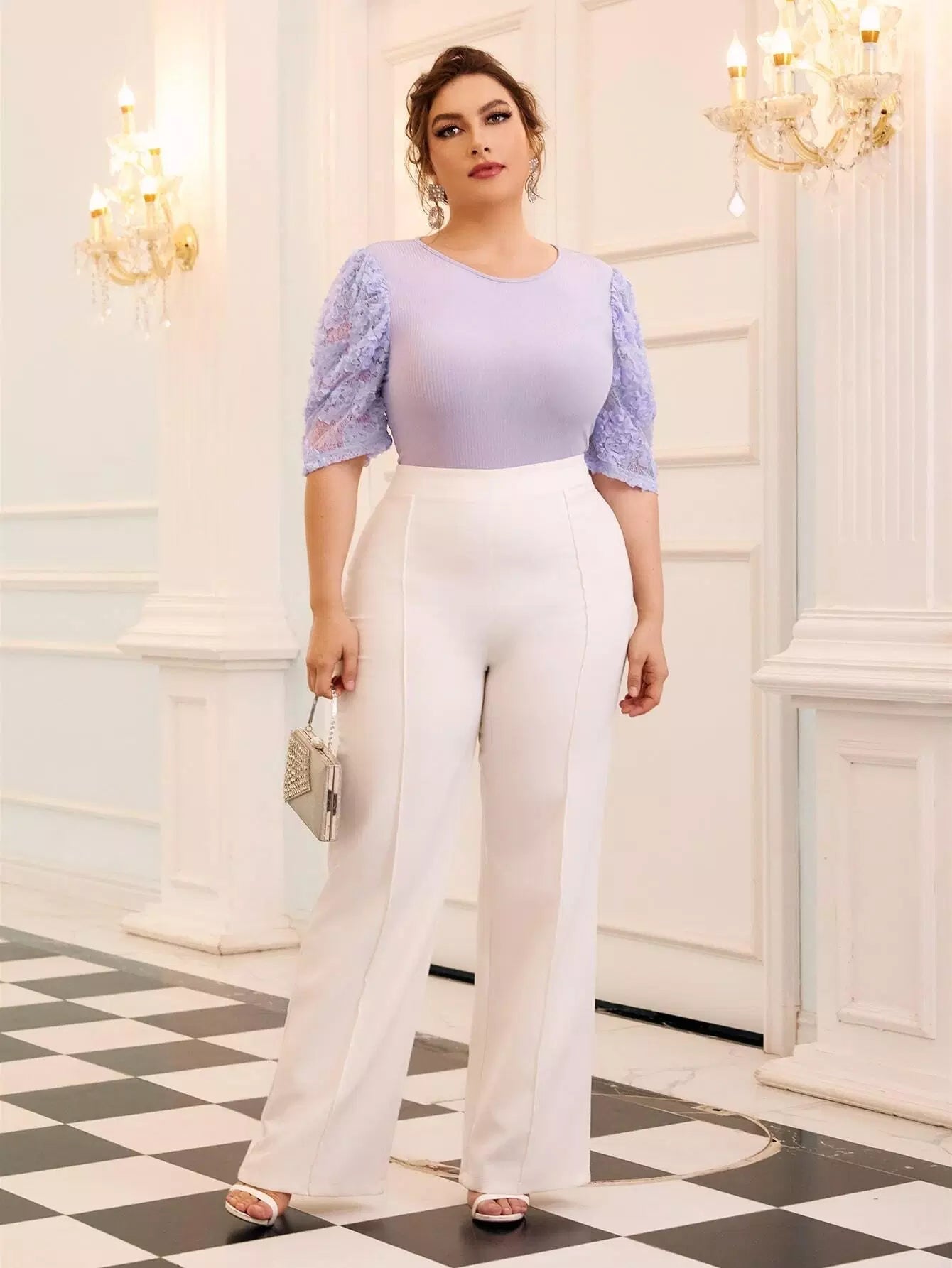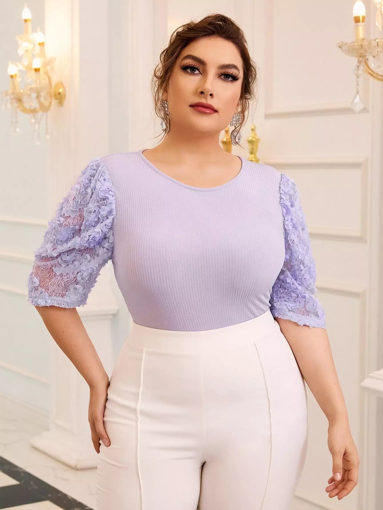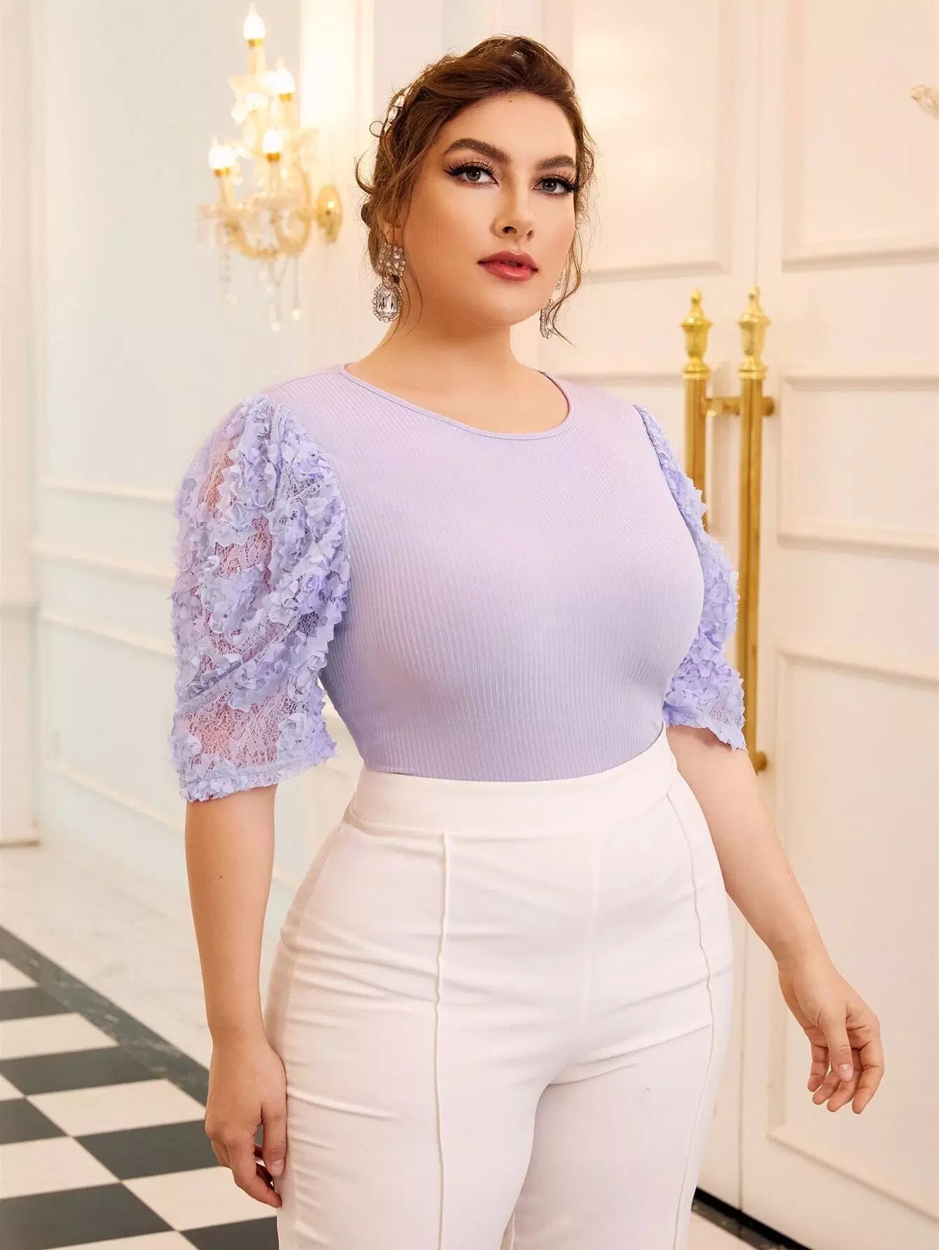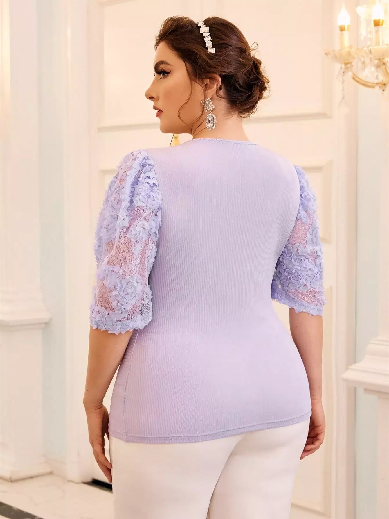 بلوزة بأكمام منفوشة منفوشة بأضلاع منفوشة زائد