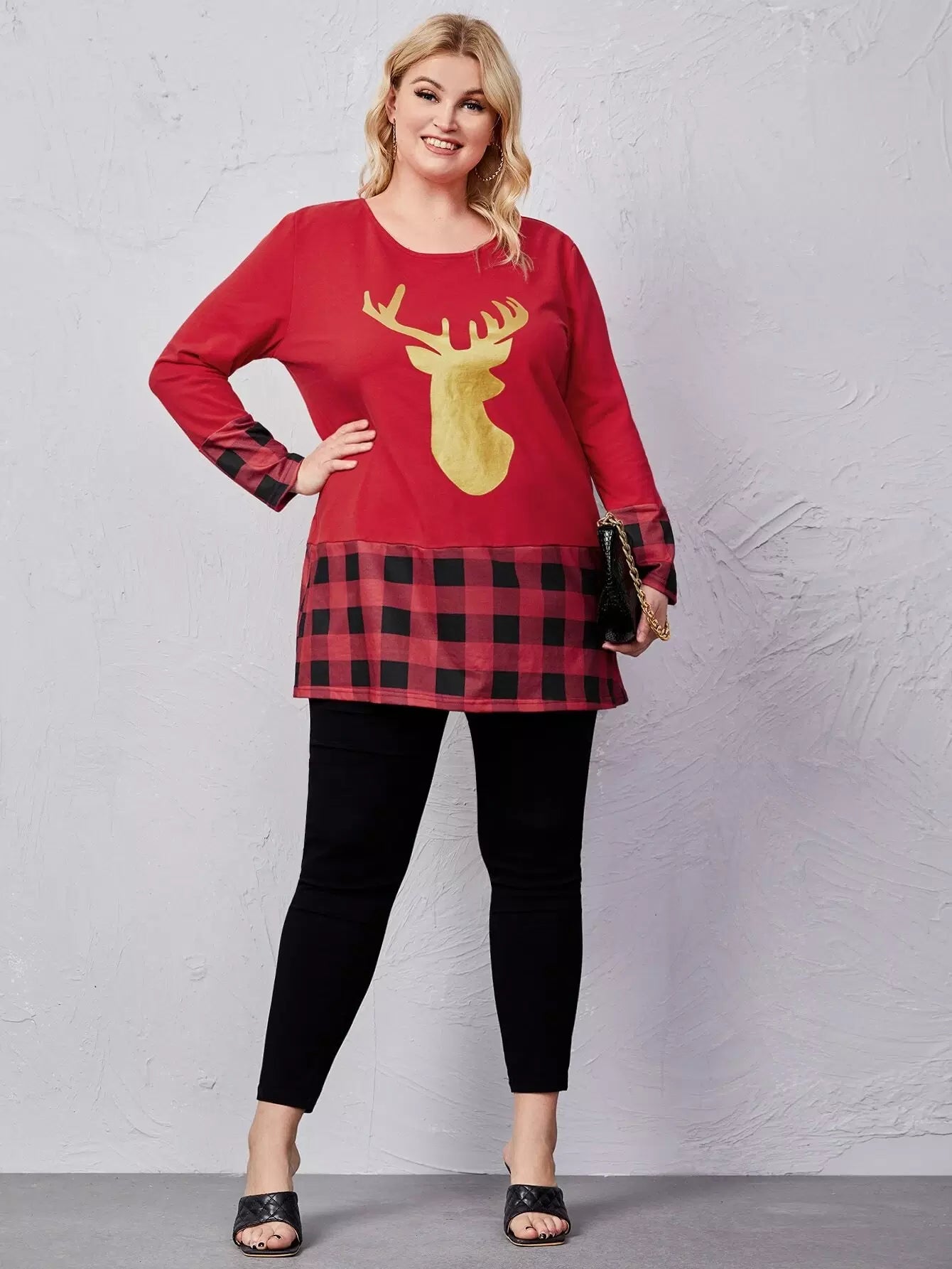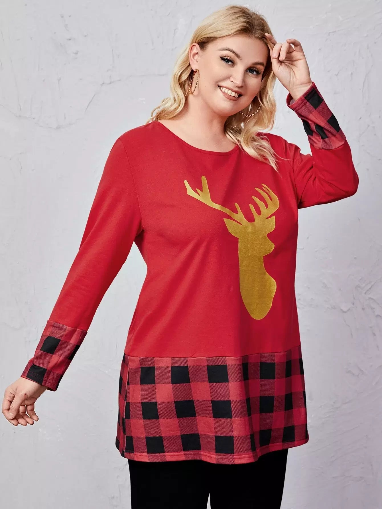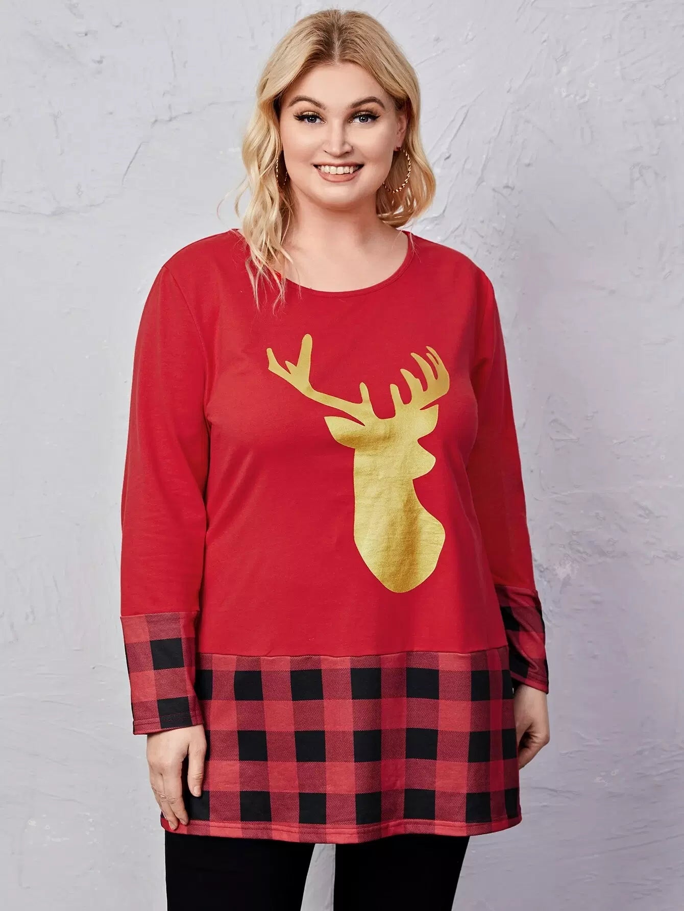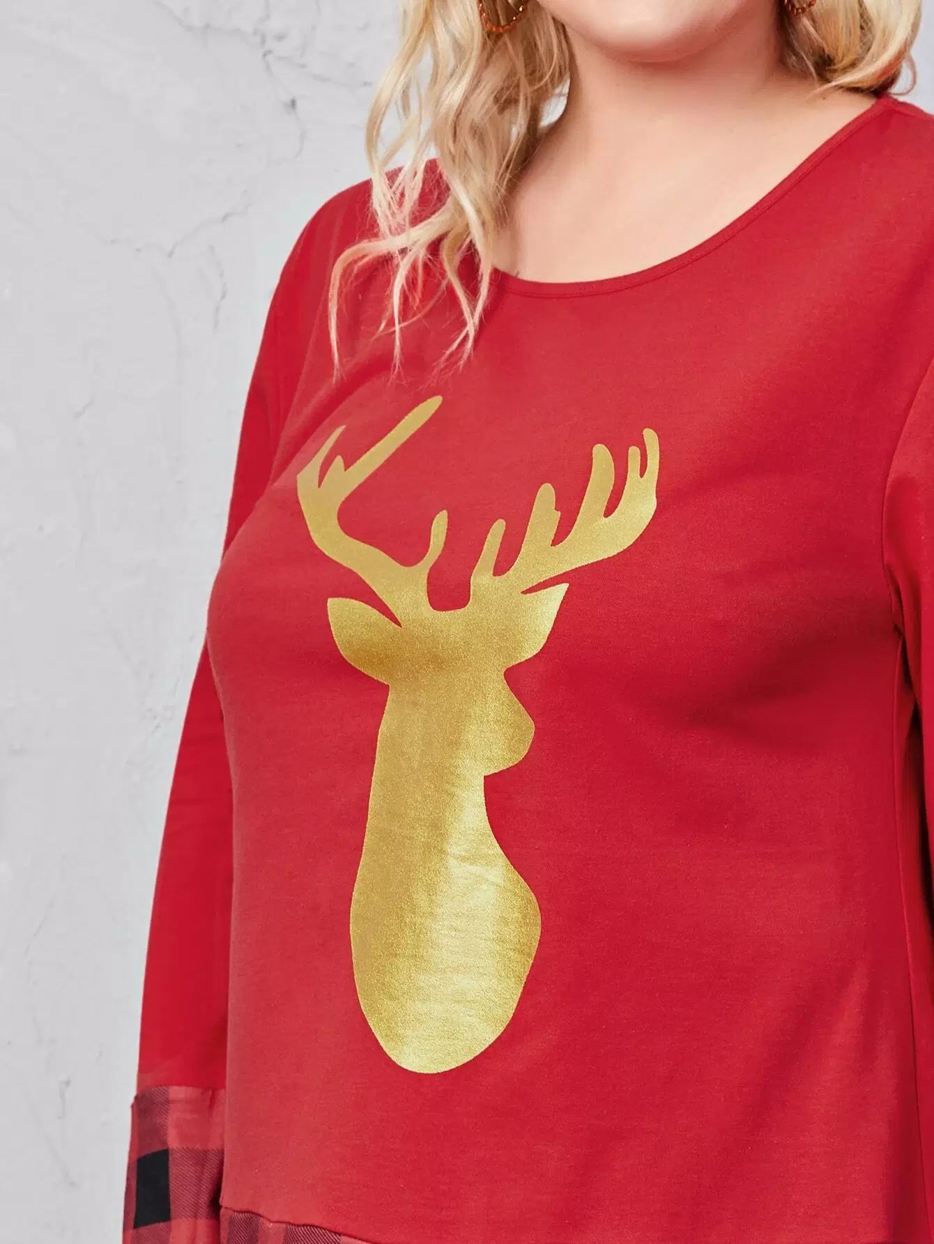تي شيرت بنقشة قطنية بطبعة غزلان منقوشة على شكل قطن زائد