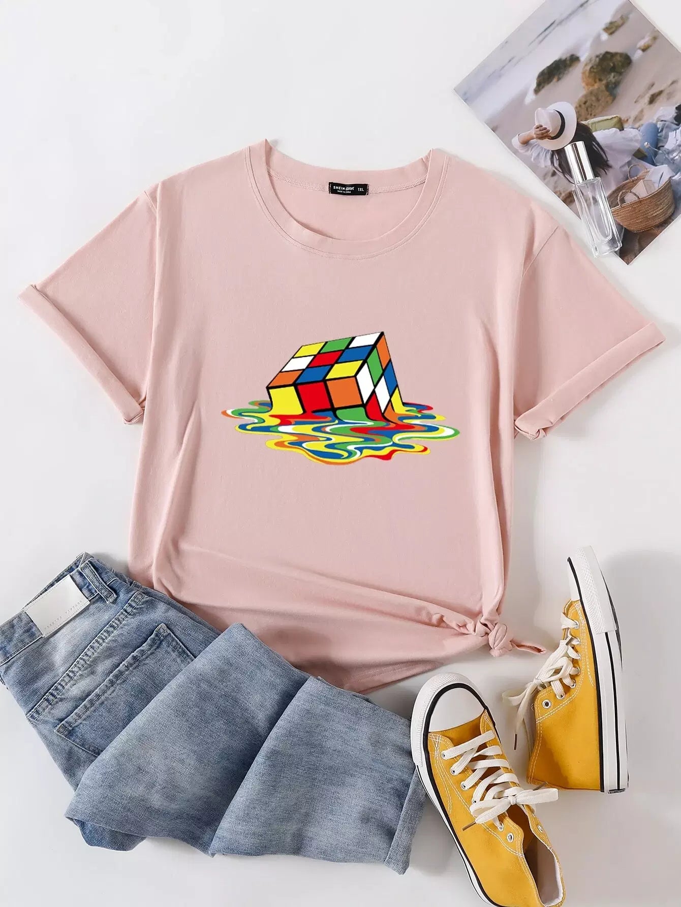 تي شيرت بياقة كرو مطبوع عليه رسومات زائد