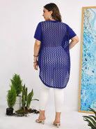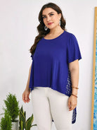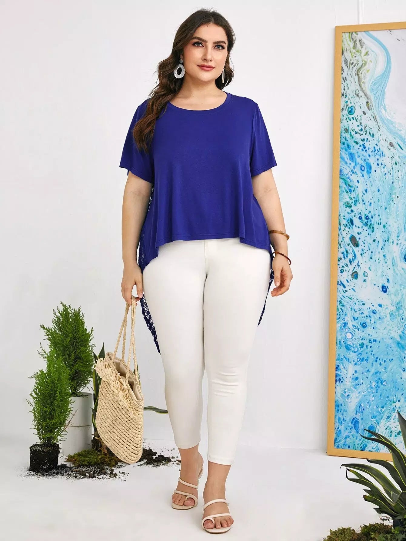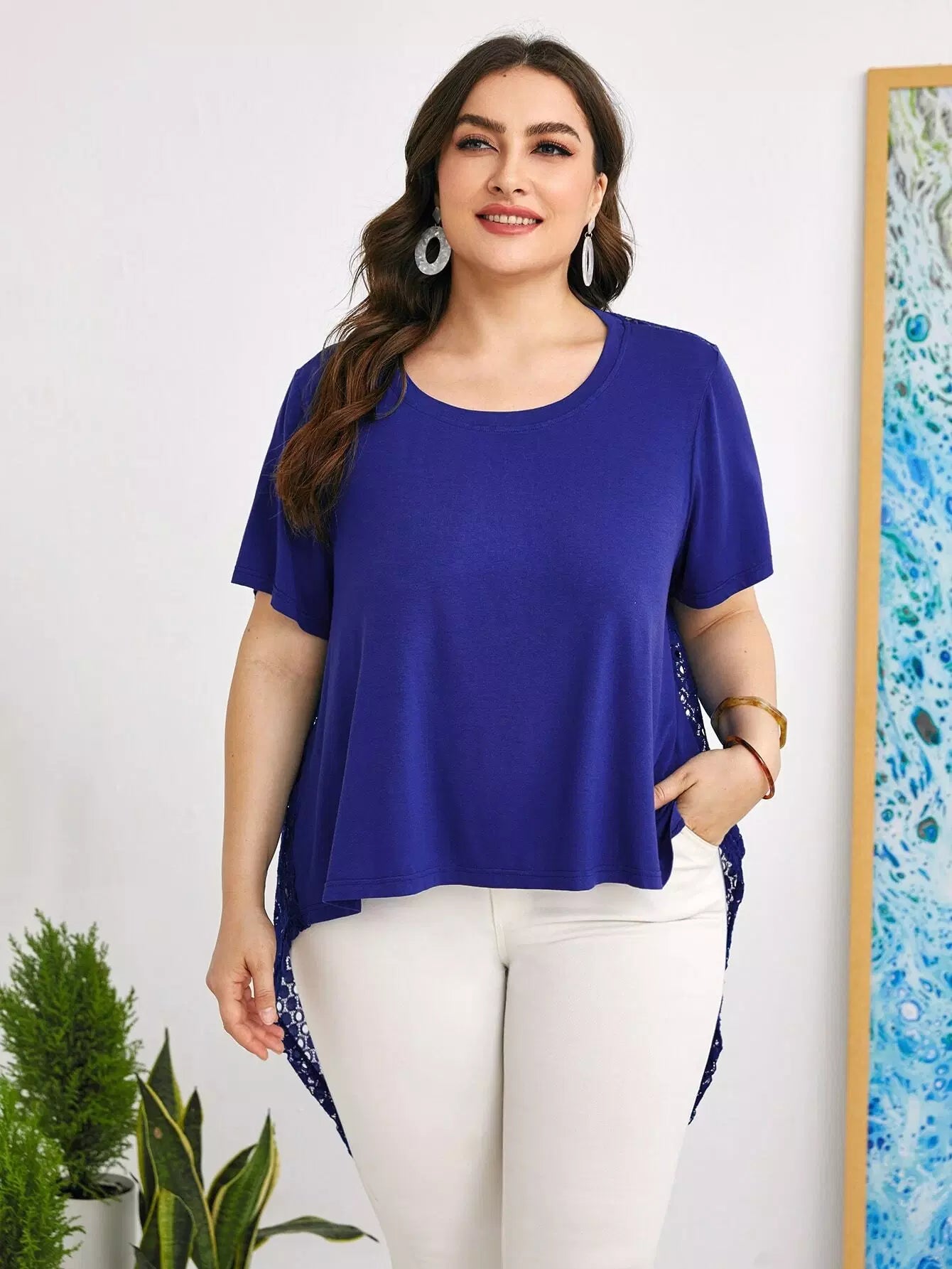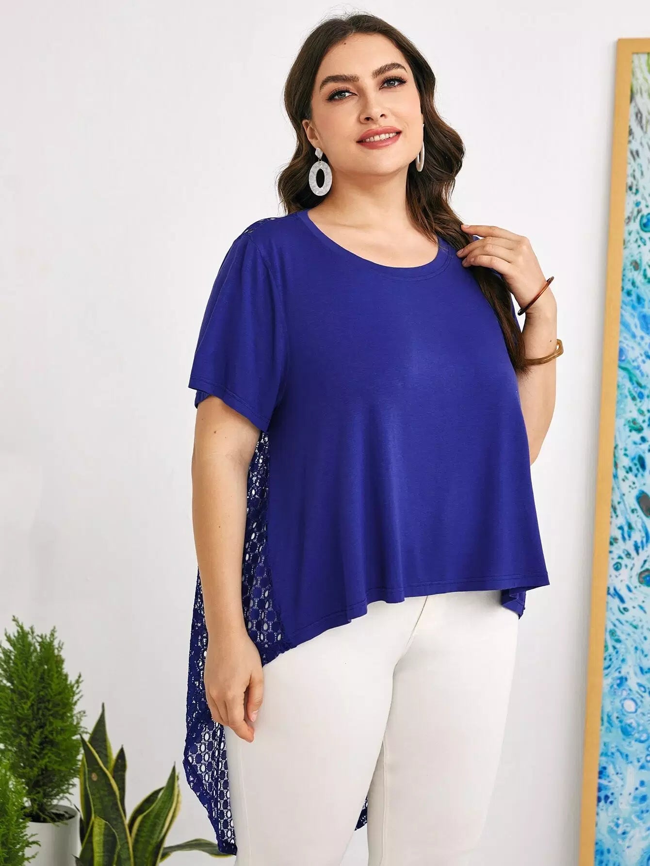 تي شيرت دانتيل دانتيل مخرّم بلون مغاير بلون مغاير