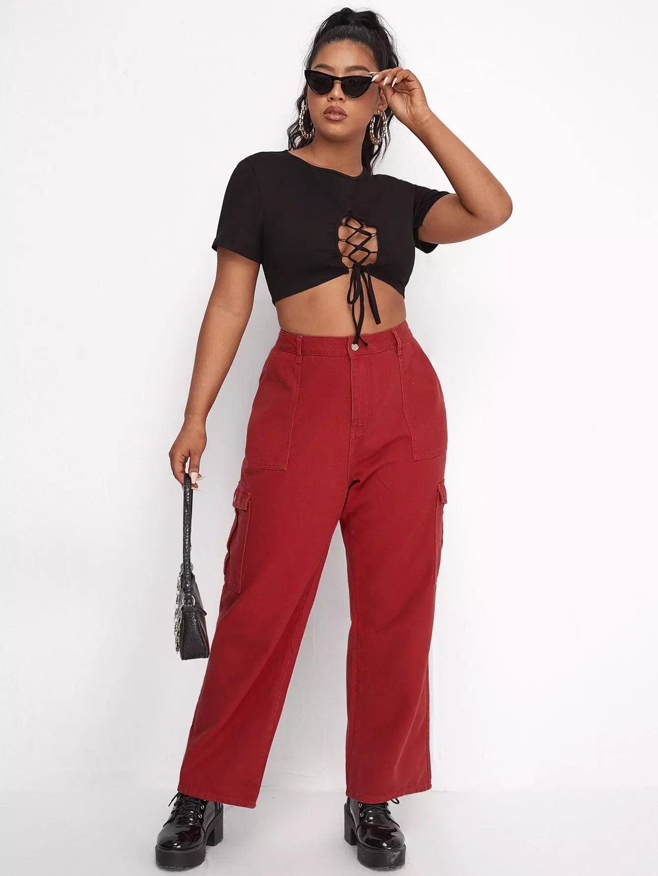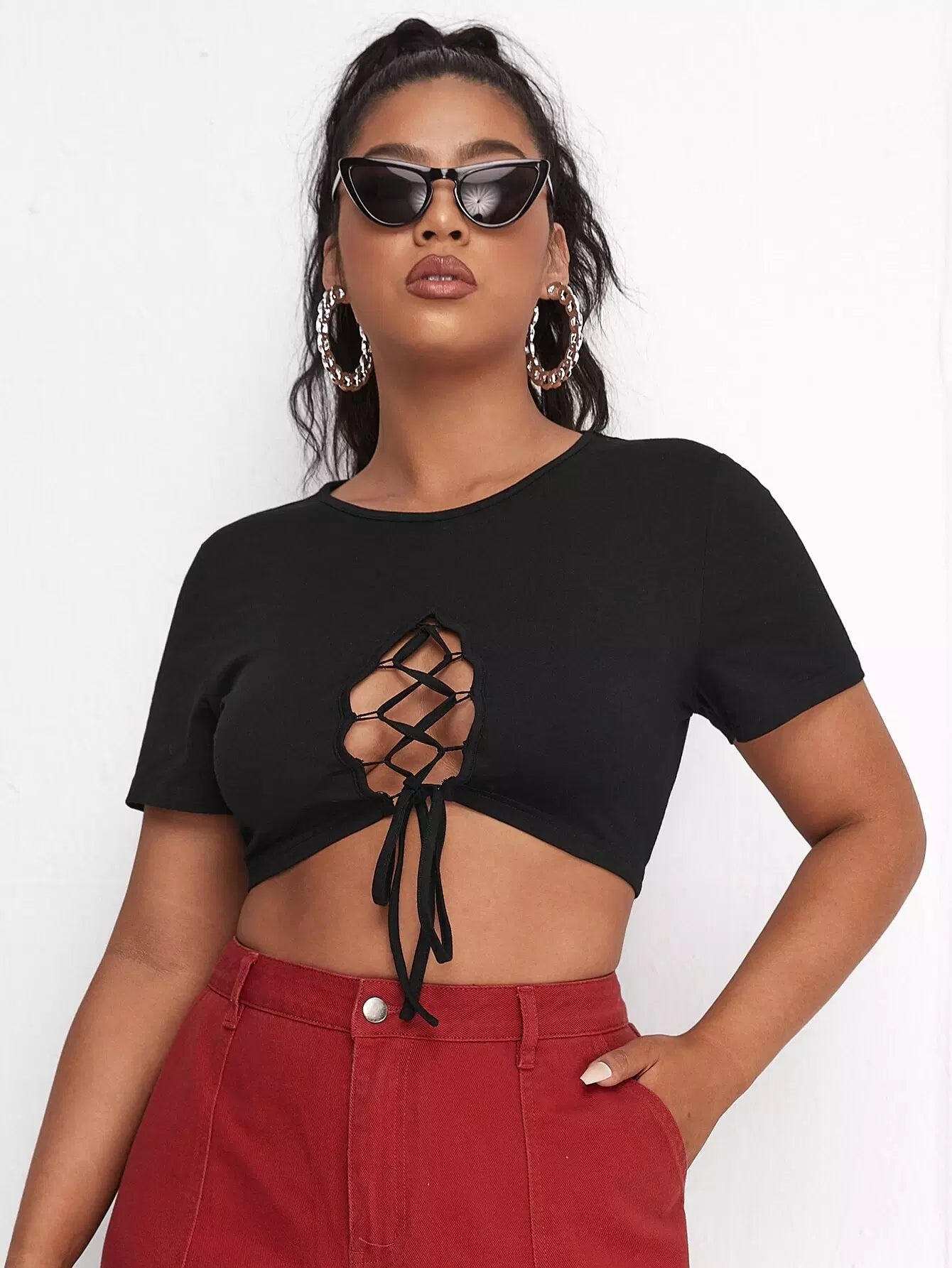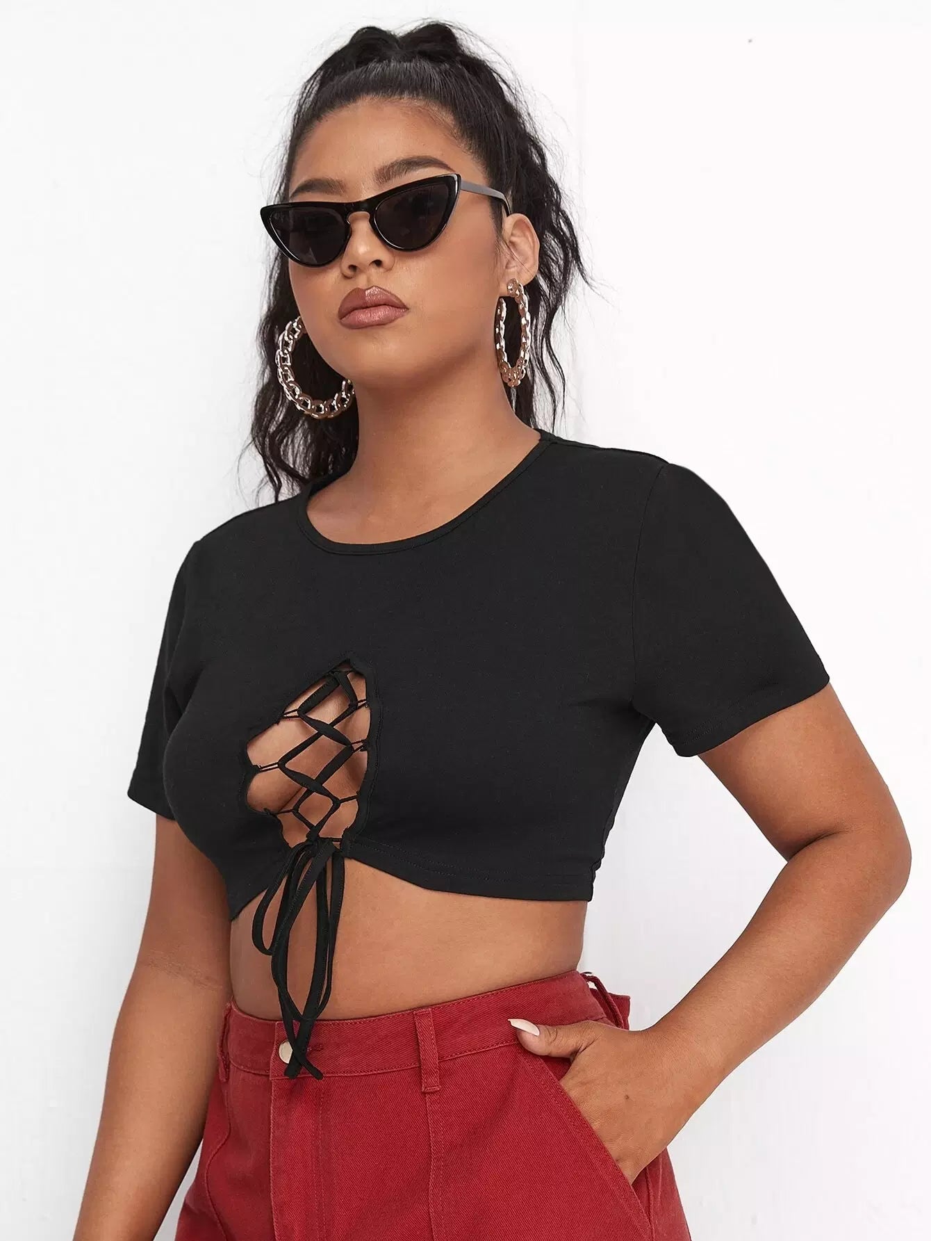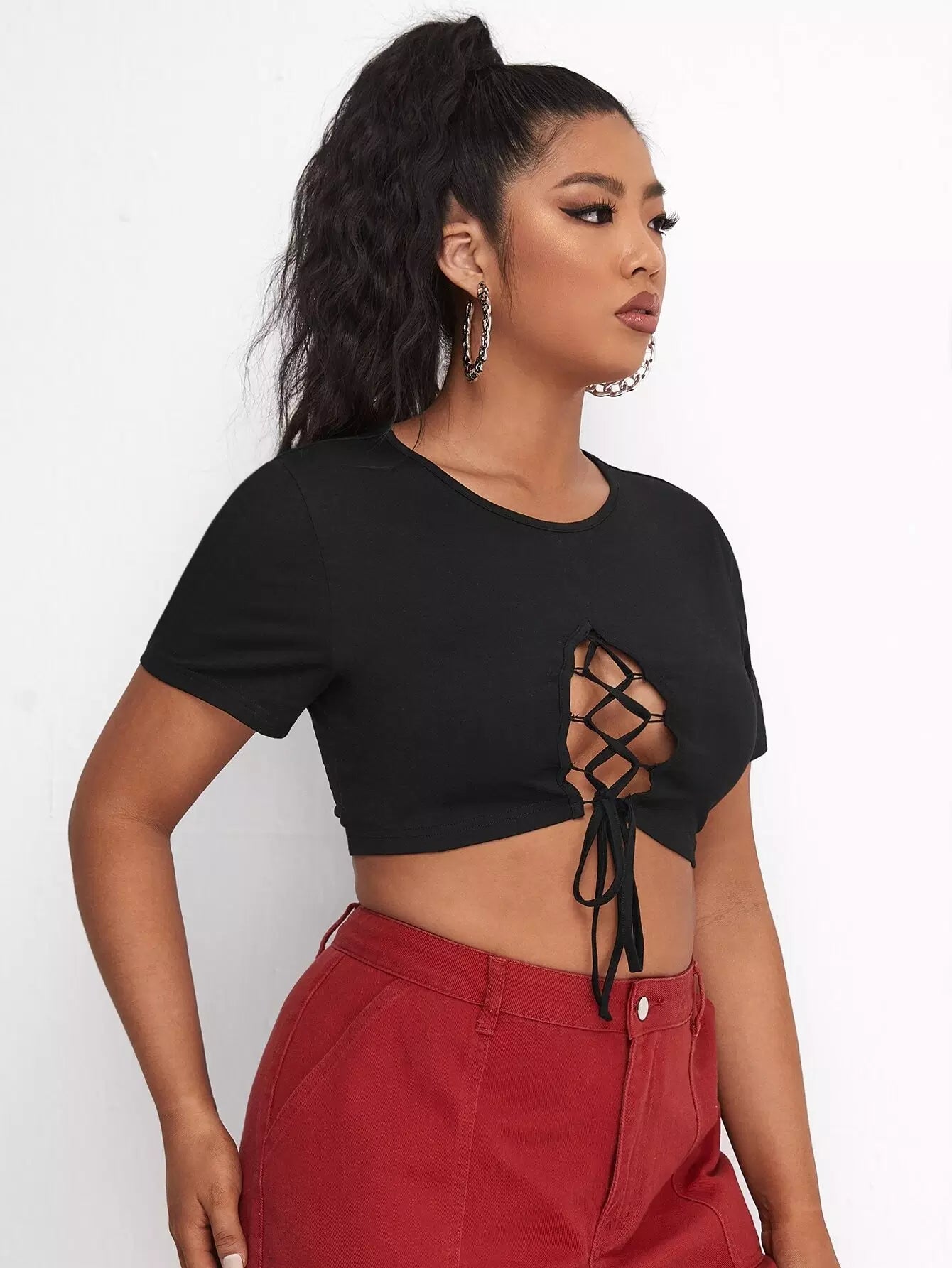 تي شيرت برباط من الأمام بأربطة بلاس بيكابو