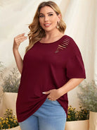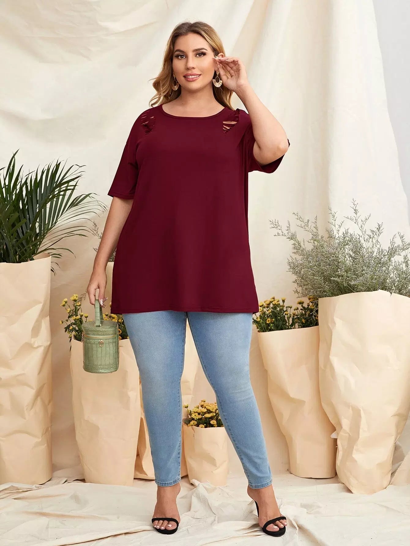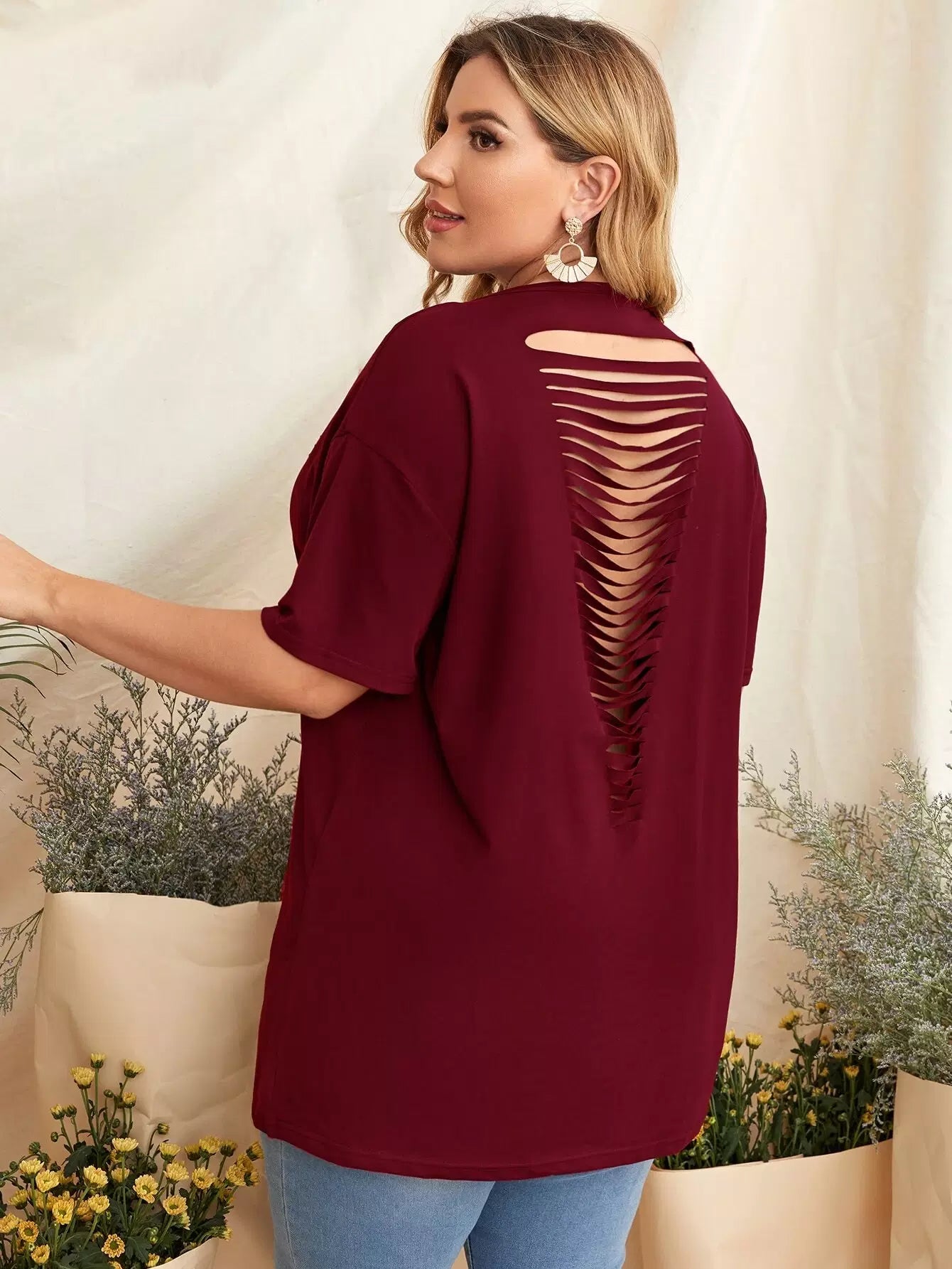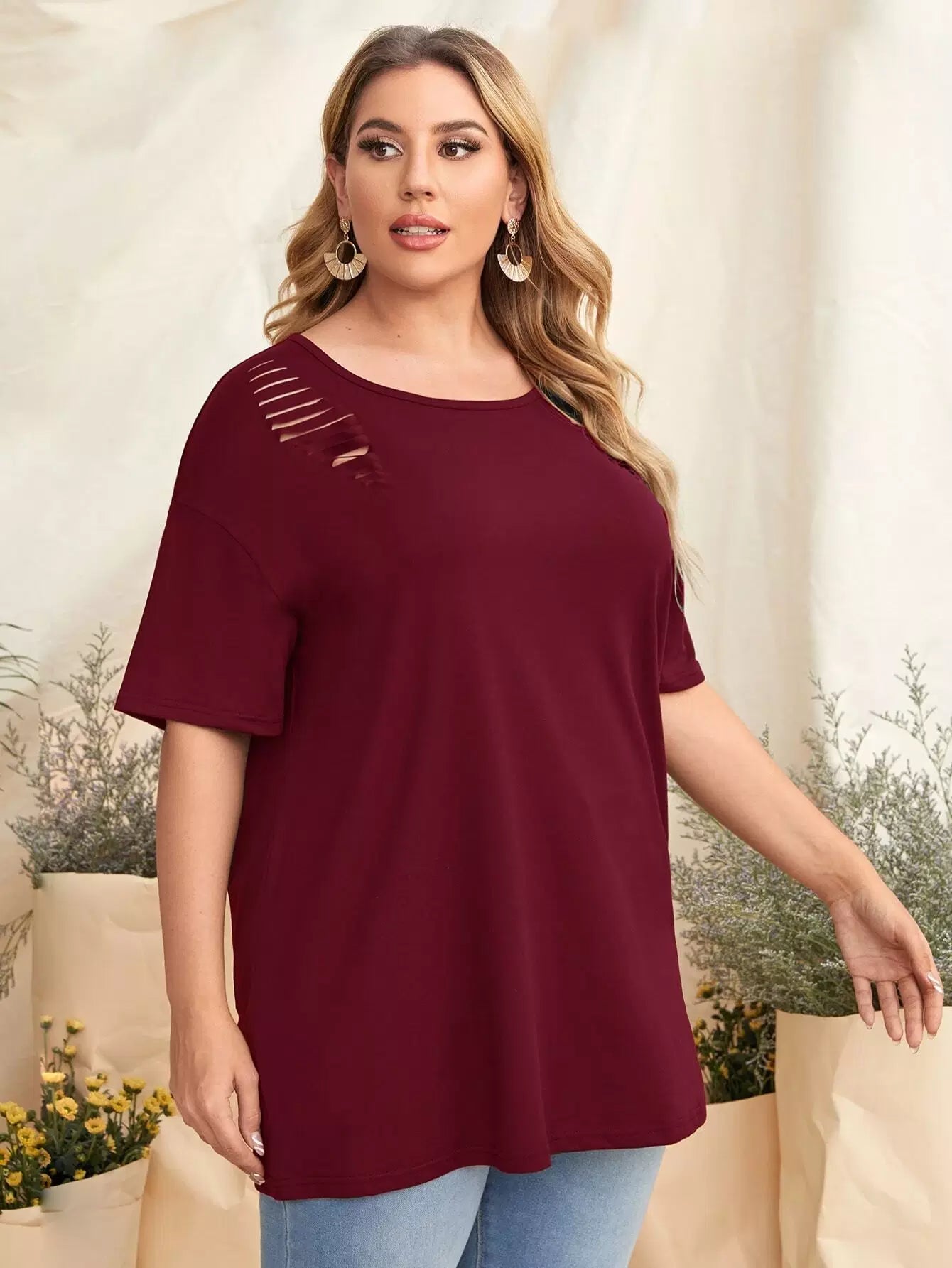 تي شيرت بدون أكتاف ممزق منسدل الأكتاف