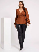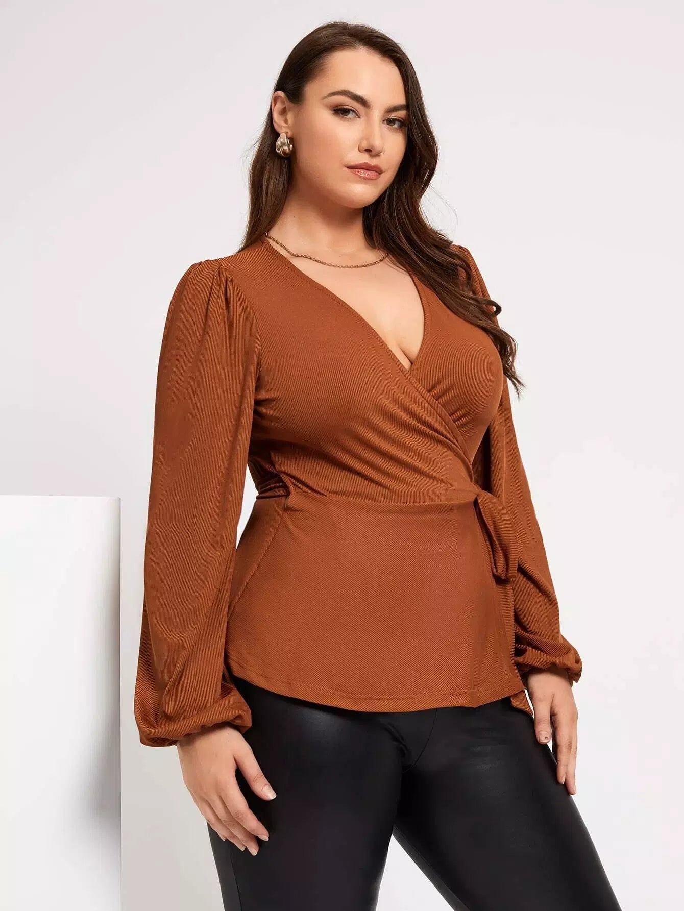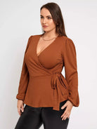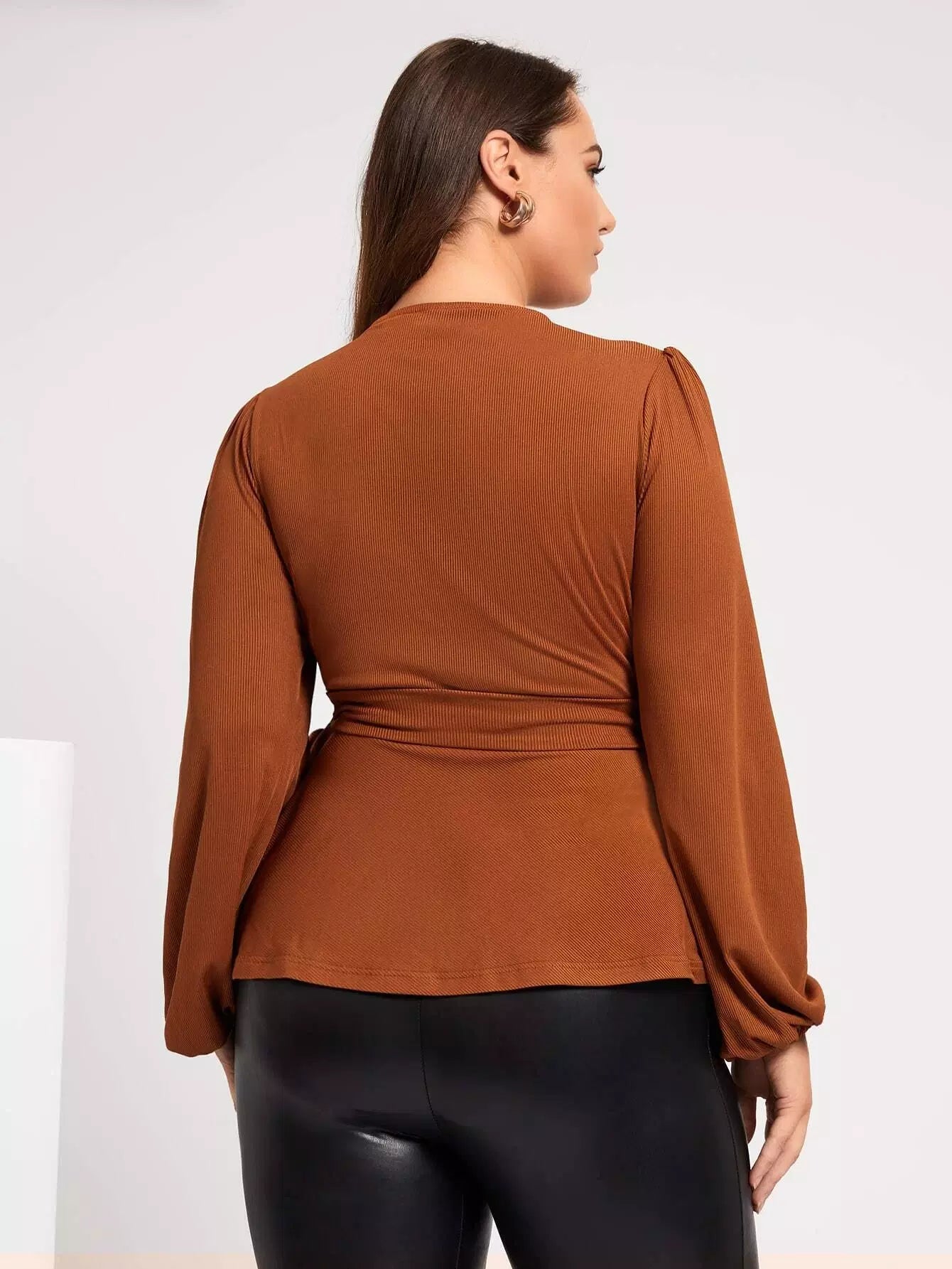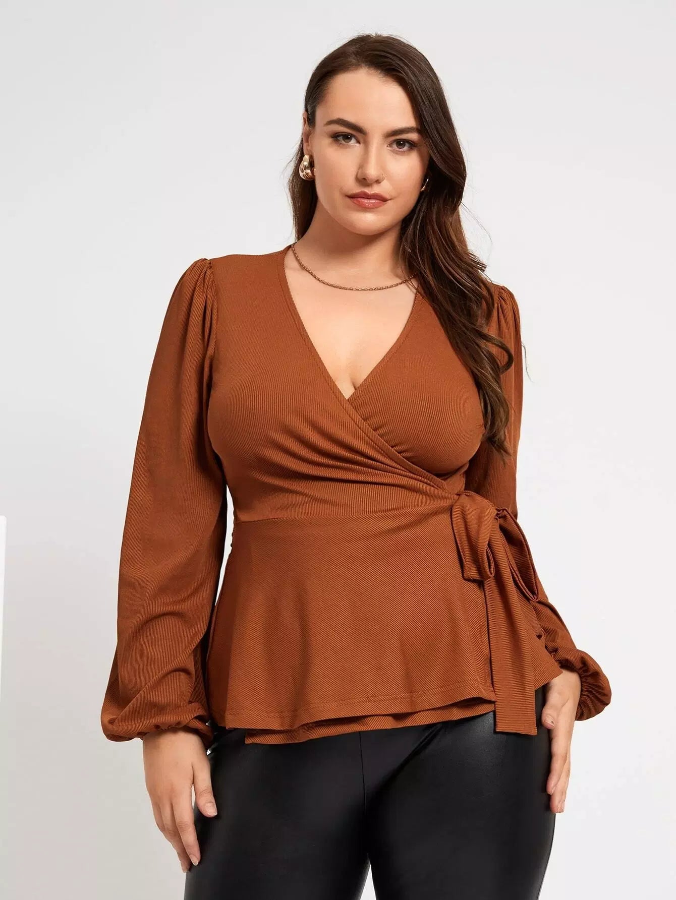 بلوزة بأكمام بلا أكمام فانوسية ملفوفة بعقدة جانبية